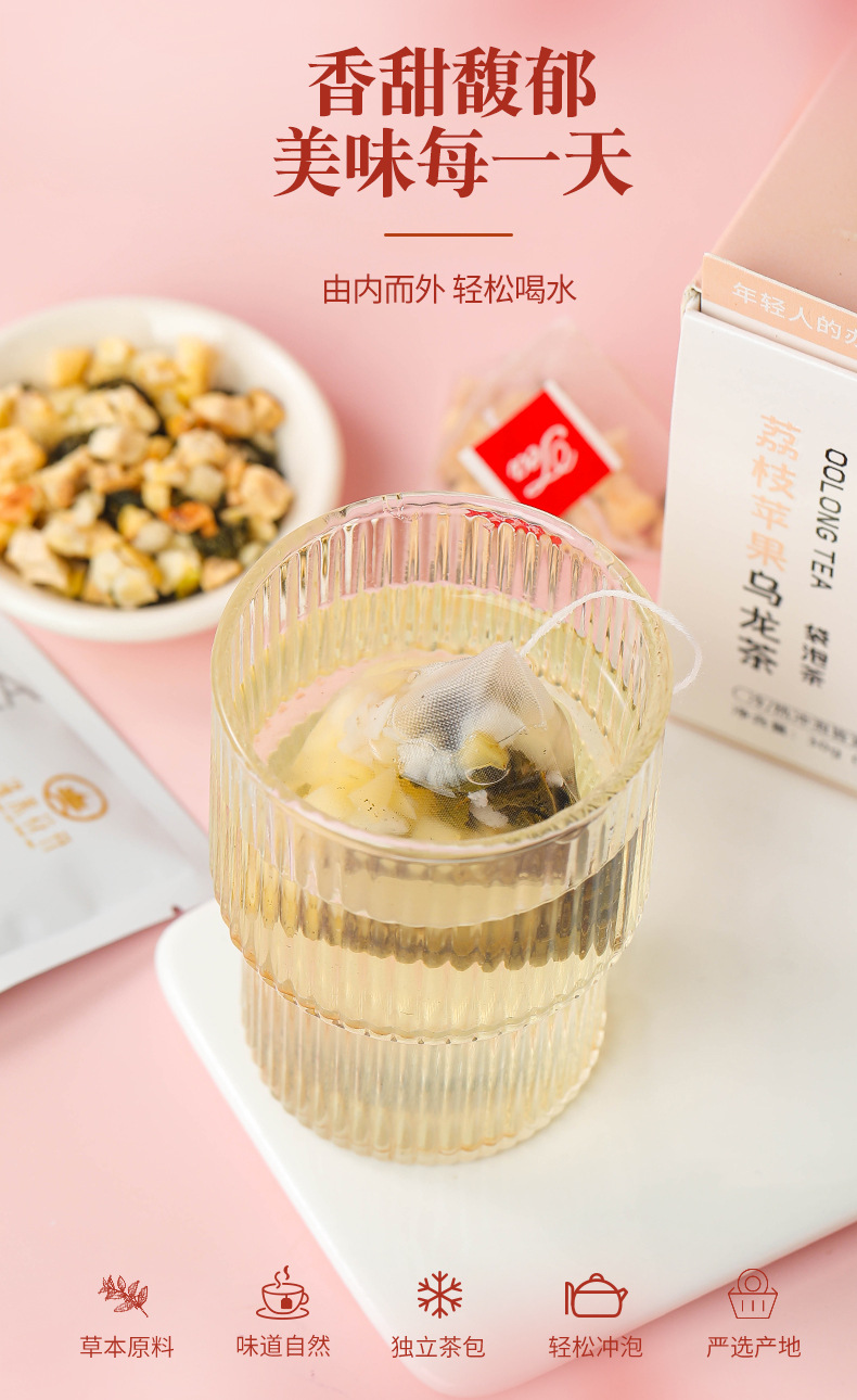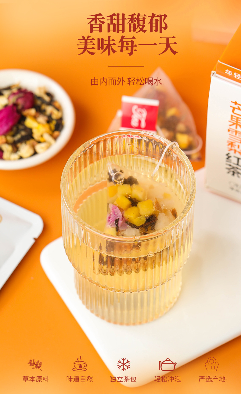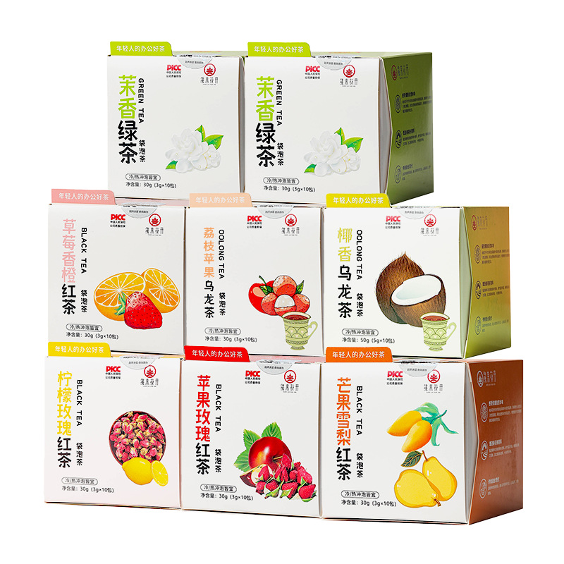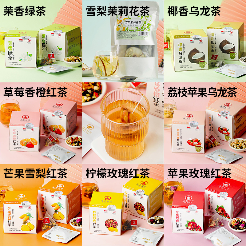 Черный чай, зеленый чай, чай улун, манго, сидней, яблоко, лимон, красная роза с двумя лепестками, кокос, клубника, апельсин, жасмин, личи, каменный сахар и т. Д.