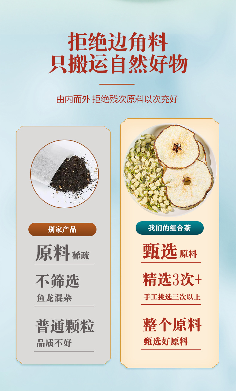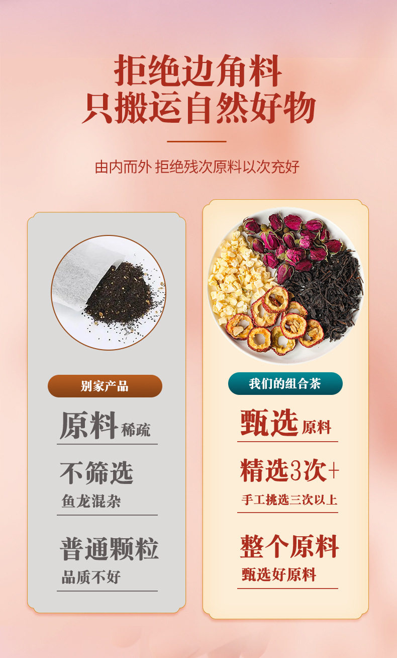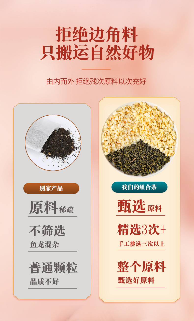 Черный чай, зеленый чай, чай улун, манго, сидней, яблоко, лимон, красная роза с двумя лепестками, кокос, клубника, апельсин, жасмин, личи, каменный сахар и т. Д.