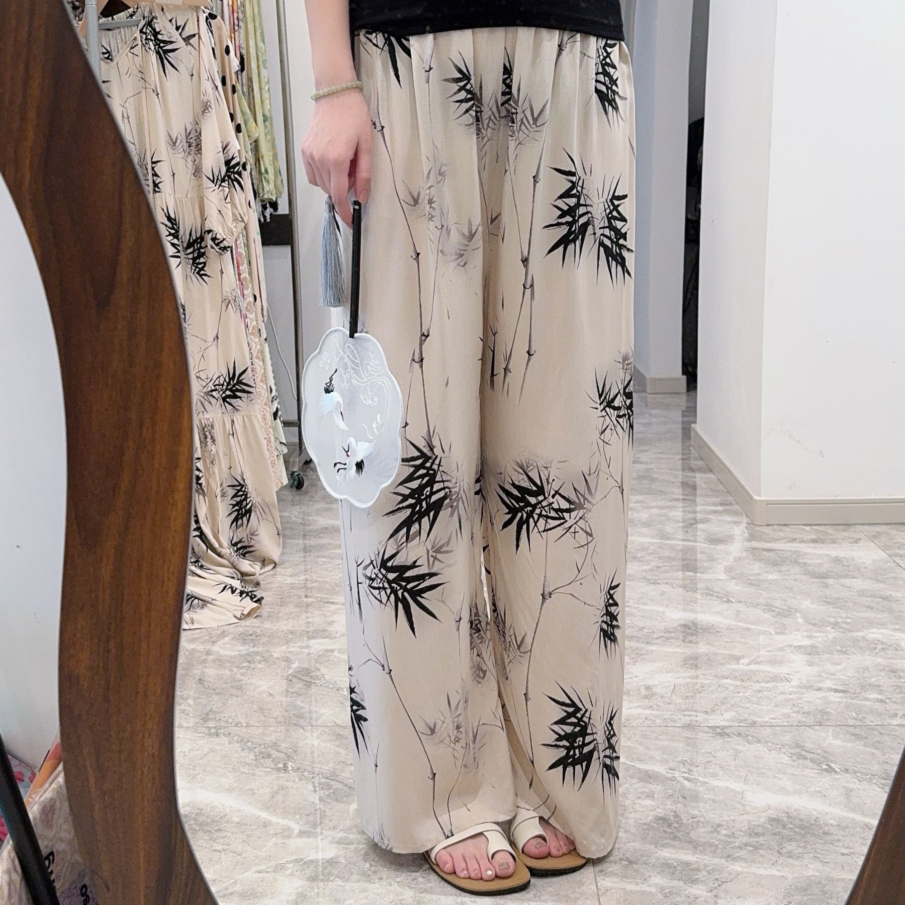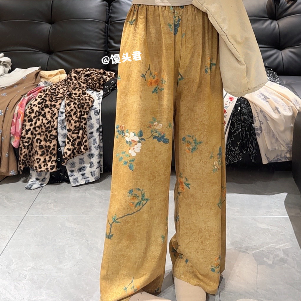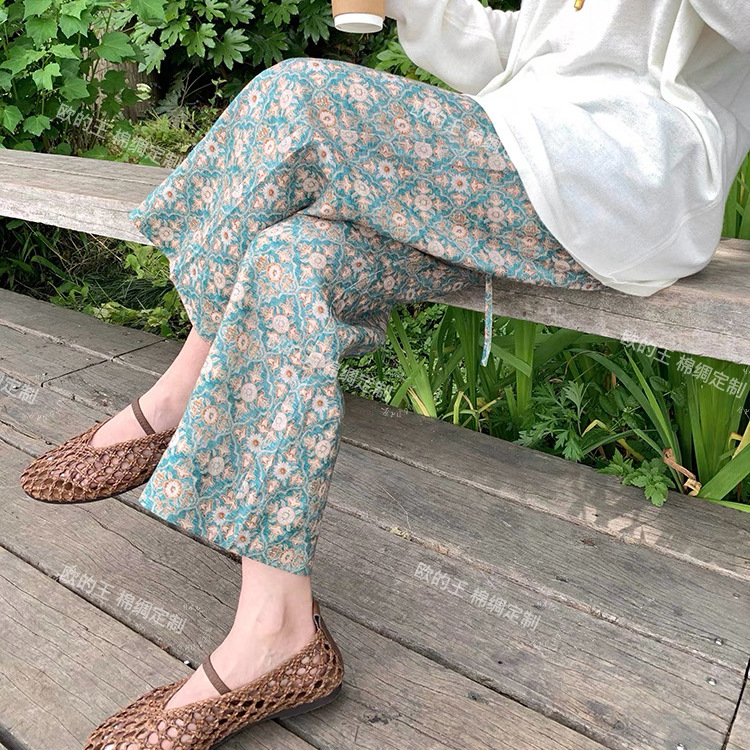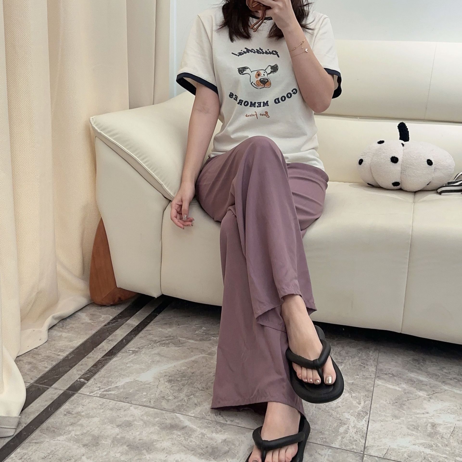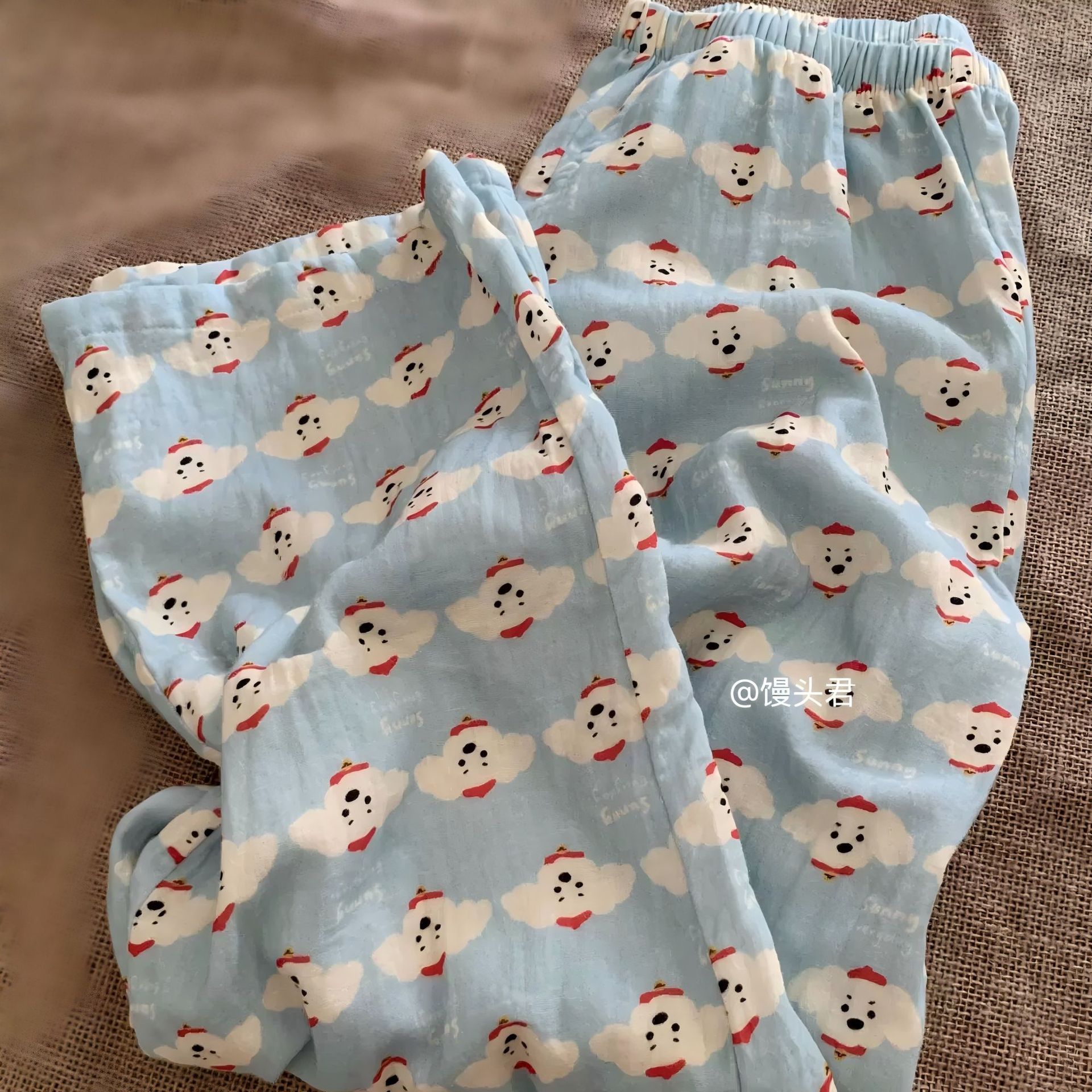 Хлопковые шелковые пижамы женские тонкие хлопчатобумажные широкие брюки