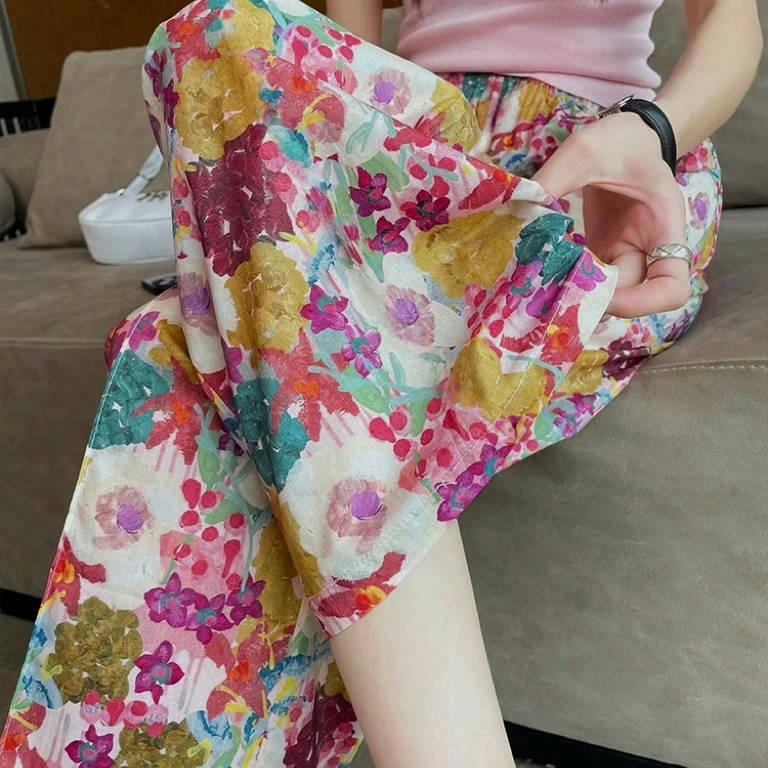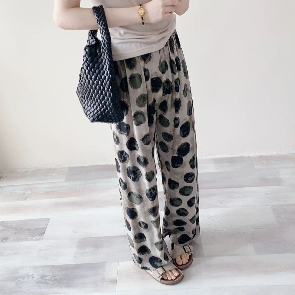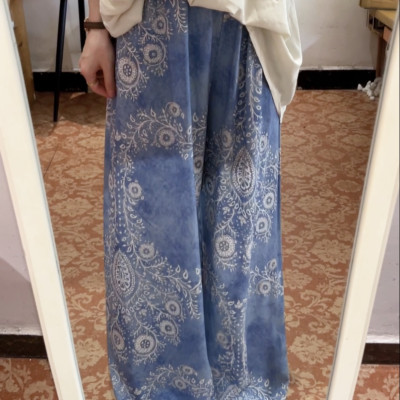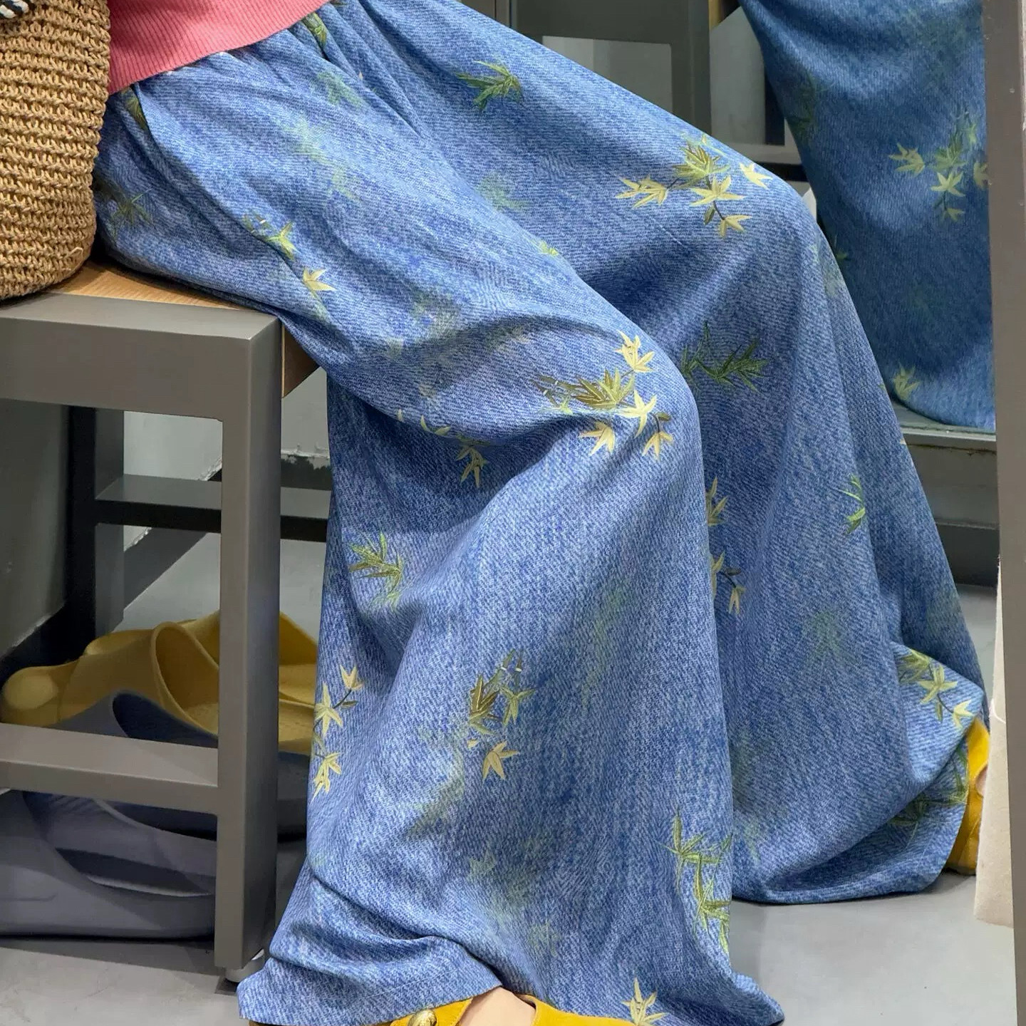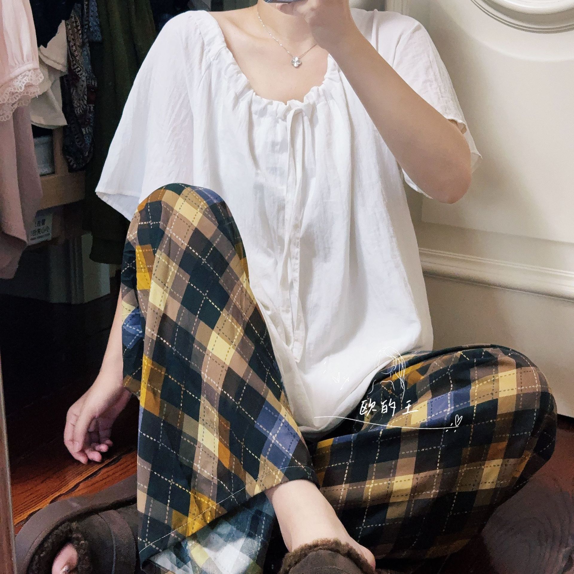 Хлопковые шелковые пижамы женские тонкие хлопчатобумажные широкие брюки