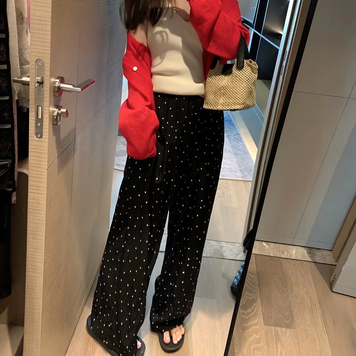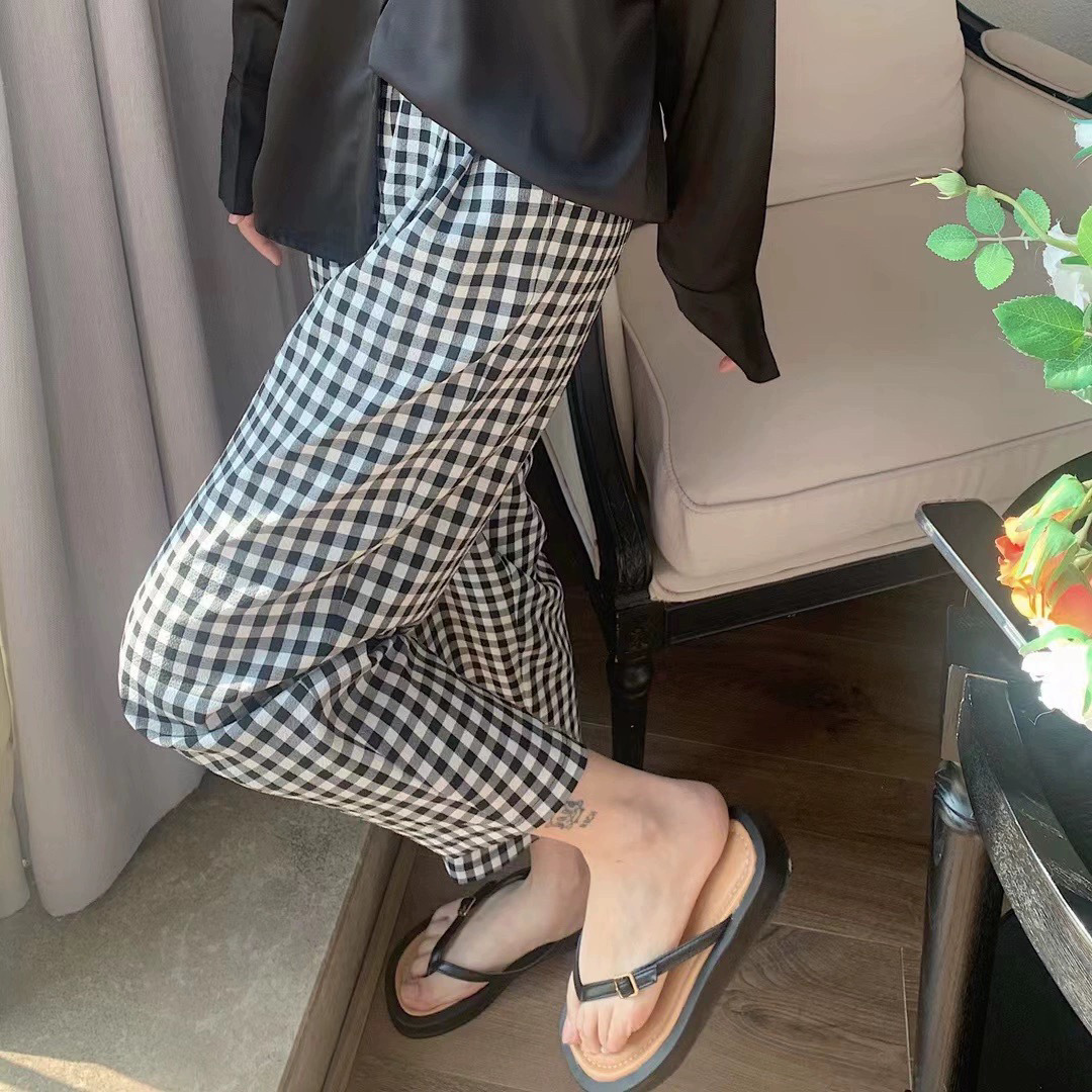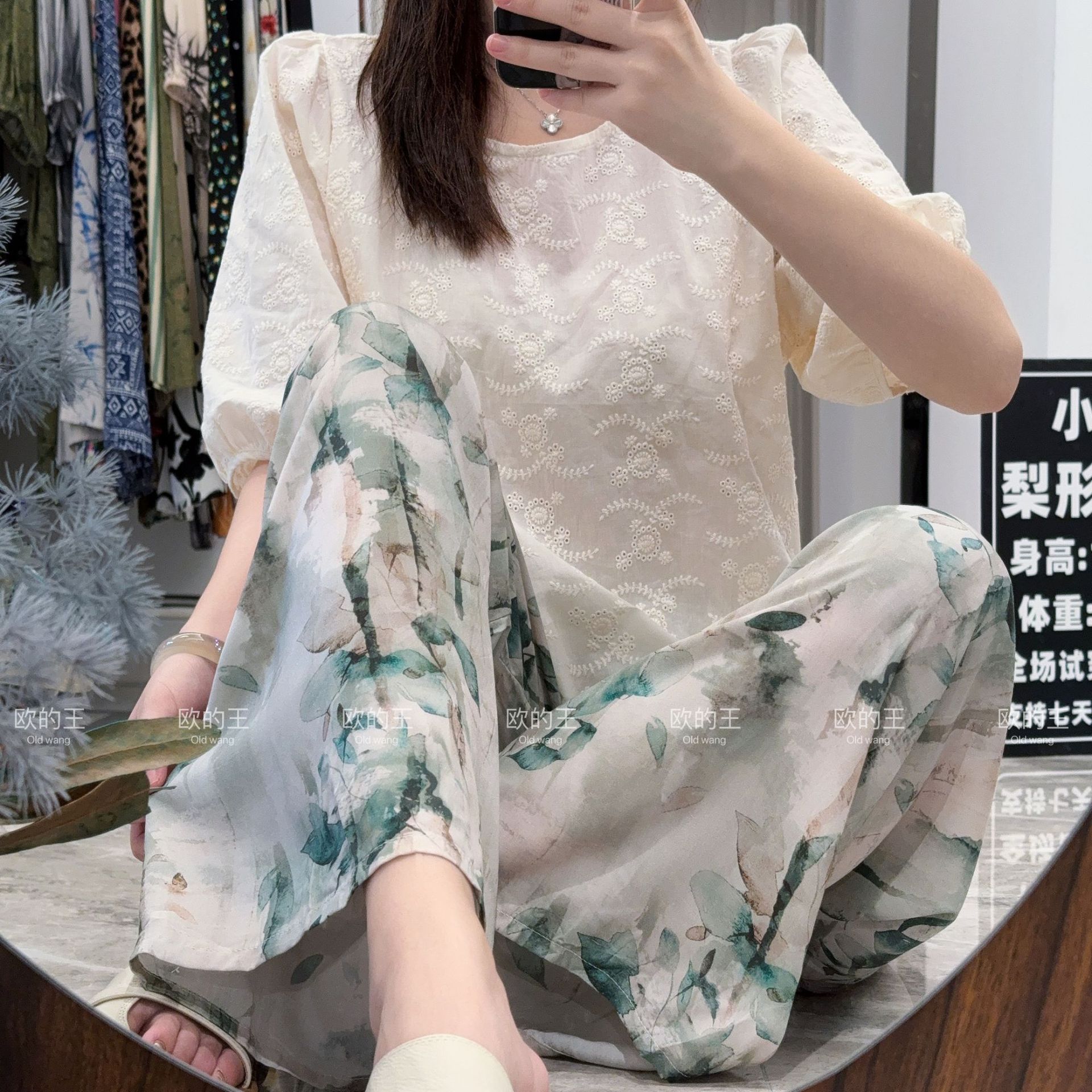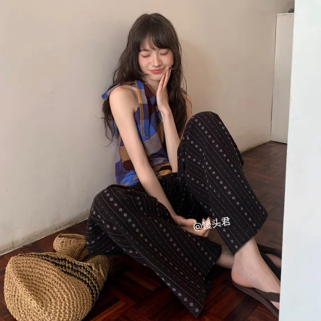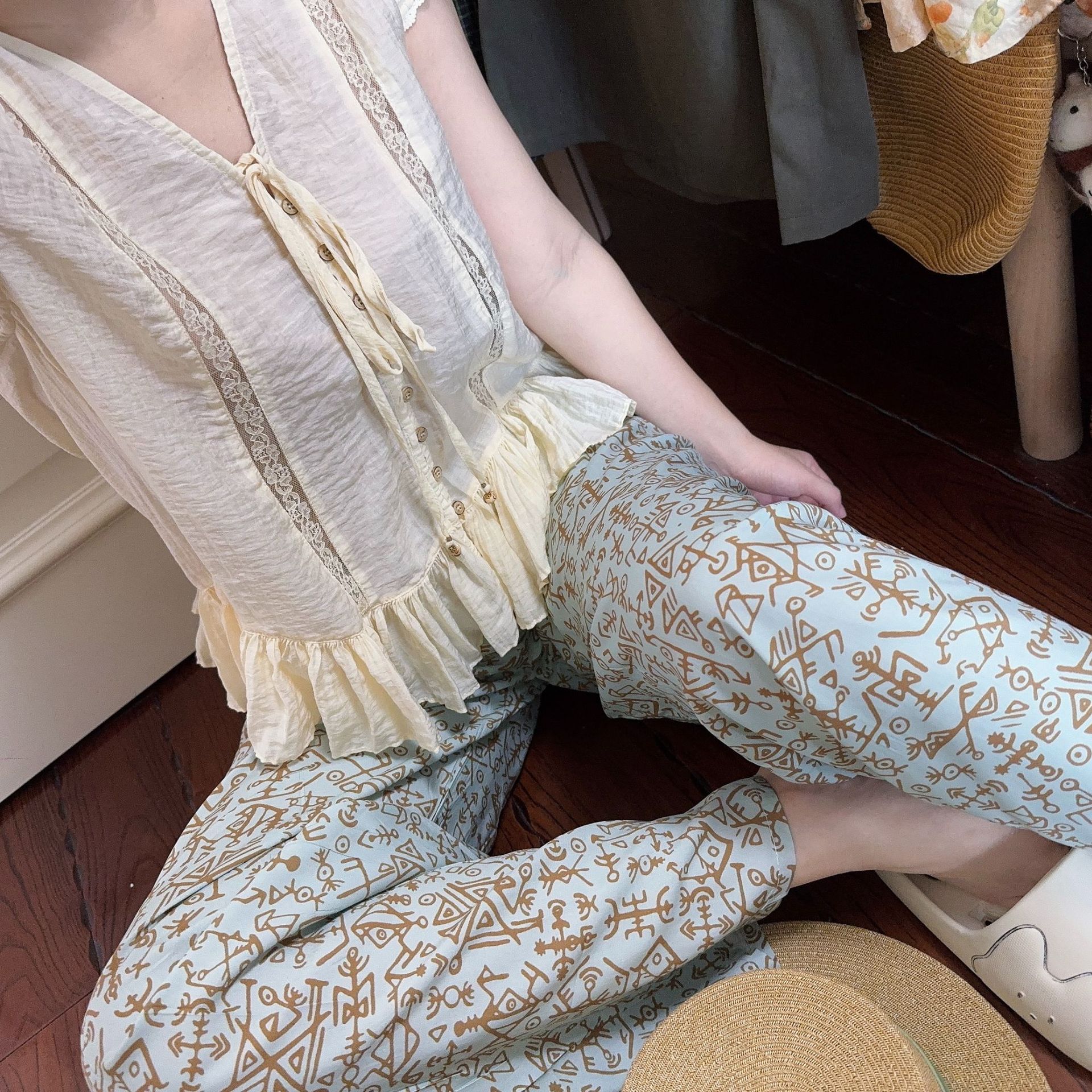 Хлопковые шелковые пижамы женские тонкие хлопчатобумажные широкие брюки