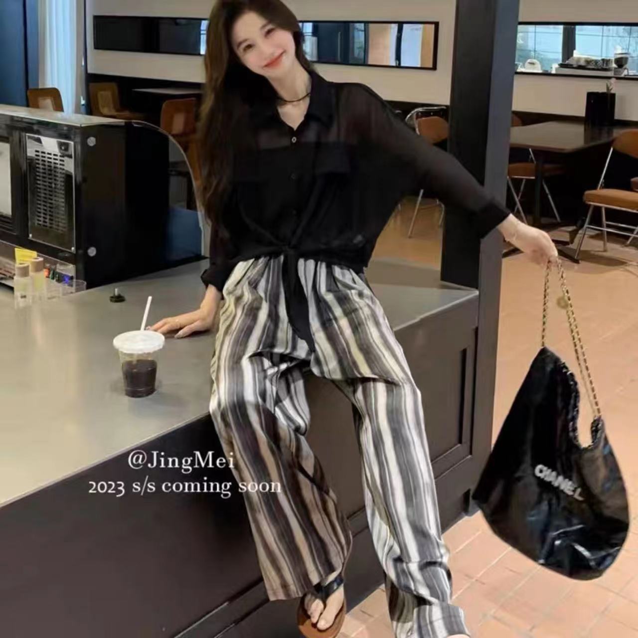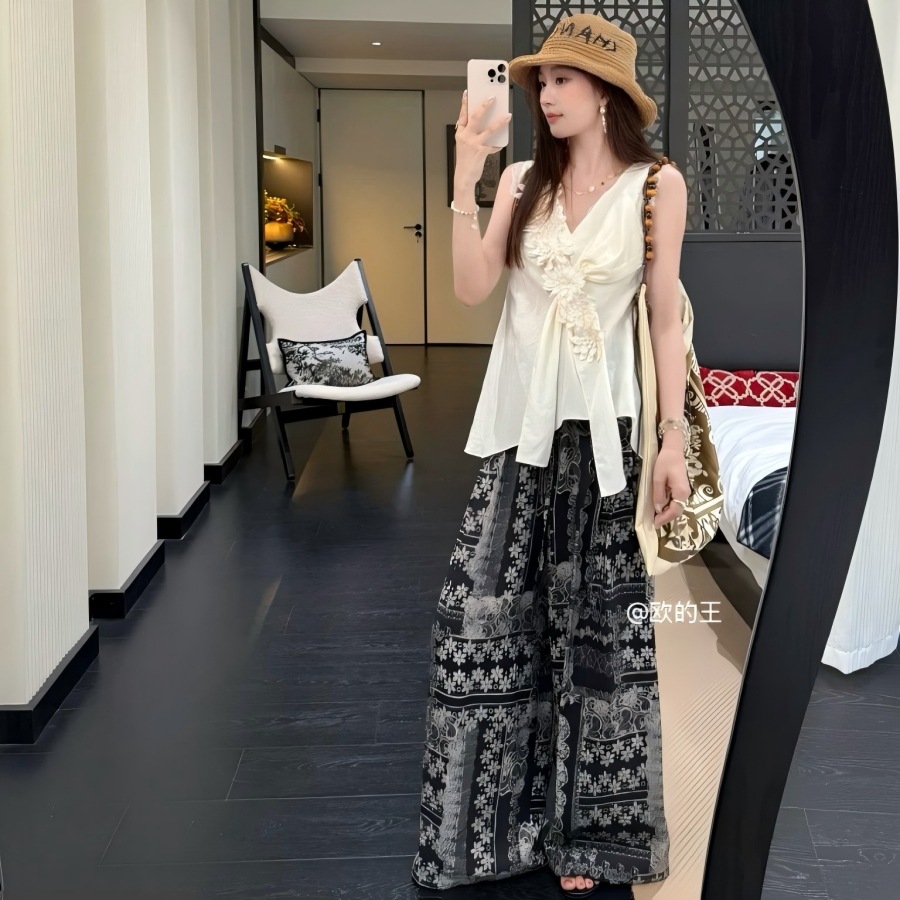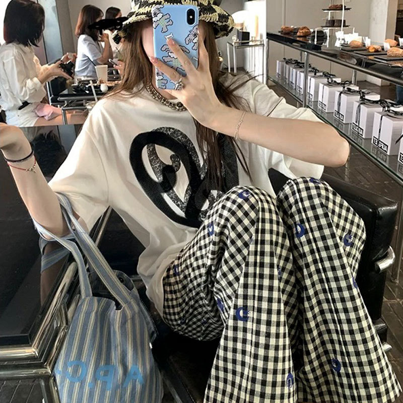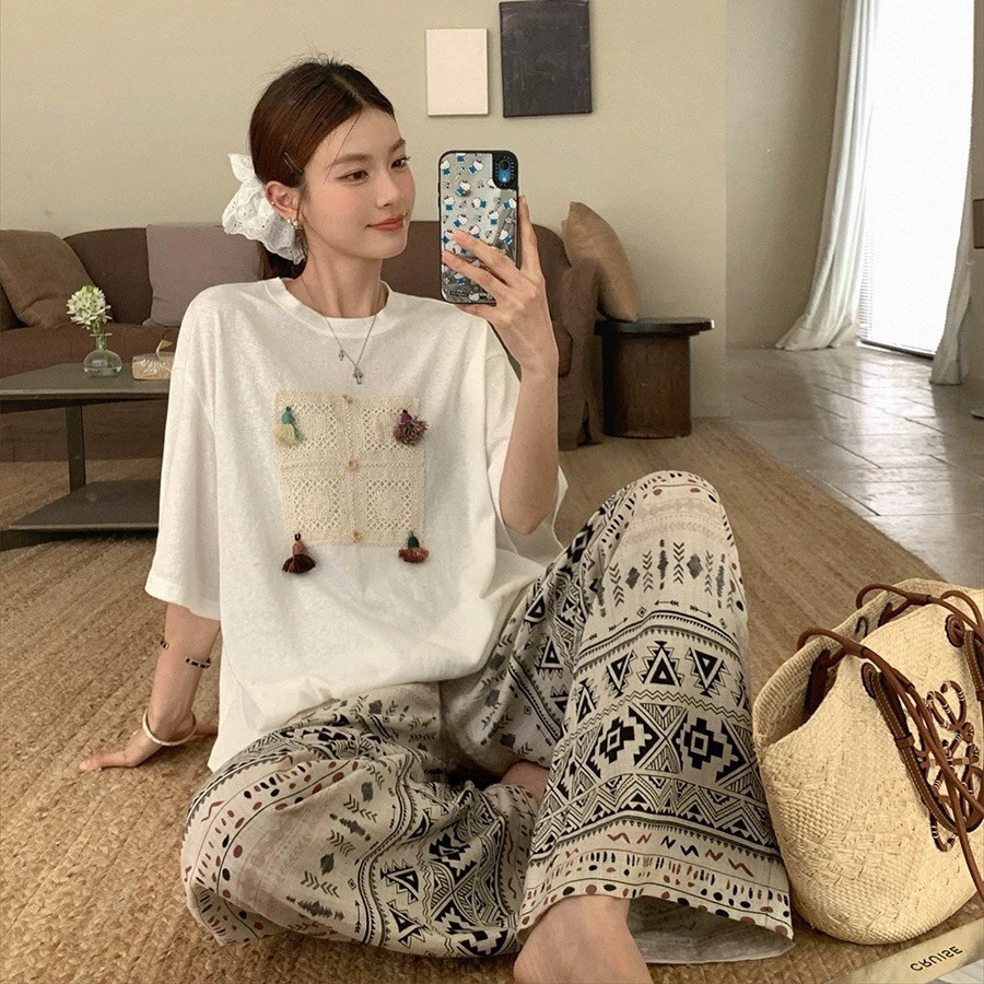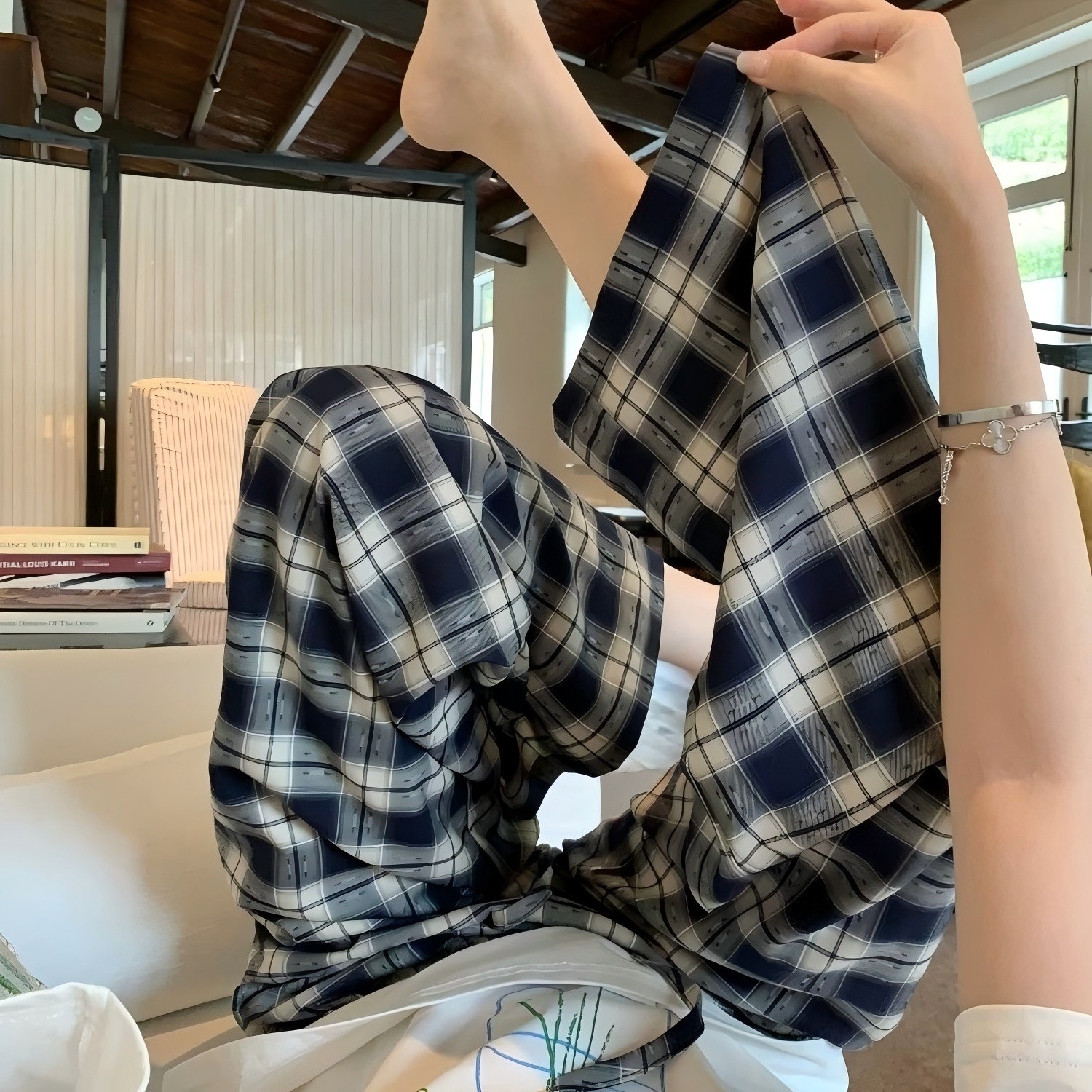 Хлопковые шелковые пижамы женские тонкие хлопчатобумажные широкие брюки