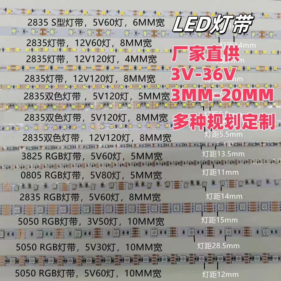 Светодиодная лента 2835-5050-3V3.7V4.5V5V6V12V3MM4MM5MM6MM8MM самоклеящаяся, низковольтная