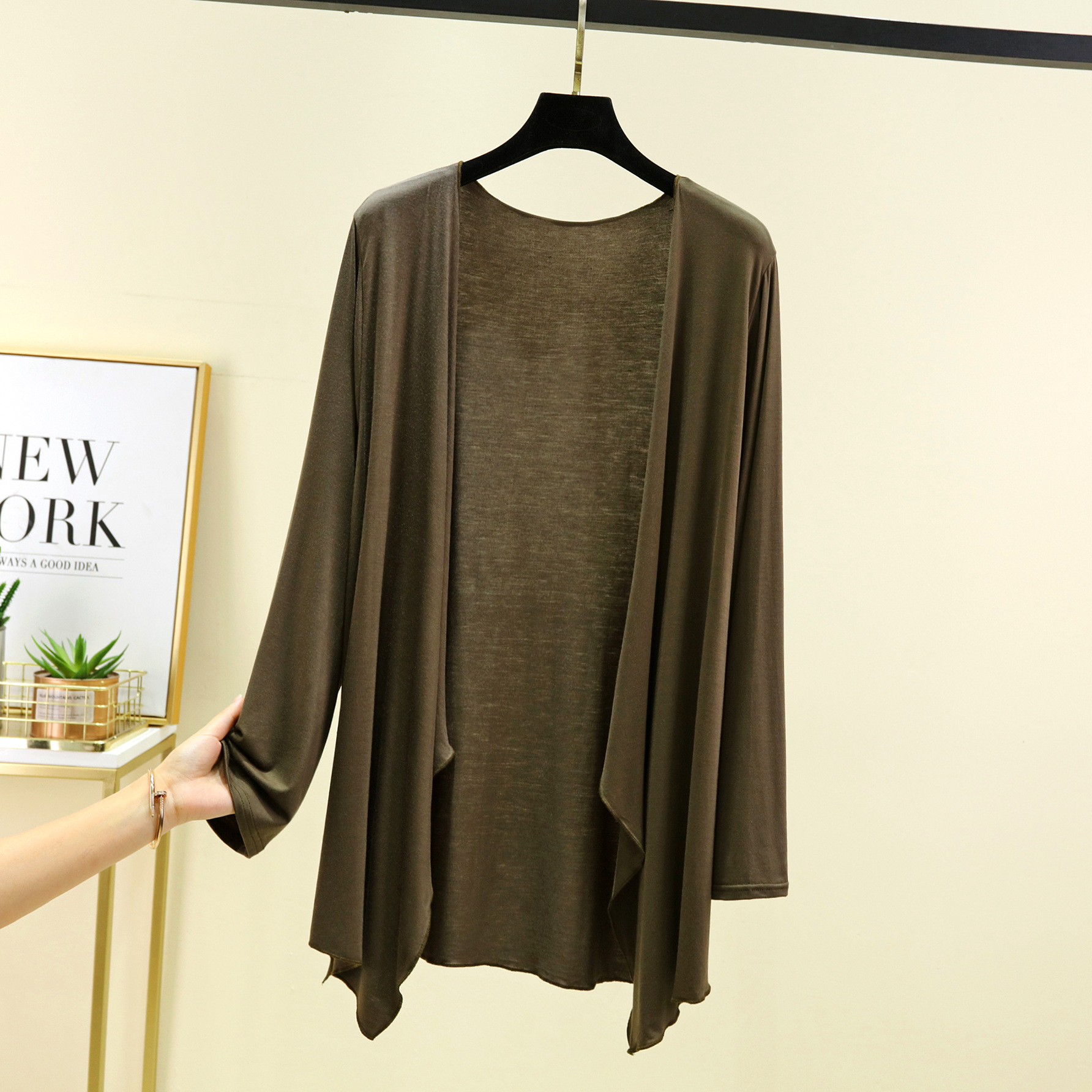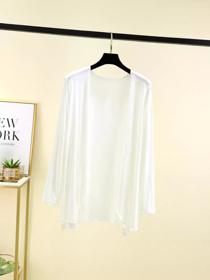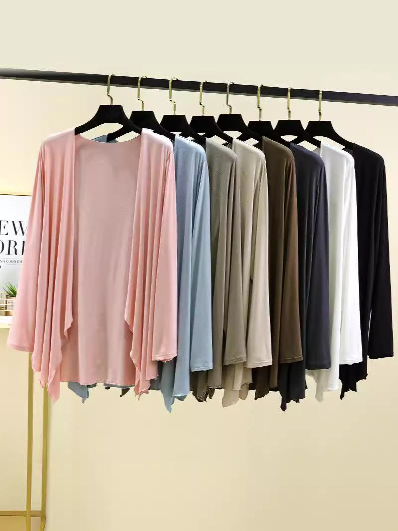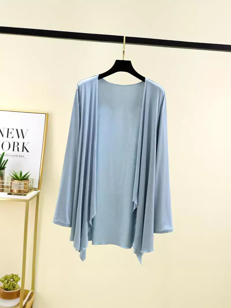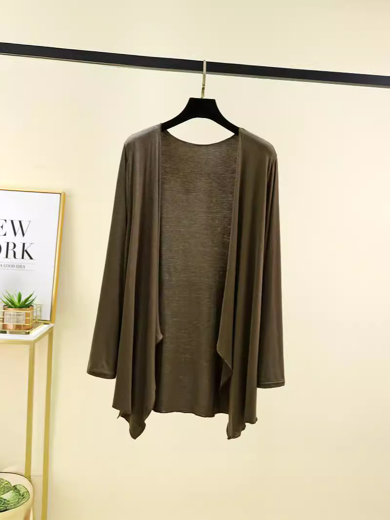 Модальный кардиган с длинными рукавами, женская летняя новая Солнцезащитная рубашка с кондиционером, однотонное тонкое пальто средней длины с неровной шалью