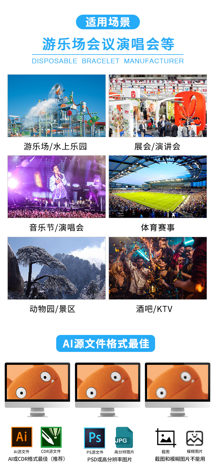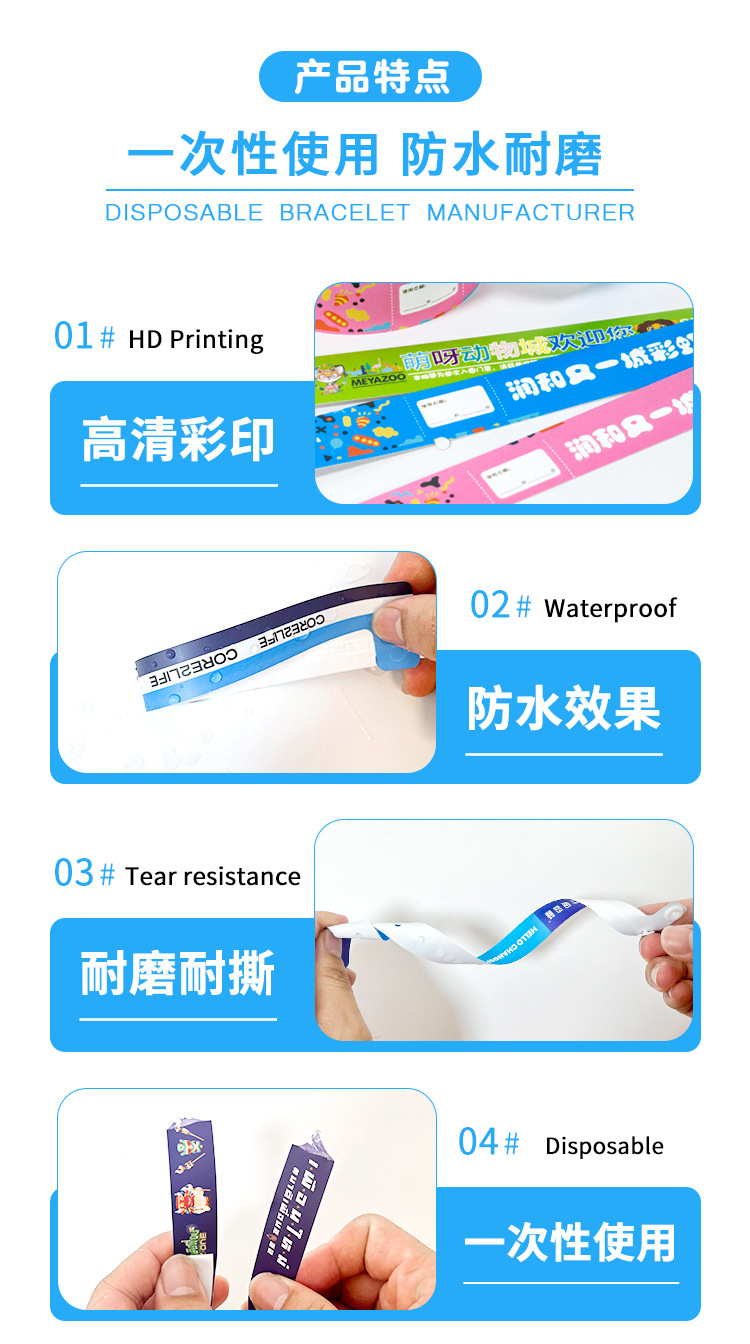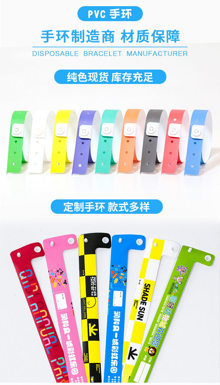 Одноразовый браслет из ПВХ, индивидуальный ремешок на запястье, бар, концерт, детская игровая площадка, ремешок с защелкой