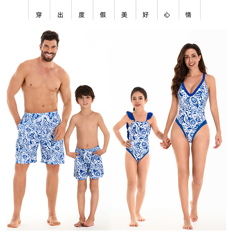 2024 Европейский и американский купальник для родителей и детей семейная одежда новое бикини для матери и дочери пляжные брюки с эластичной талией купальный костюм для отца и ребенка