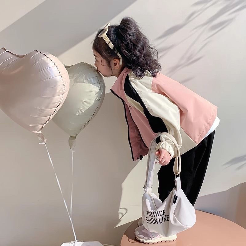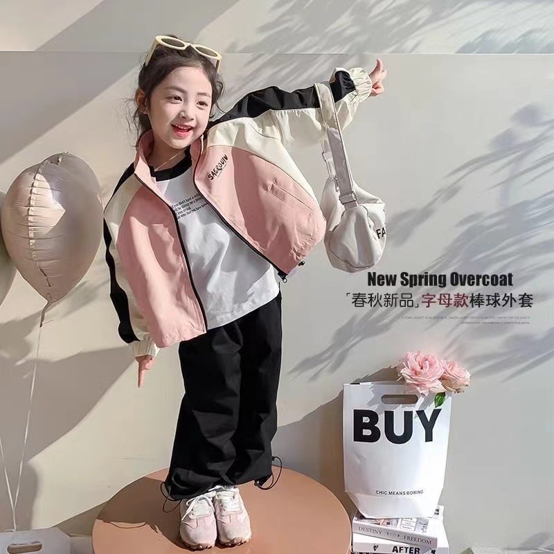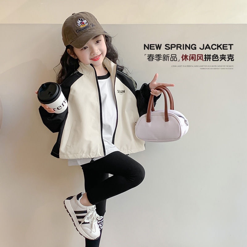 Куртка для девочек весна-осень 2024 Новая Весенняя короткая куртка для девочек в западном стиле, Детская куртка, подходящая по цвету куртка
