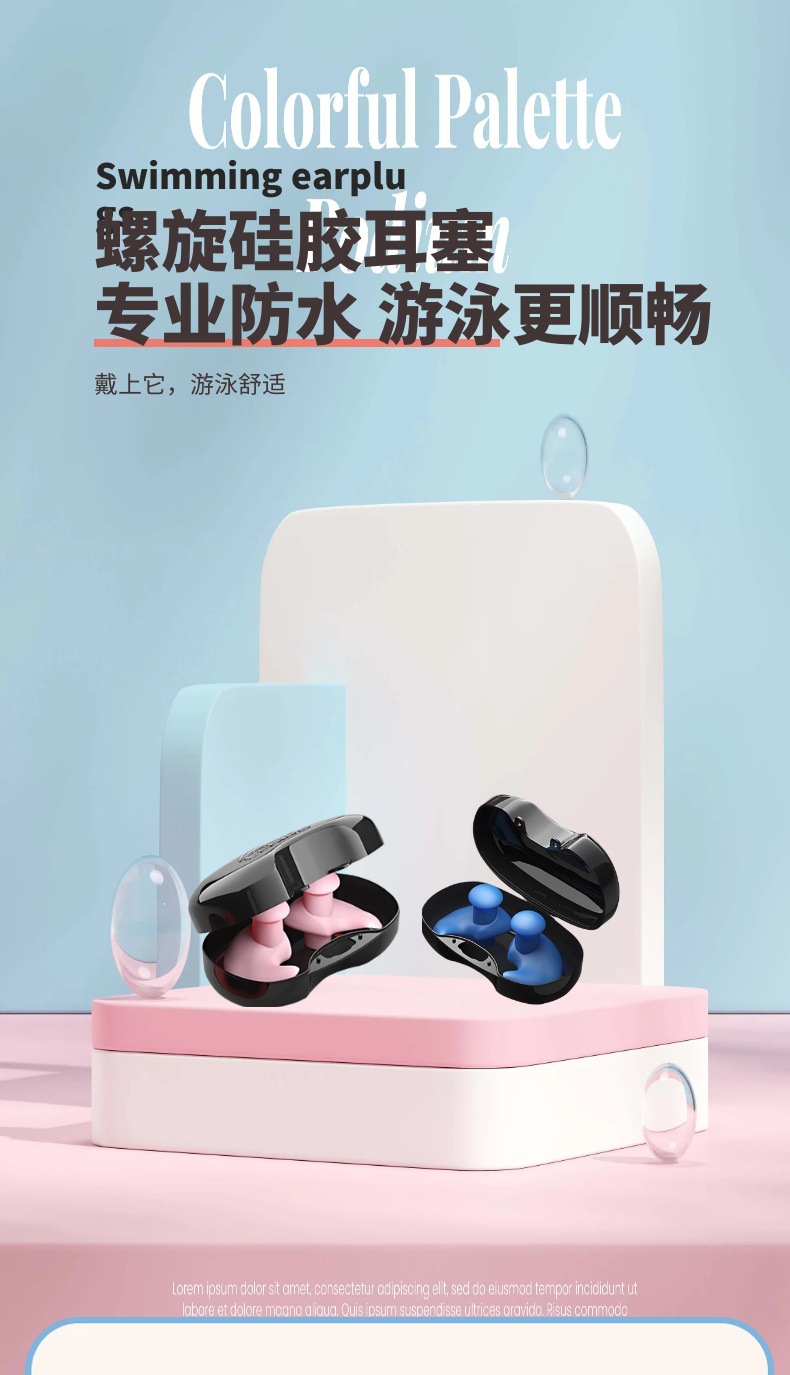 Беруши для плавания, силиконовые беруши, водонепроницаемые спиральные беруши для плавания, зажим для носа, черный ящик, набор беруш с шумоподавлением для сна, оптовая продажа