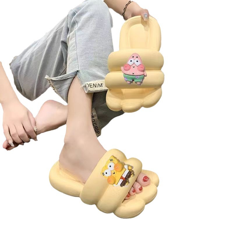 Женские тапочки "Губка Боб" для лета, домашние, для ванной комнаты, нескользящие, с индивидуальным дизайном, с широкой подошвой