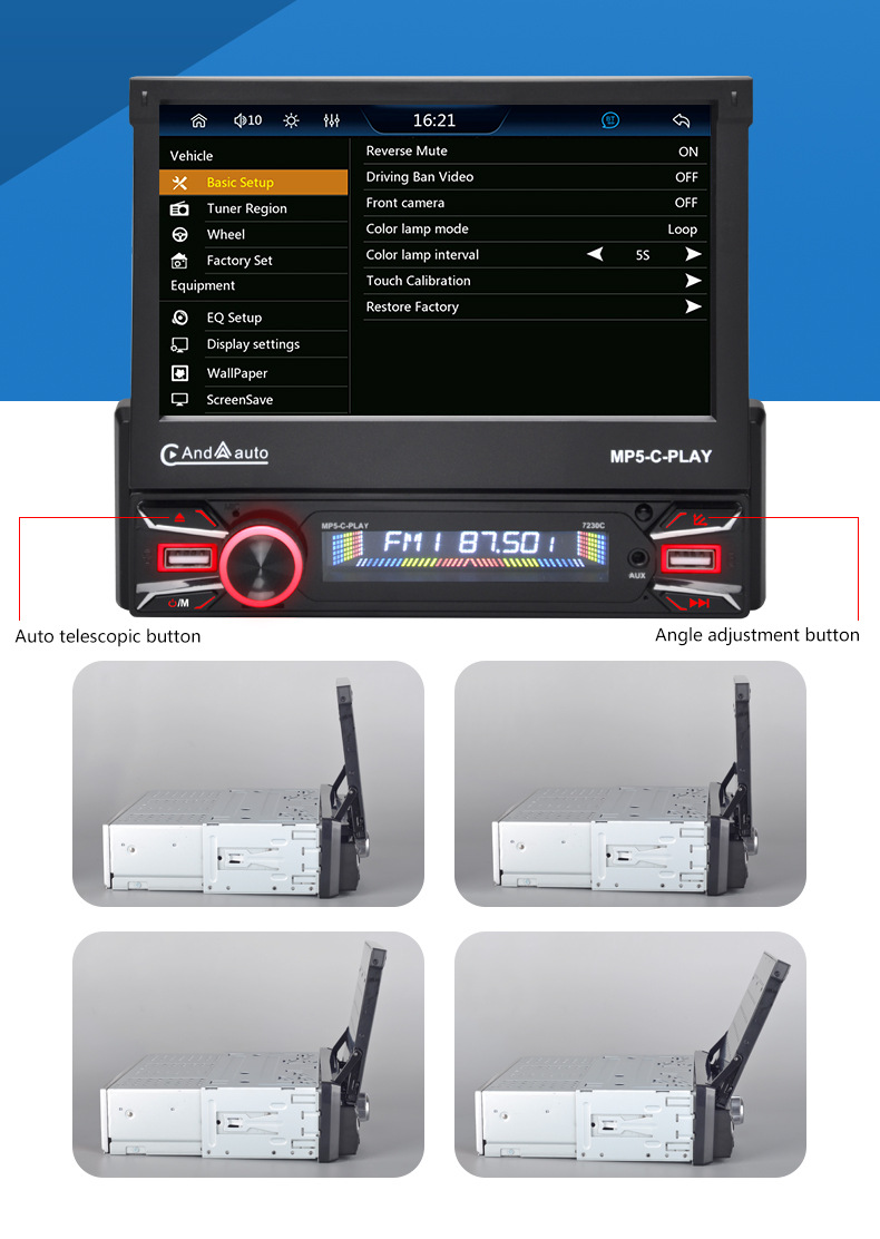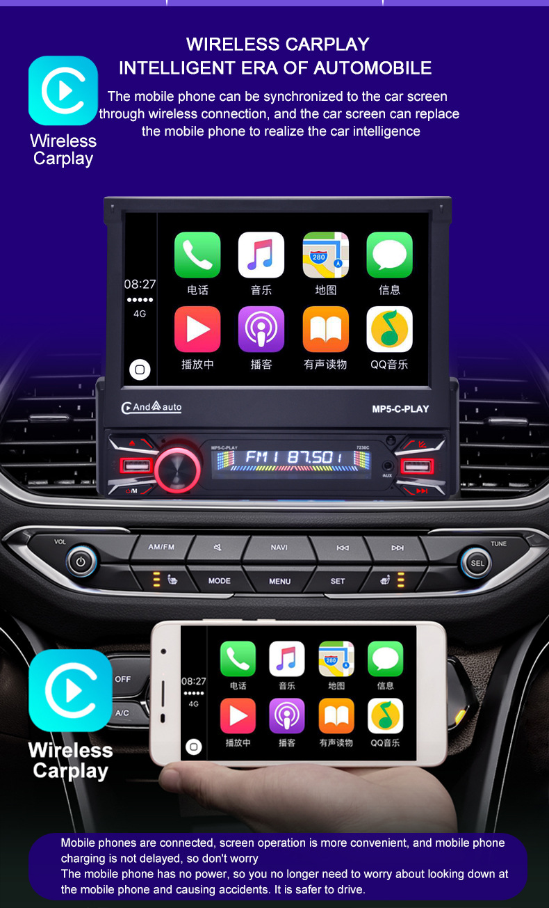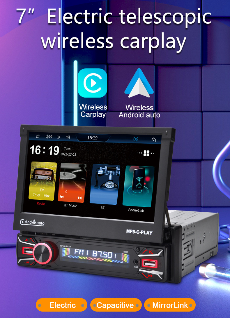 7-дюймовый телескопический экран автомобиля MP5 карта радио Bluetooth громкой связи плеер автомобиль MP4 все в одном carplay