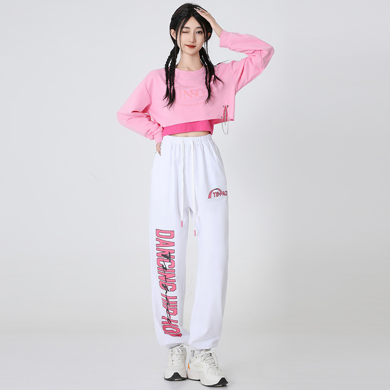 Розовый с длинными рукавами плюс жилет; Белые брюки