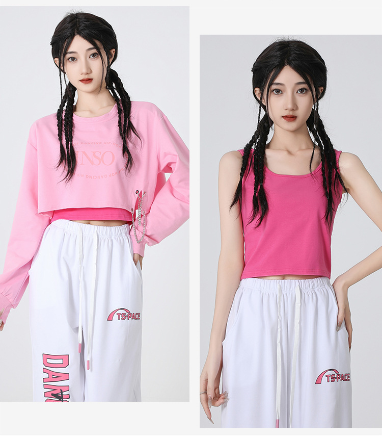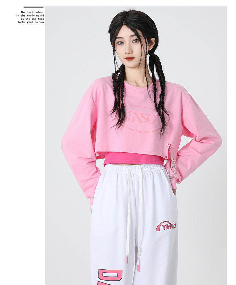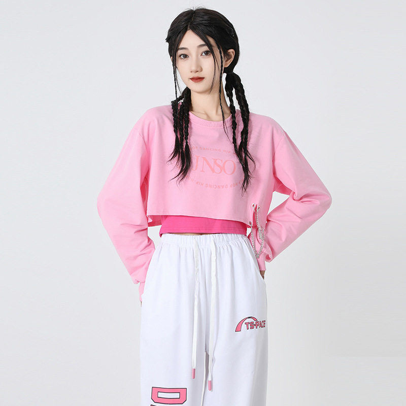 Реальная стрельба Весенняя энергичная розовая цепочка с длинными рукавами