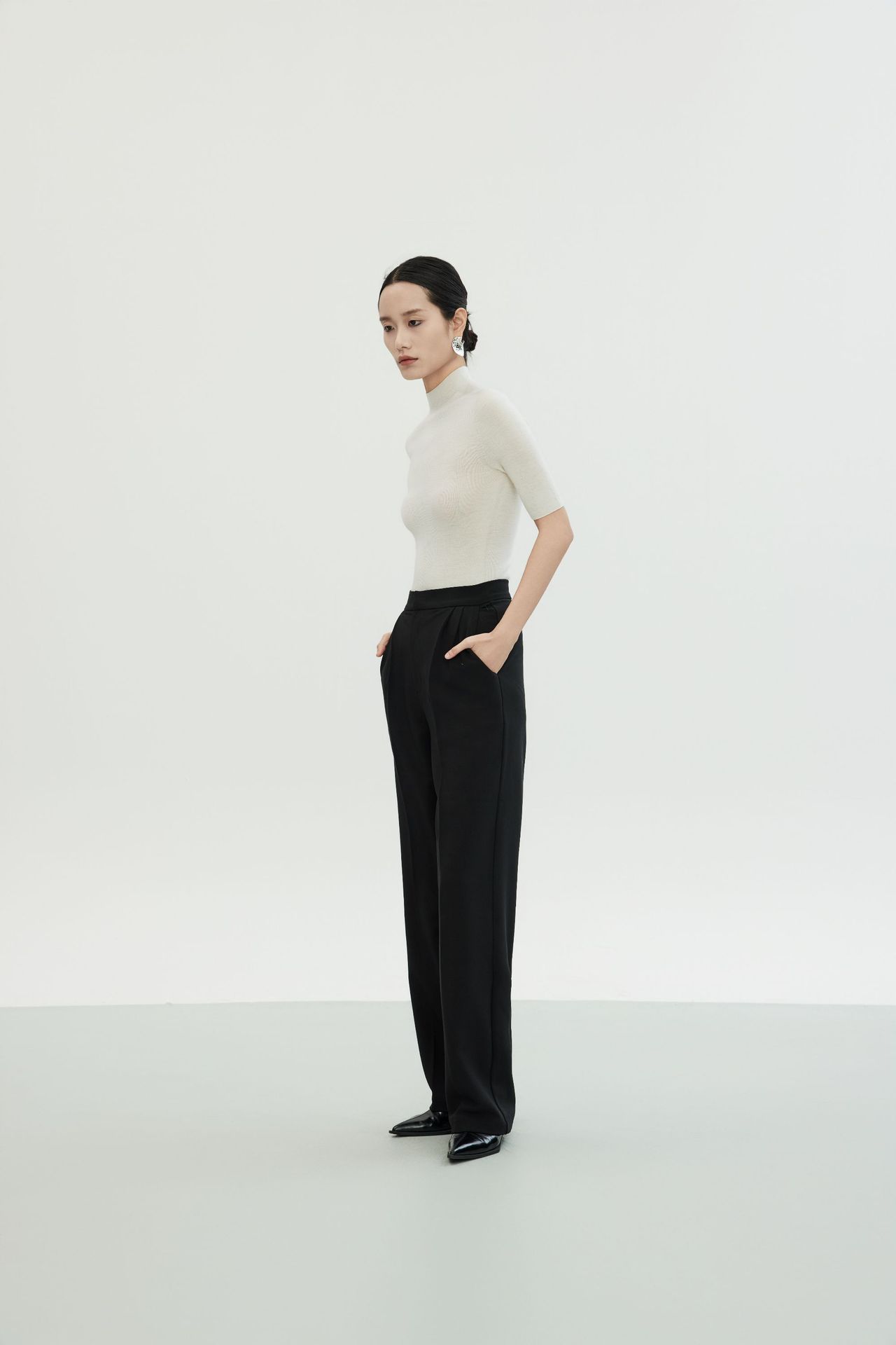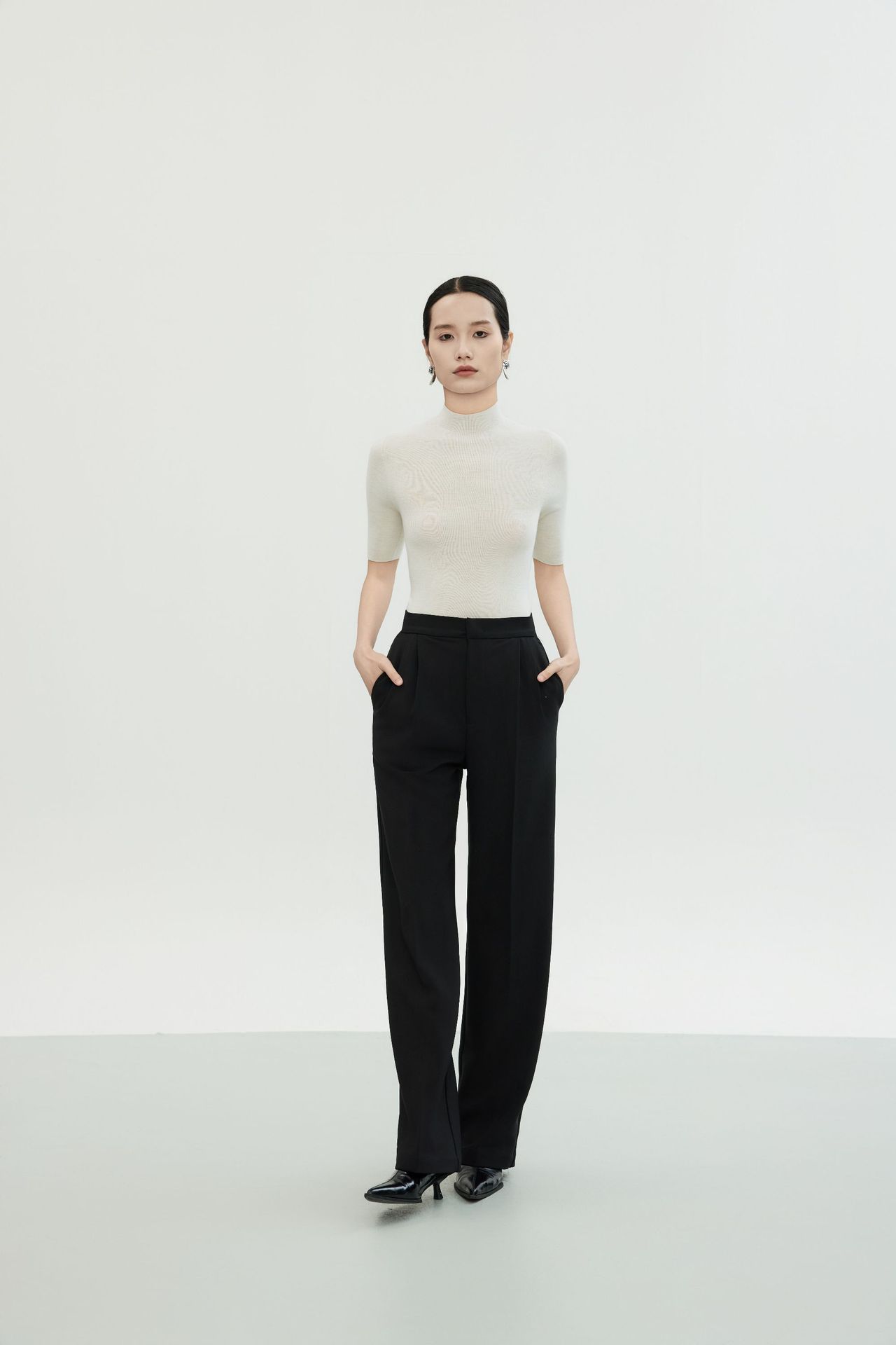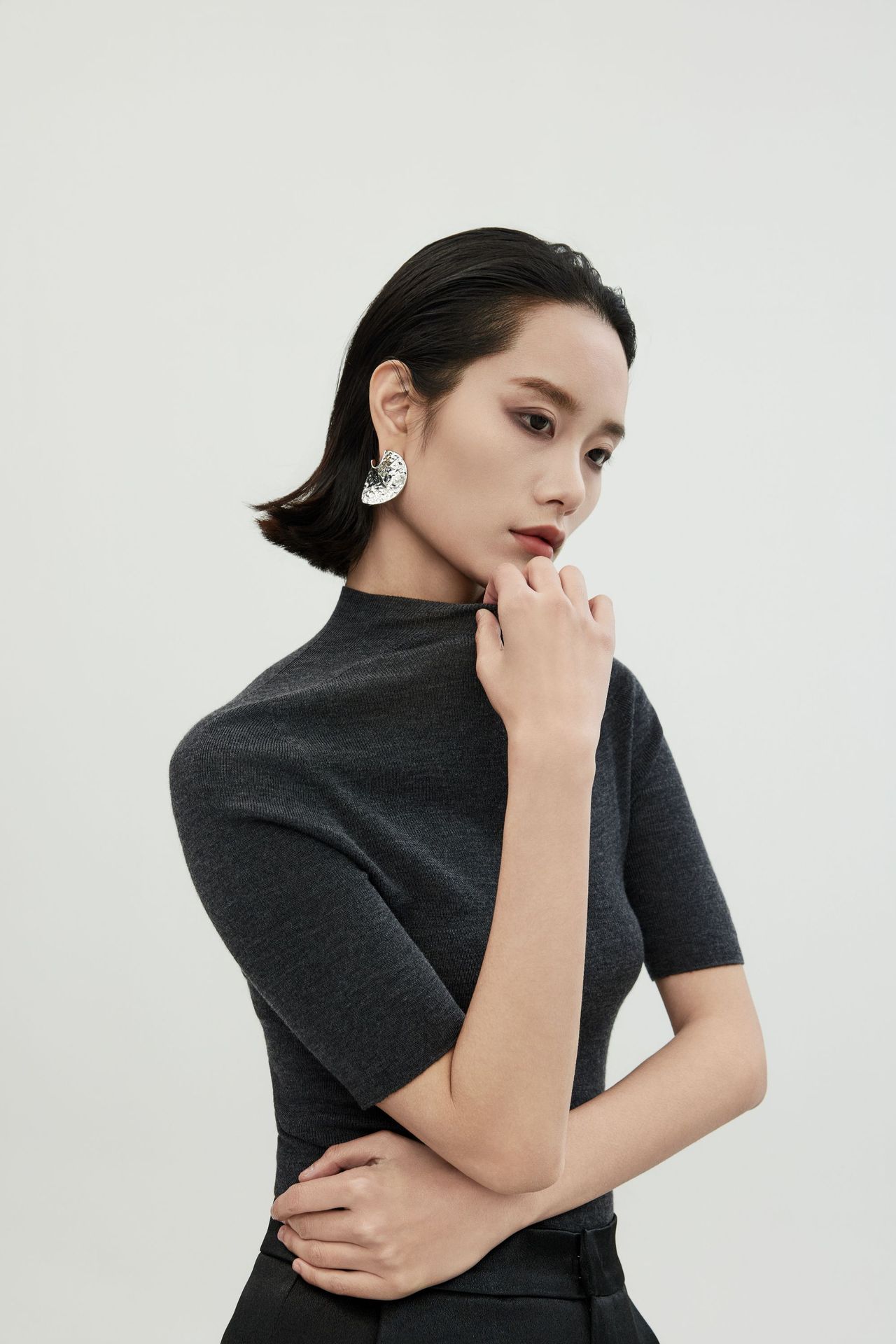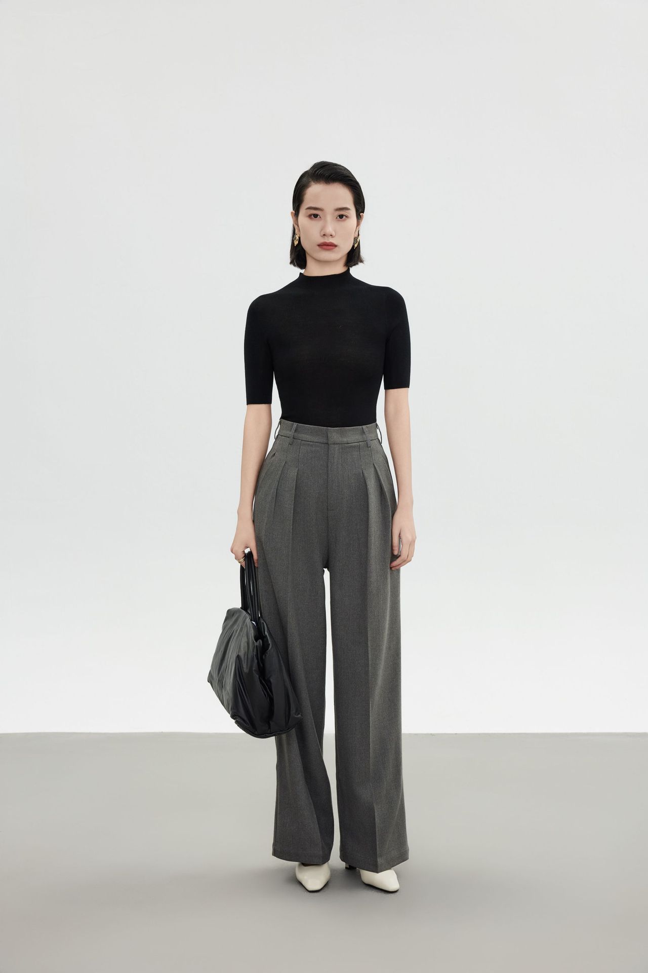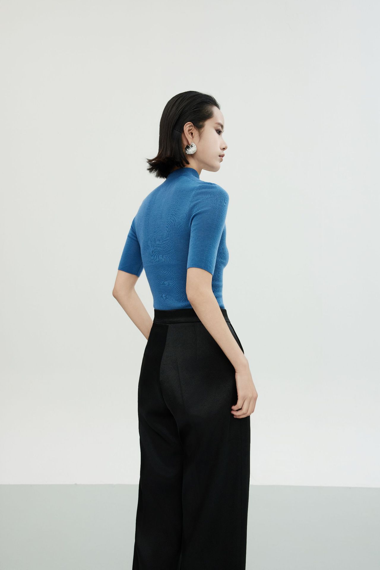 【2/60 Yangtze yarn】Бесшовный трикотажный топ из 100% шерсти с воротником-стойкой и рукавами три четверти, тонкий фасон, для женщин.