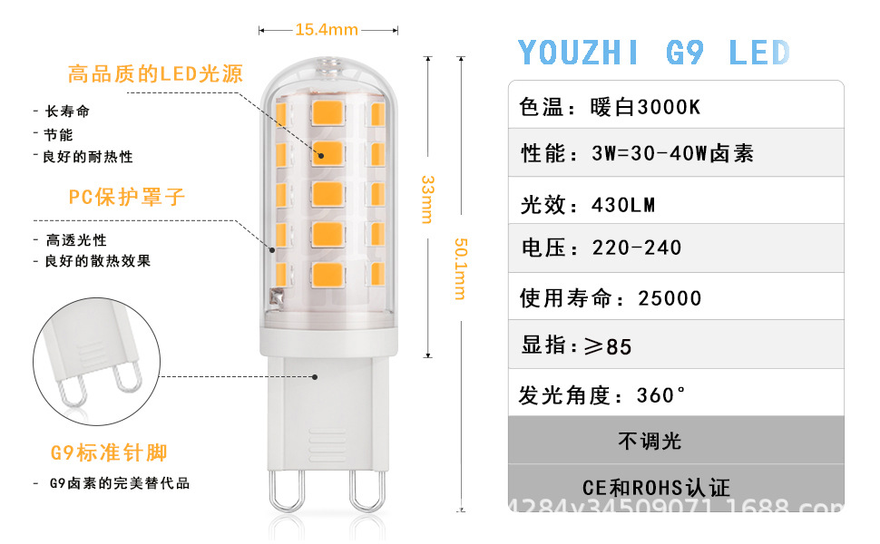 Светодиодная лампа G9/G4 с керамическим цоколем, без мерцания, для трансграничной поставки