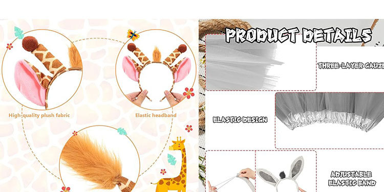 Жираф рога для волос обруч для ушей с ослиным хвостом нос лук Хэллоуин Рождественская ролевая вечеринка