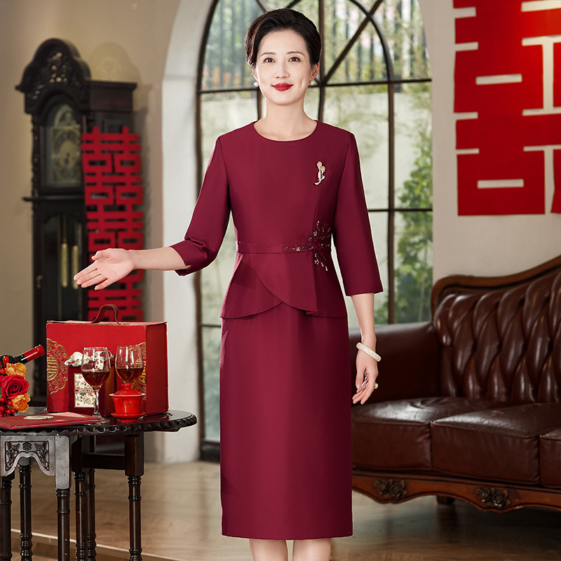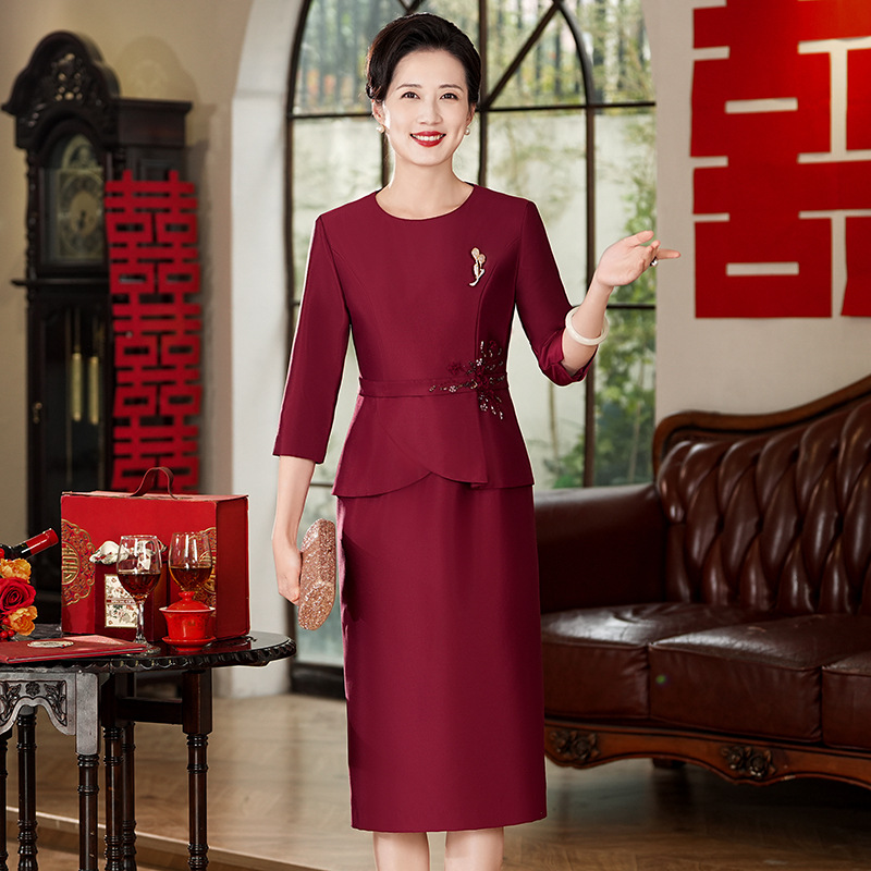 Наряд для свадебного банкета свекрови 2025, новое весеннее высококачественное свадебное платье для матери, женское свадебное платье с длинными рукавами в стиле лёгкой роскоши.