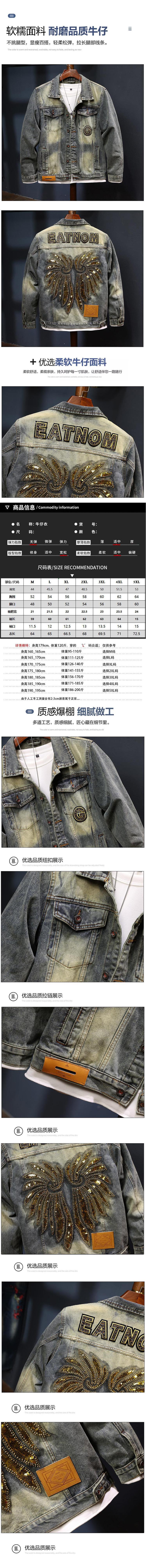 2024 новая весенне-осенняя вышивка в мотоциклетном стиле, модная мужская джинсовая куртка, джинсовое пальто, мужская куртка 536