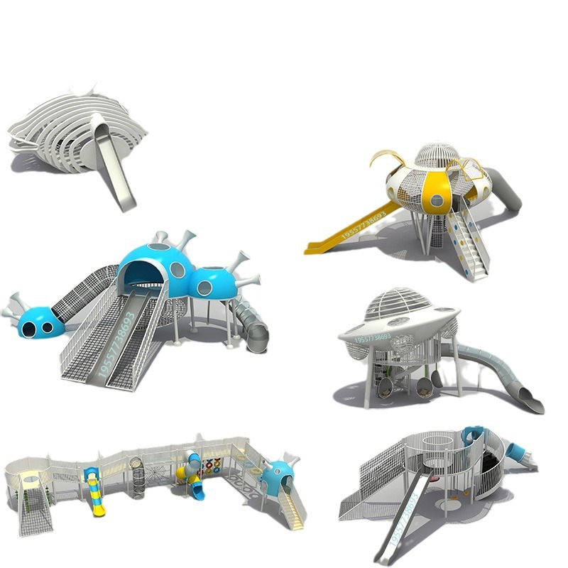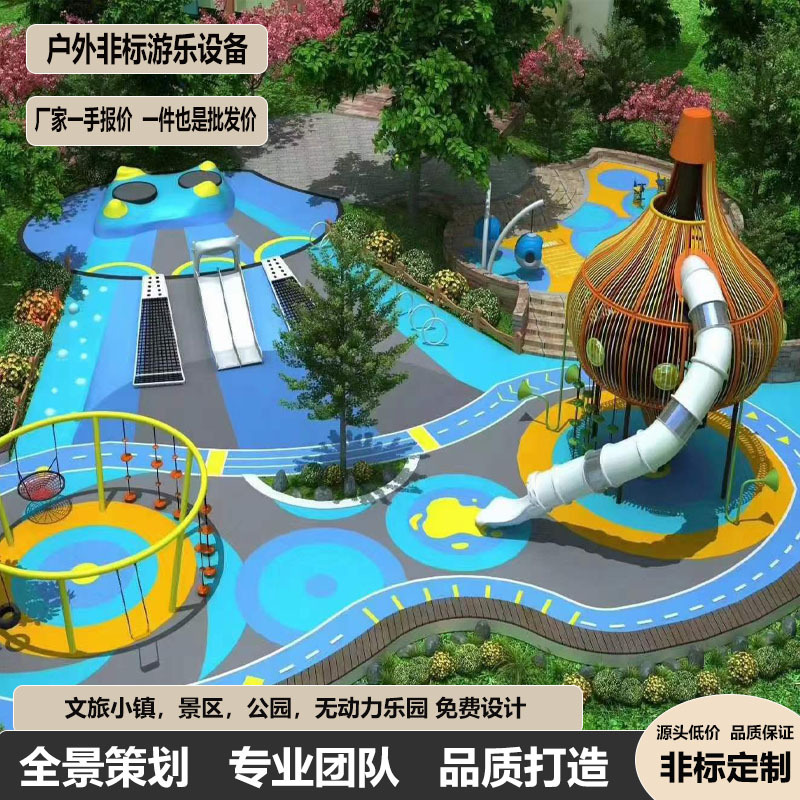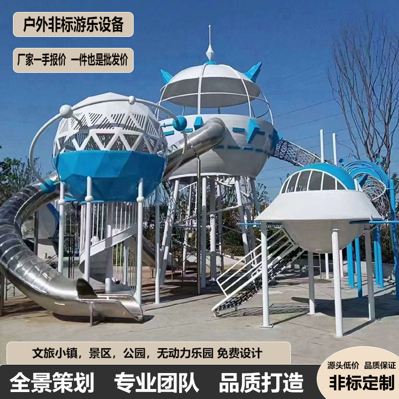 Большой уличный детский не требующий электропитания игровой комплекс для активного отдыха и культурного туризма, с горками из нержавеющей стали