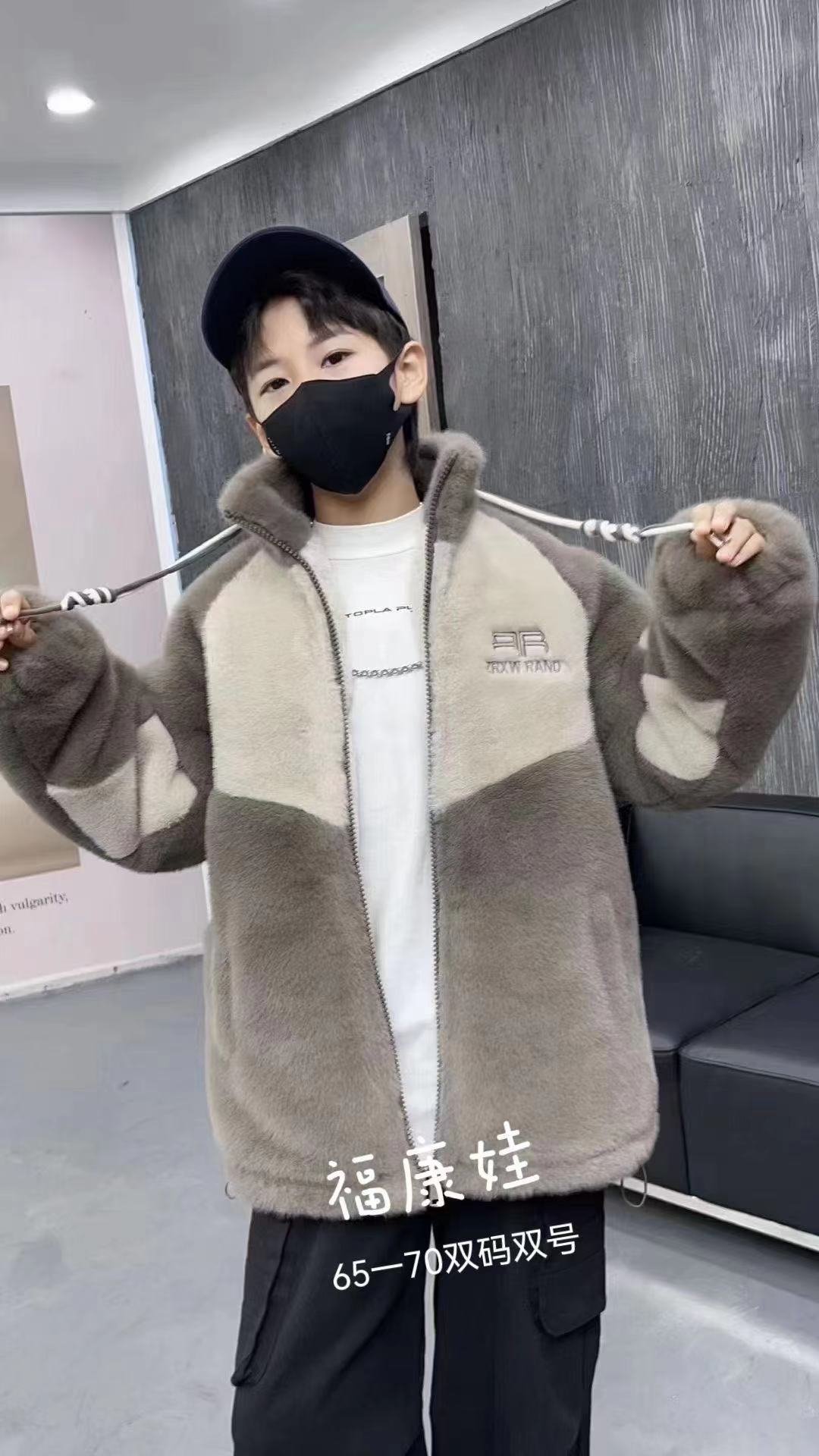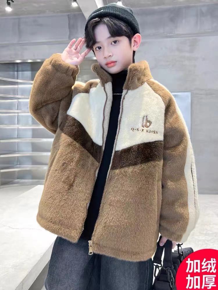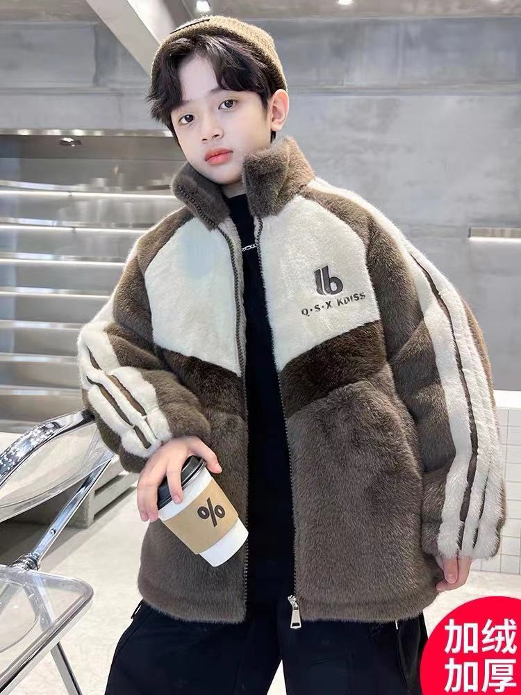 Свитер для мальчиков, зимнее утолщенное теплое пальто из норки с имитацией парчи на флисовой подкладке, детская стеганая зимняя мода из меха кролика средних и больших детей