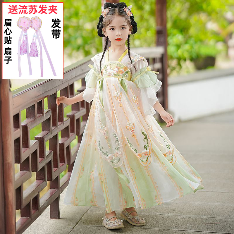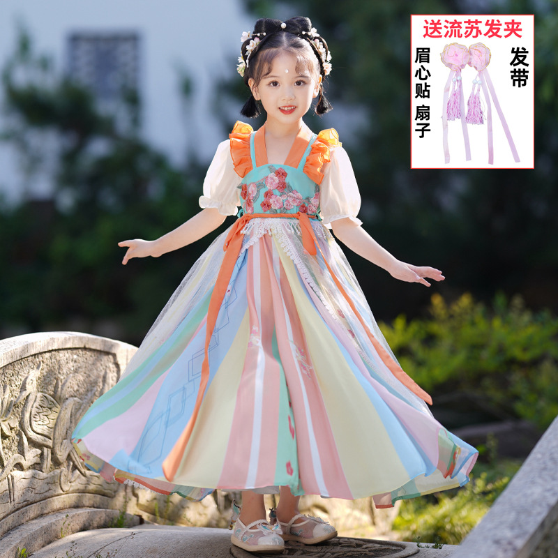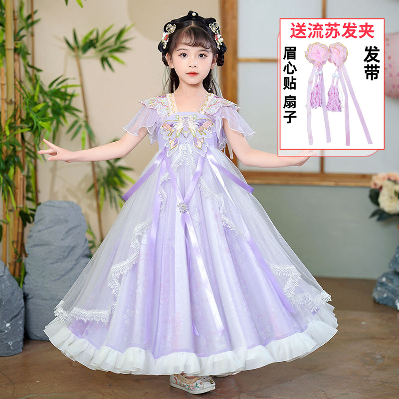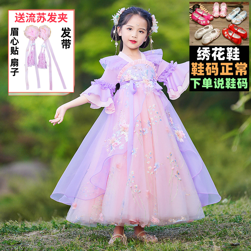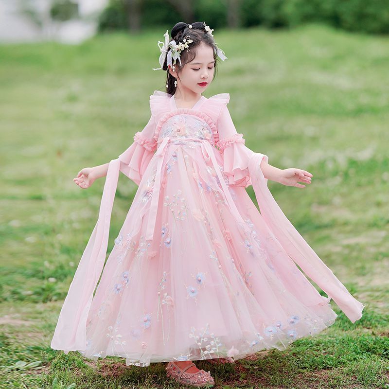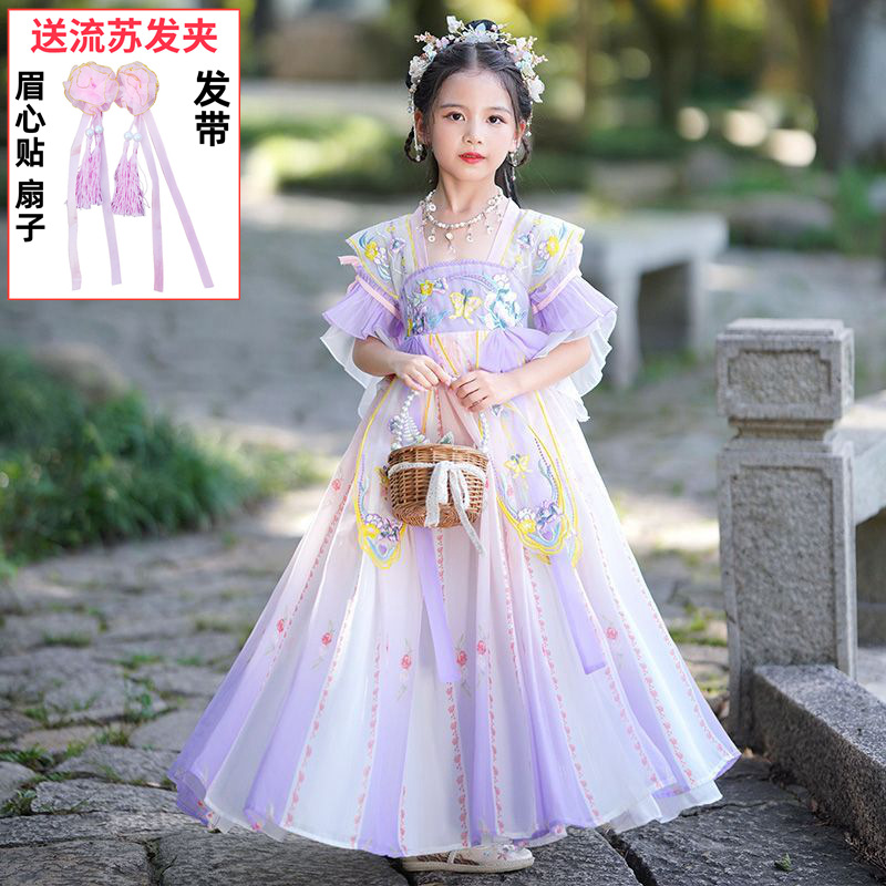 Y супер фея для девочек, летний древний костюм династии Хань, детская одежда, новинка 2024, летняя одежда, одежда для выступлений с цветочным богом для маленьких девочек