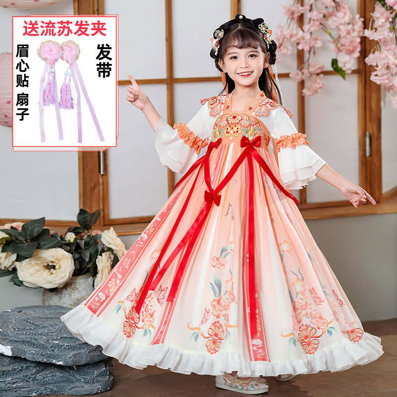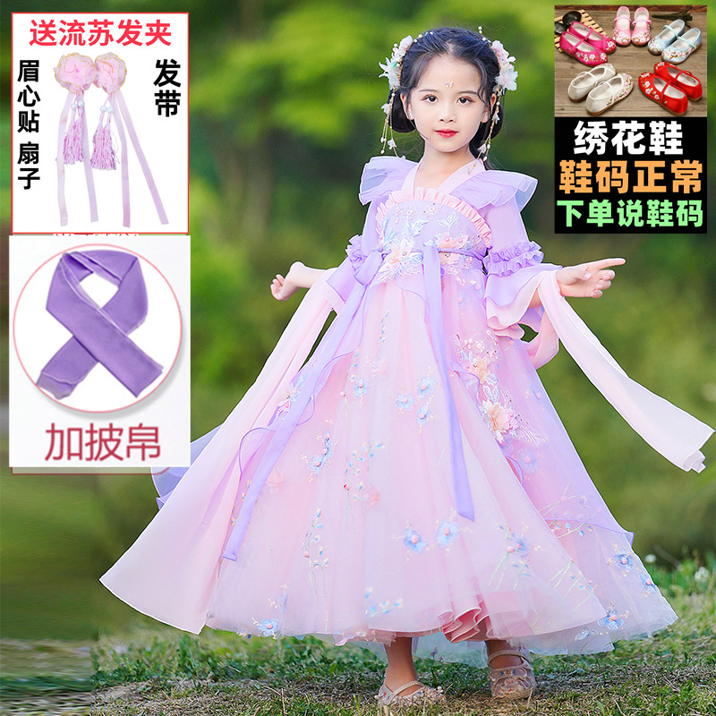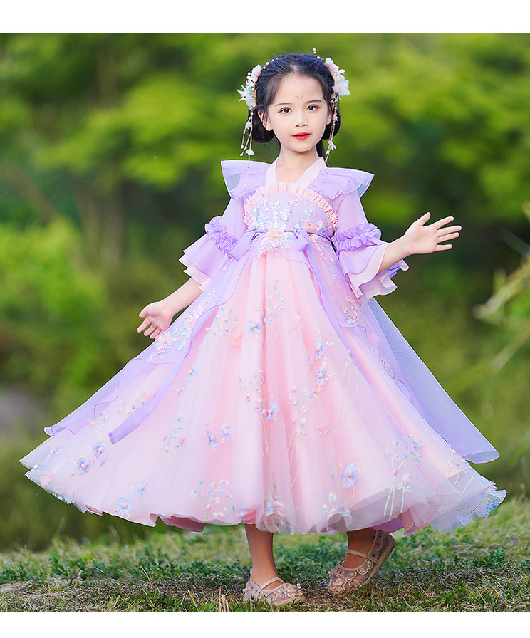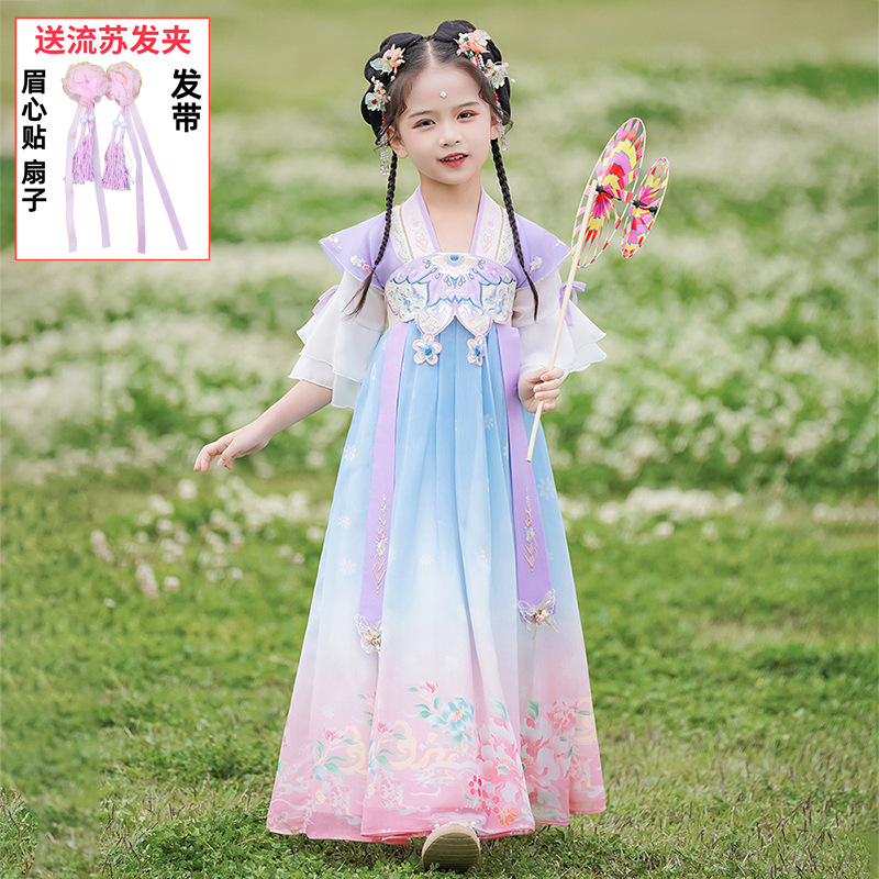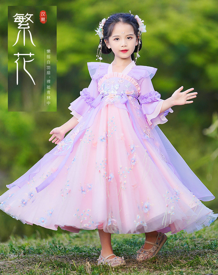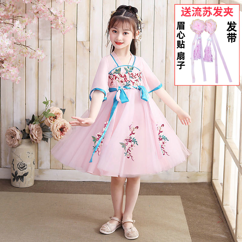 Y супер фея для девочек, летний древний костюм династии Хань, детская одежда, новинка 2024, летняя одежда, одежда для выступлений с цветочным богом для маленьких девочек