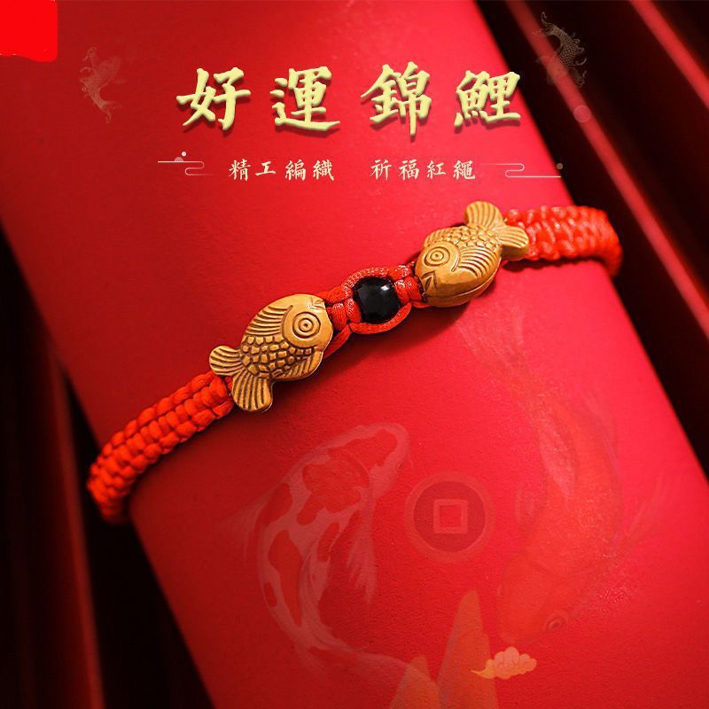 Браслет ручной работы с символом знака зодиака, с переплетением из персика и ореха, браслет из красной нити, популярный небольшой подарок на День лодок-драконов, узелковый браслет с карпом.
