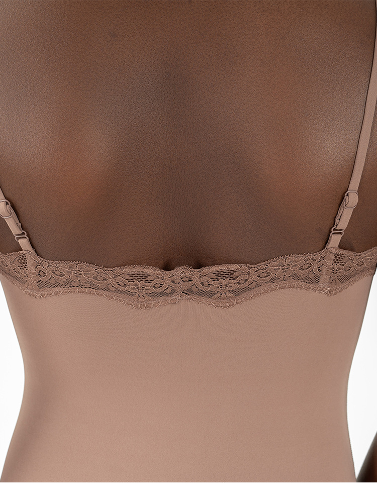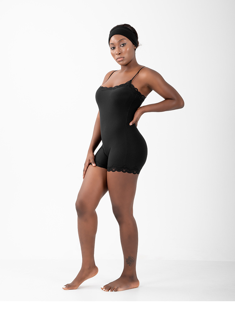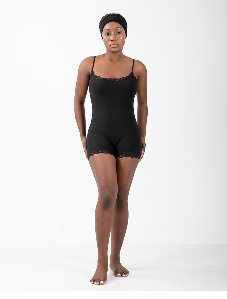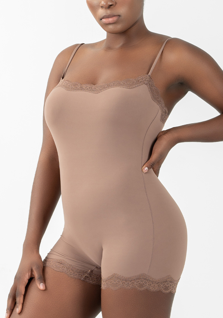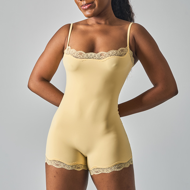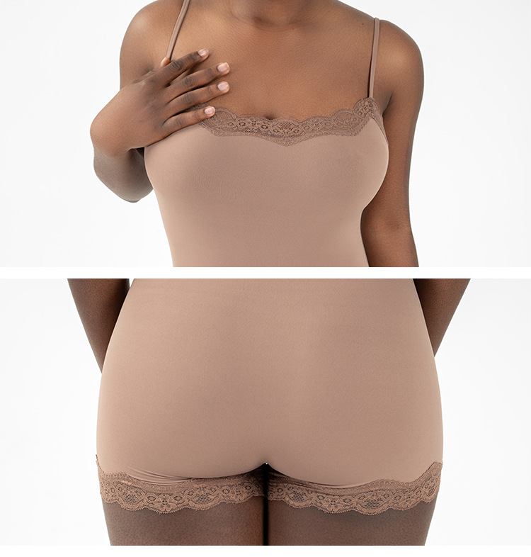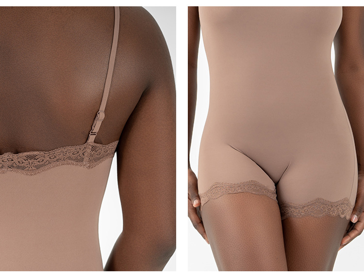 Европейское и американское кружевное боди для женщин, чистое и чувственное, приятное к коже, нижнее белье-комбинация, облегающее двухслойное корректирующее белье.
