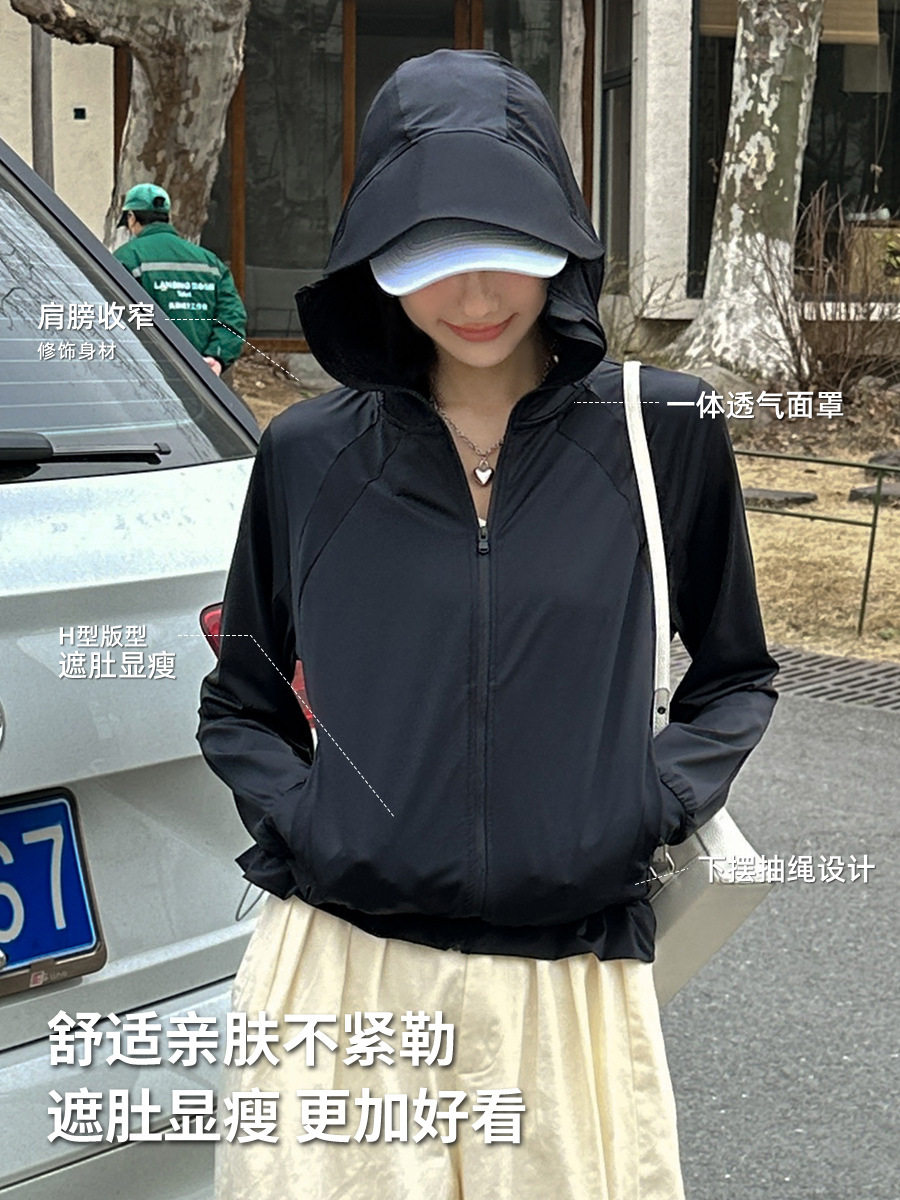 5018 Оригинальная женская солнцезащитная одежда для активного отдыха, новая легкая портативная куртка с защитой от УФ-излучения и эффектом ледяного прикосновения, с большим козырьком и черным покрытием