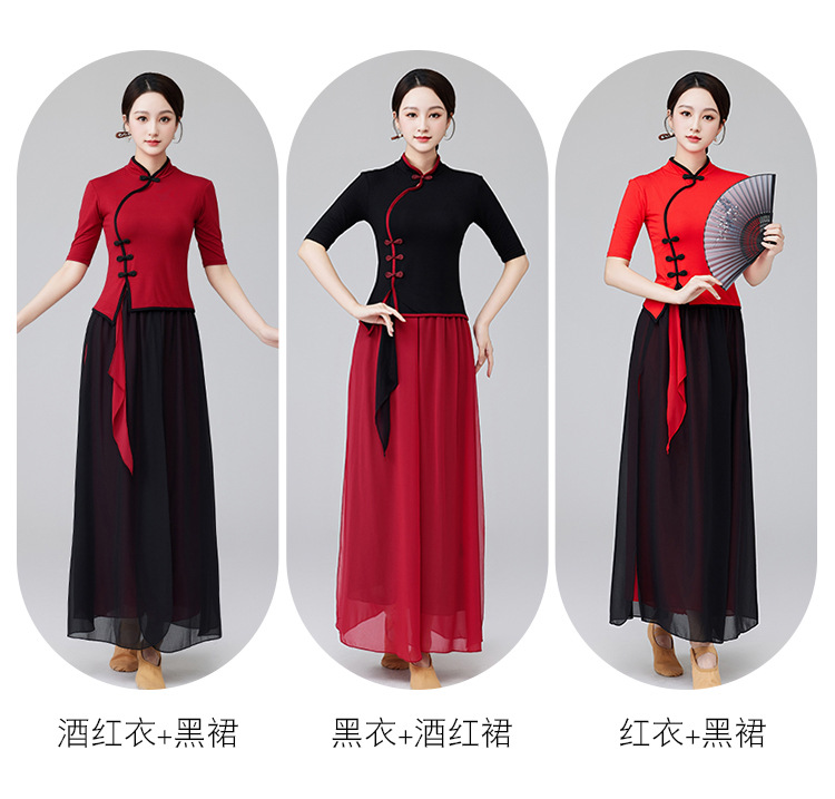 Квадратная танцевальная одежда новый костюм Китайский классический этнический танец веер Практика одежда Женская марля элегантный Чонсам 2402