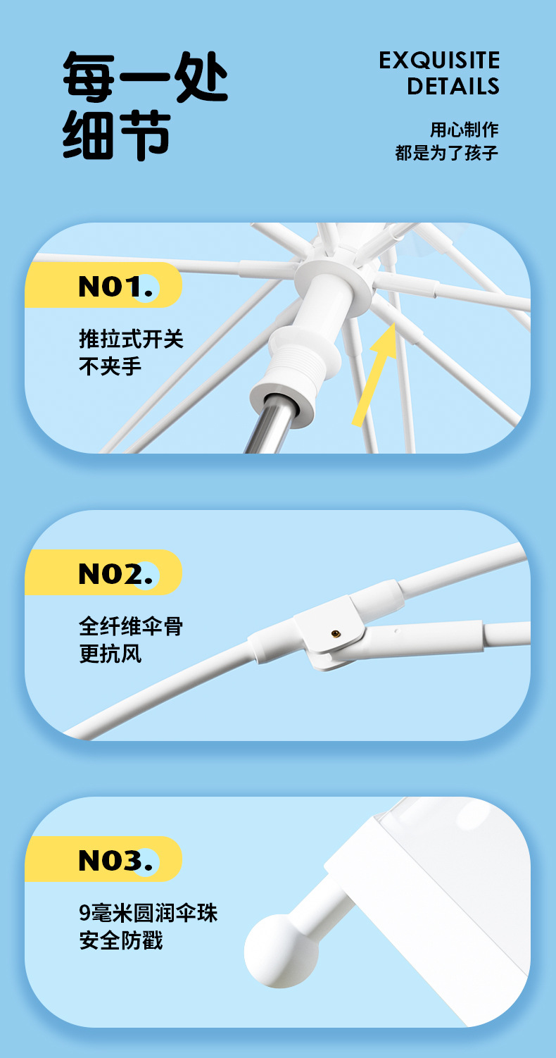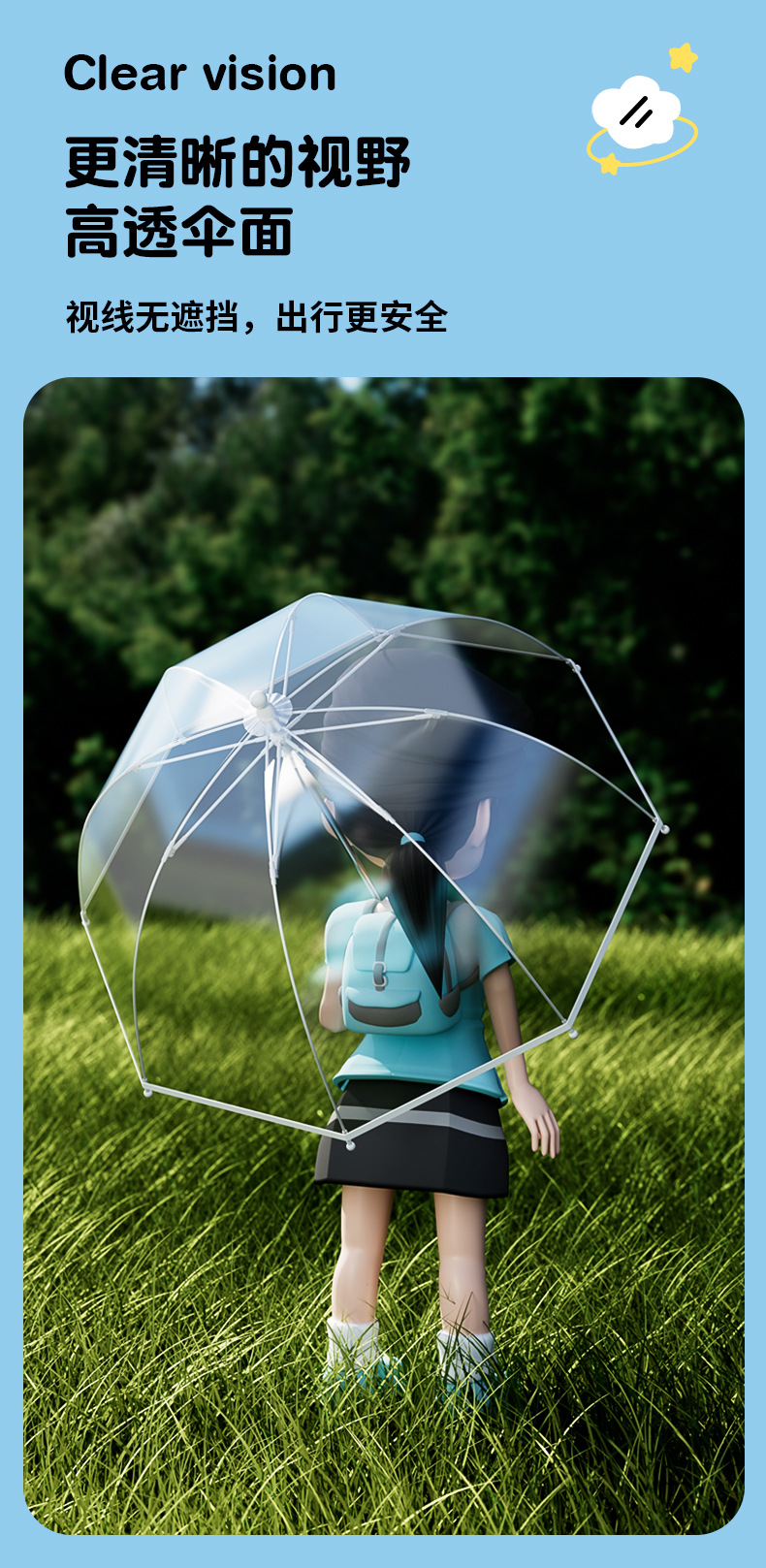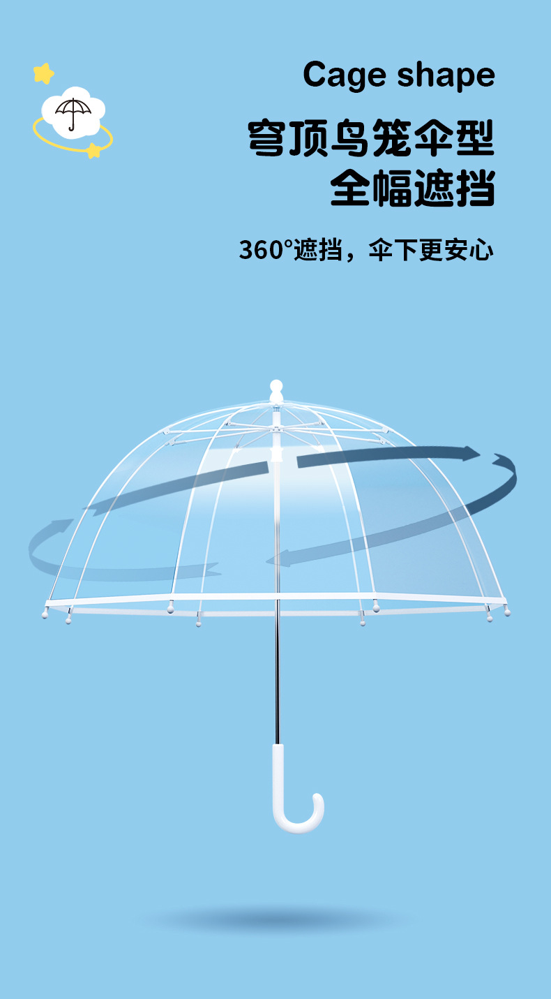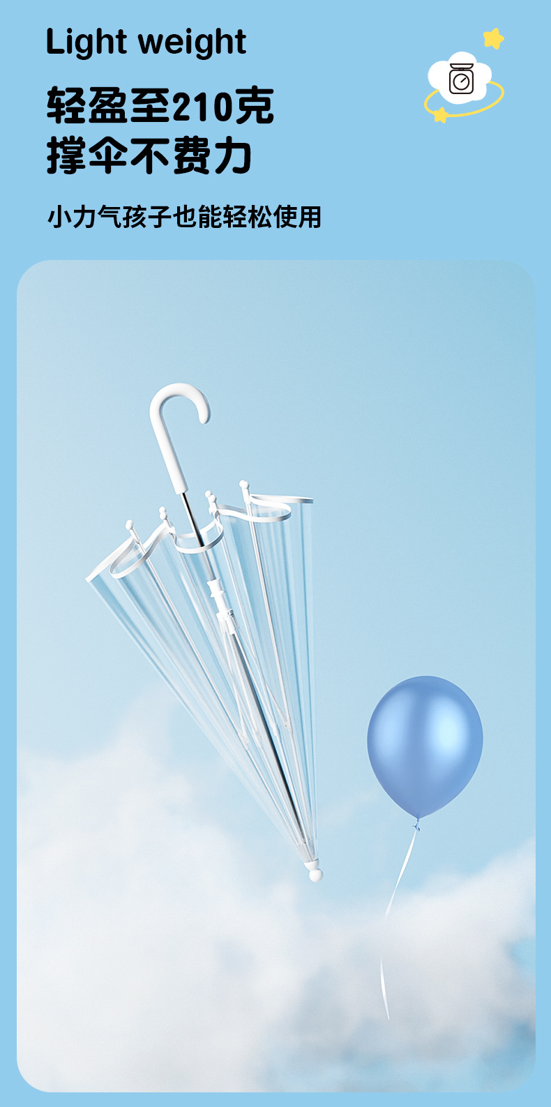 Детский Зонт Сверхлегкий прозрачный мальчик и девочка ученик начальной школы с длинной ручкой с защитой от защемление руки свежий небольшой размер безопасный прозрачный зонт