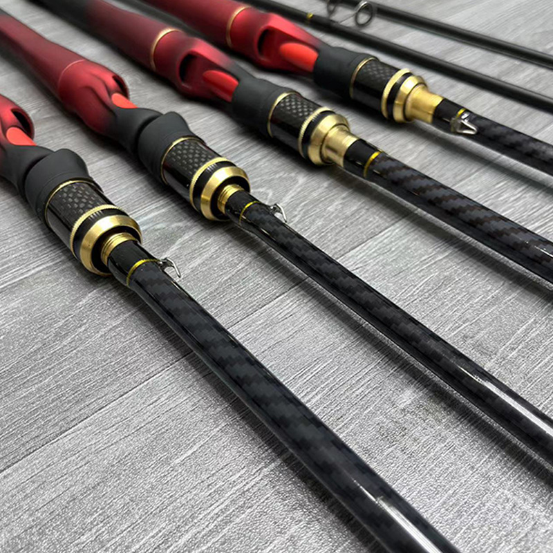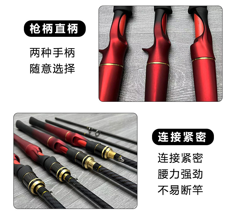 Готовый к отправке от производителя ультралегкий портативный жесткий удилище с прямой ручкой для ловли на приманку, длина 1,65м/1,8м/2,1м, красный цвет, цельнолитой корпус.