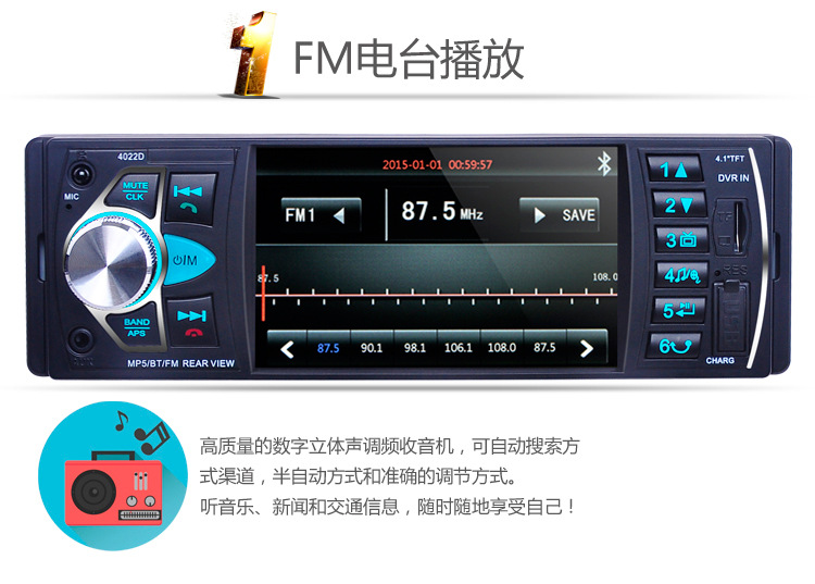 4,1-дюймовый емкостный экран автомобиля с одним слитком MP5 Bluetooth плеер радио Bluetooth реверсивный приоритет 4022D