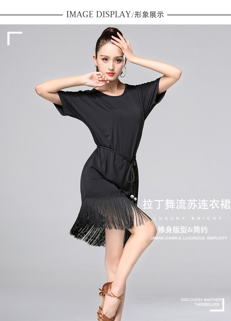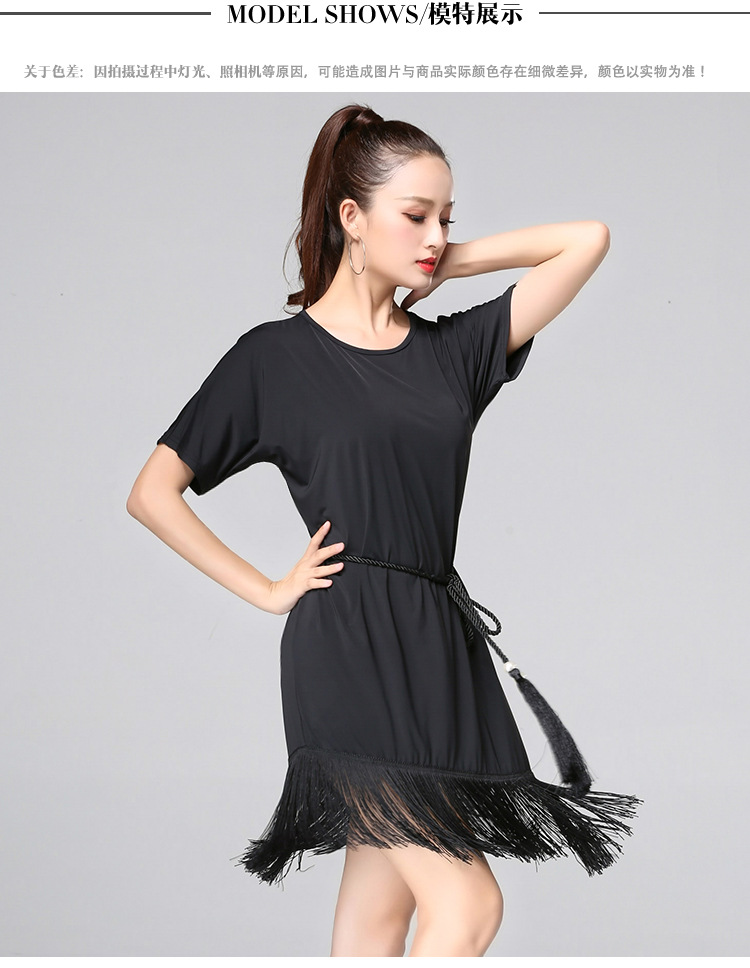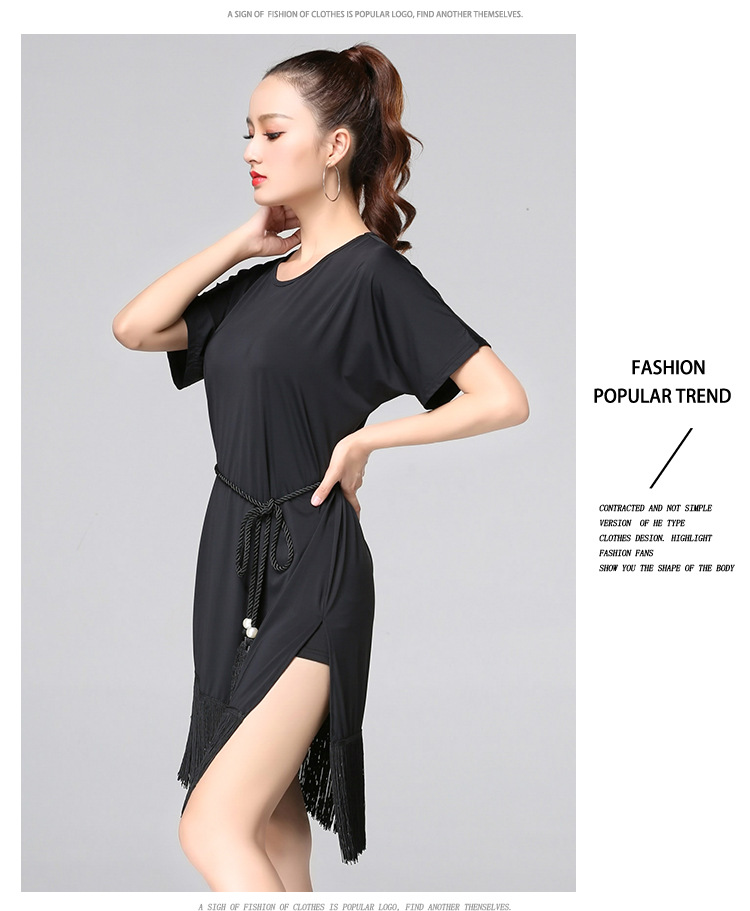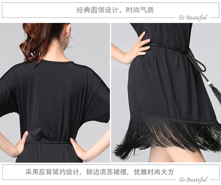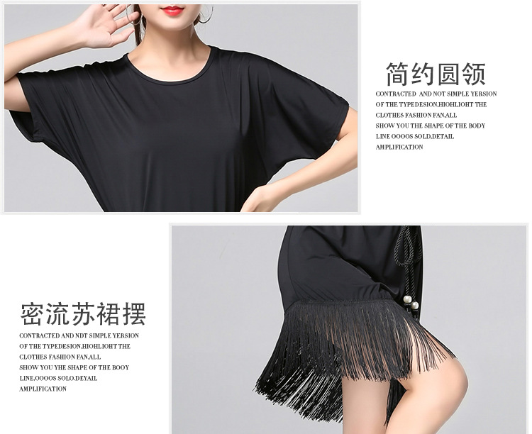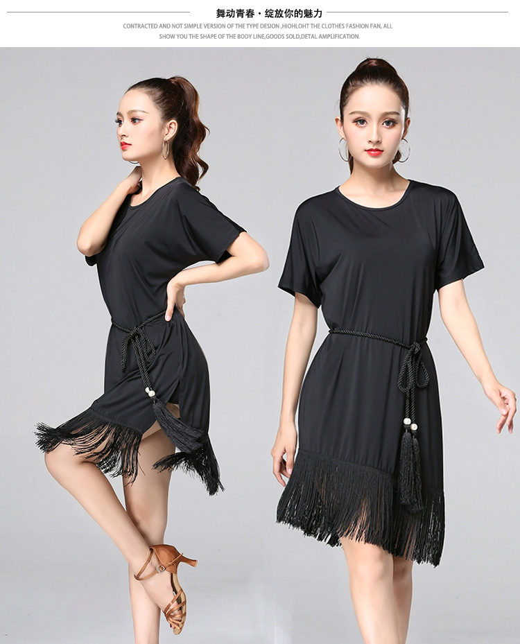 Высококачественная одежда для латинских танцев, Женская взрослая черная одежда для тренировок в бассейне, летнее свободное платье, профессиональная одежда для тренировок с кисточками