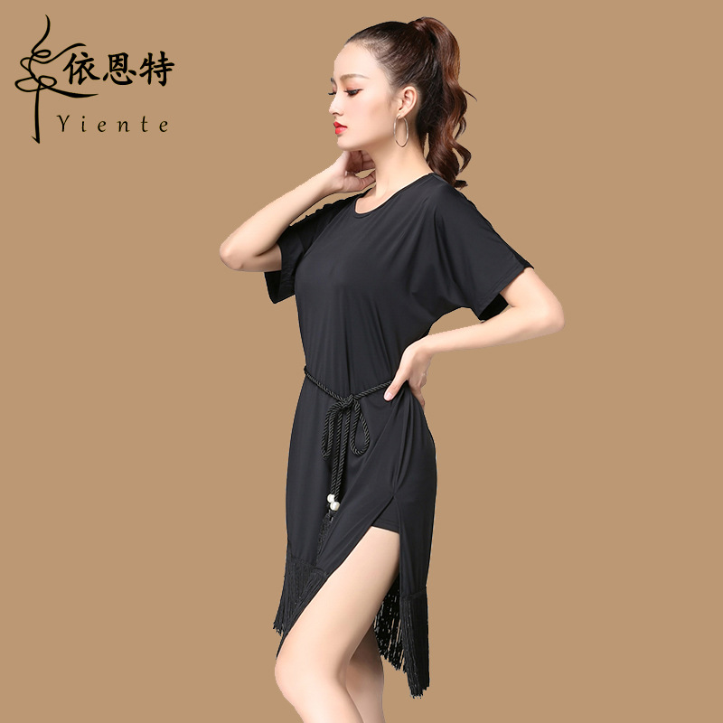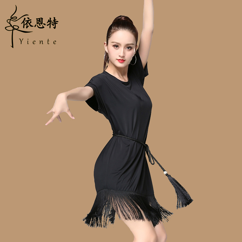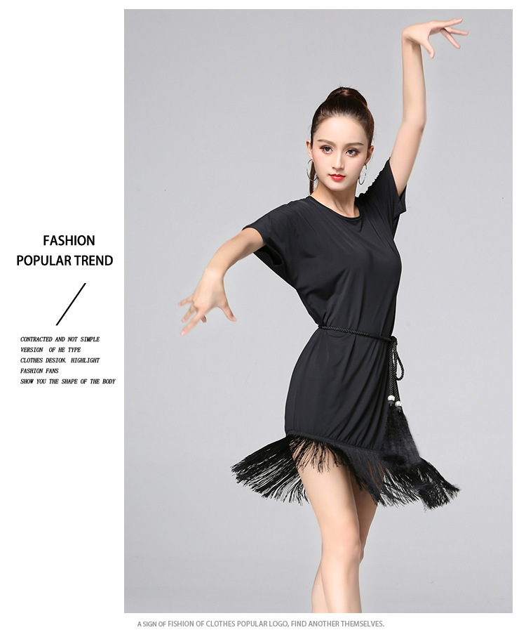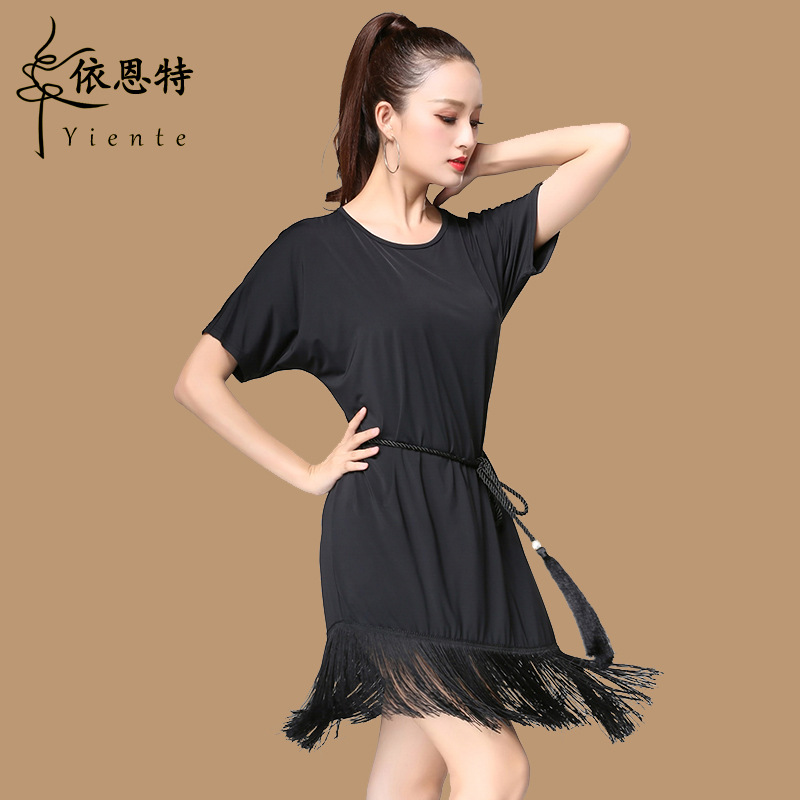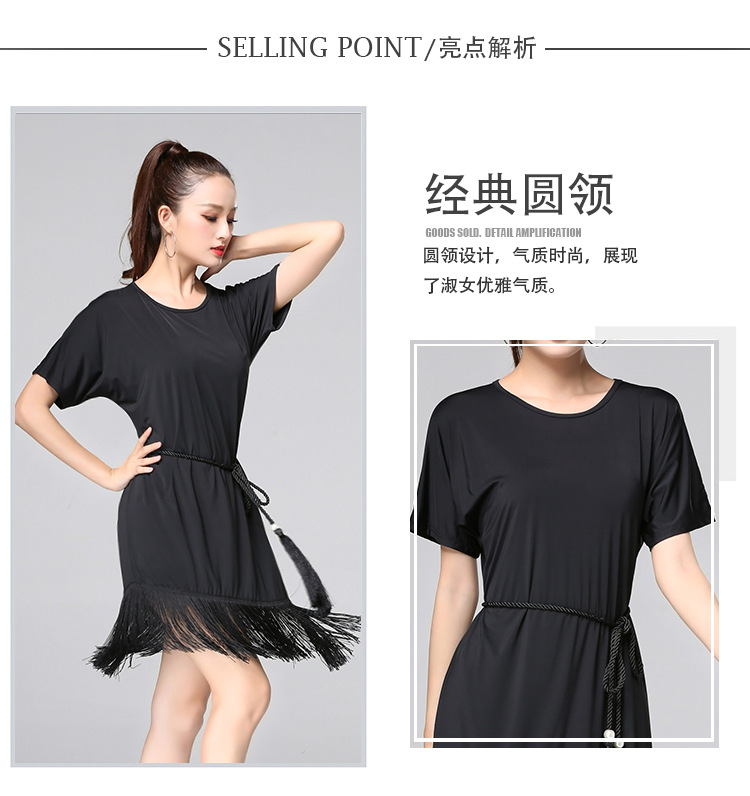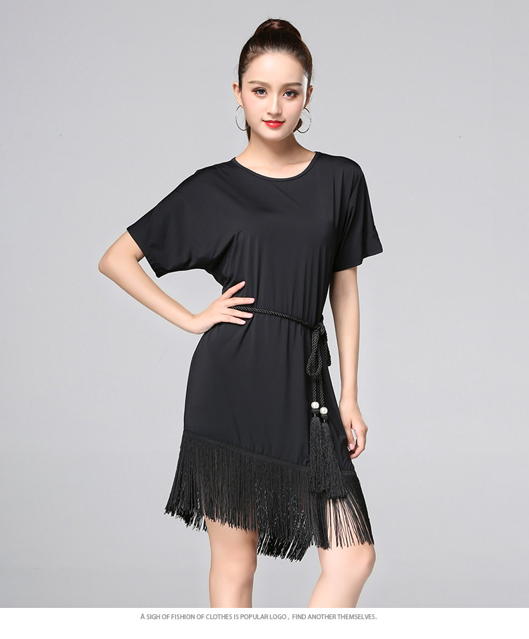 Высококачественная одежда для латинских танцев, Женская взрослая черная одежда для тренировок в бассейне, летнее свободное платье, профессиональная одежда для тренировок с кисточками