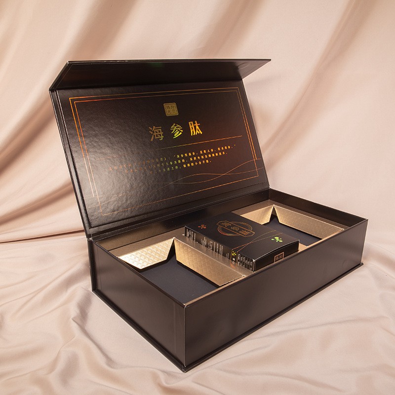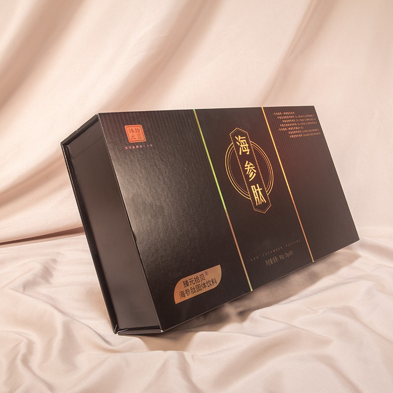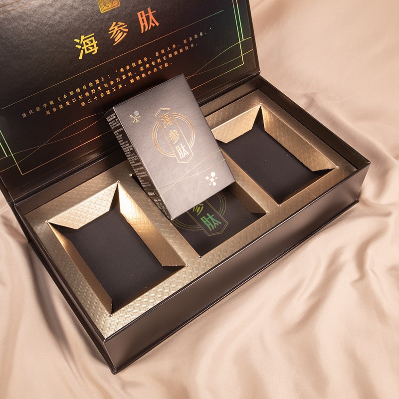 Подарочный набор из трех коробок для пищевых добавок с пептидами морского огурца от производителя упаковки из Ханчжоу, коробка с откидной крышкой, черная с золотым тиснением