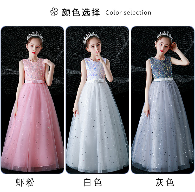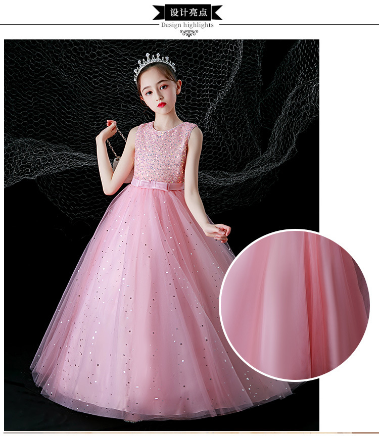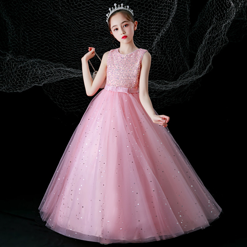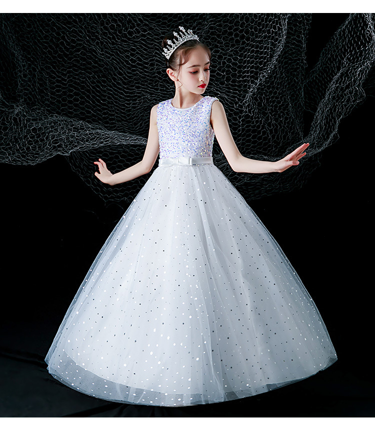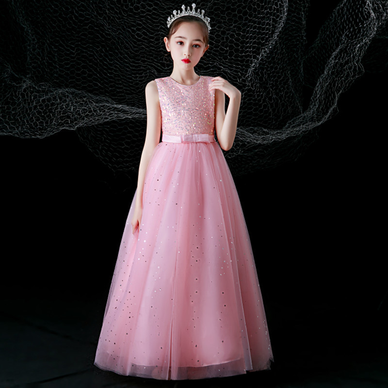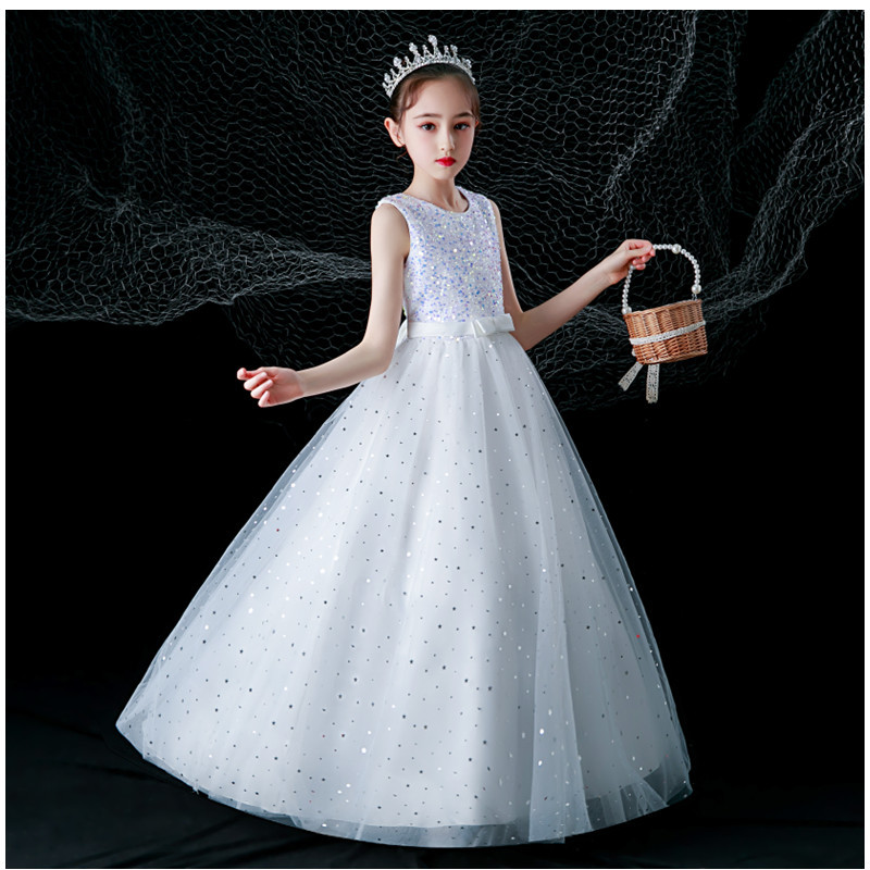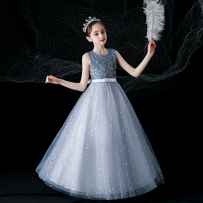 Платье принцессы для детей среднего и большого возраста, Новое Детское свадебное платье, платье для выступлений на фортепиано для девочек-цветочниц, пушистое Марлевое Платье