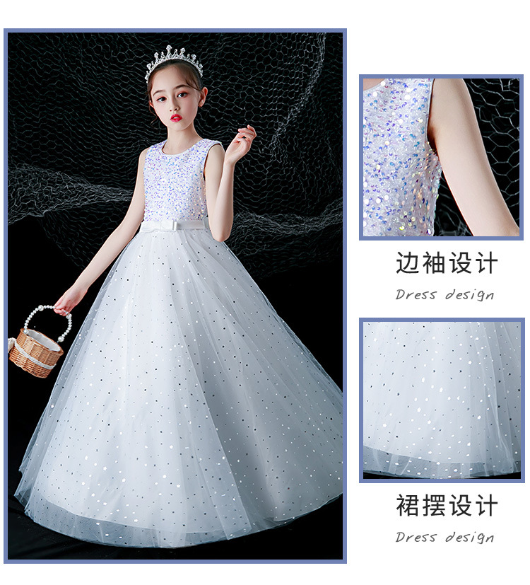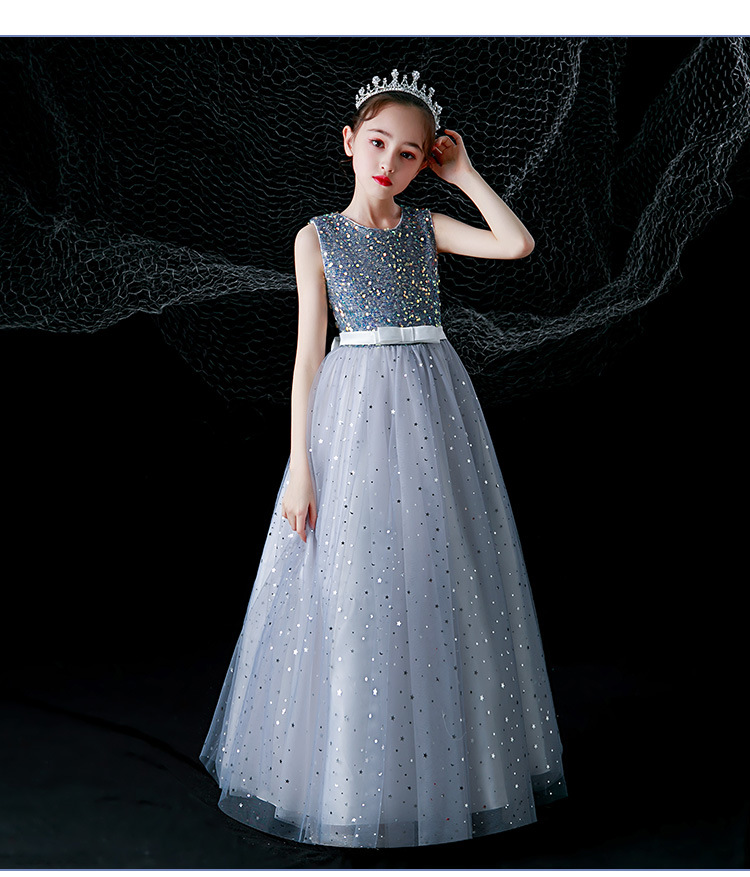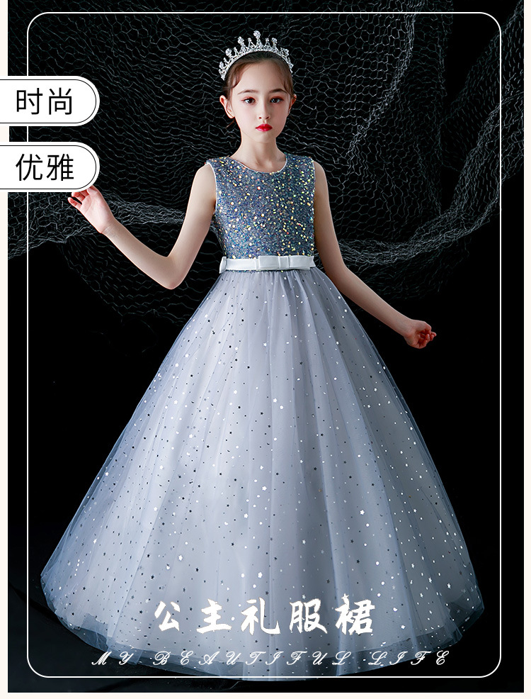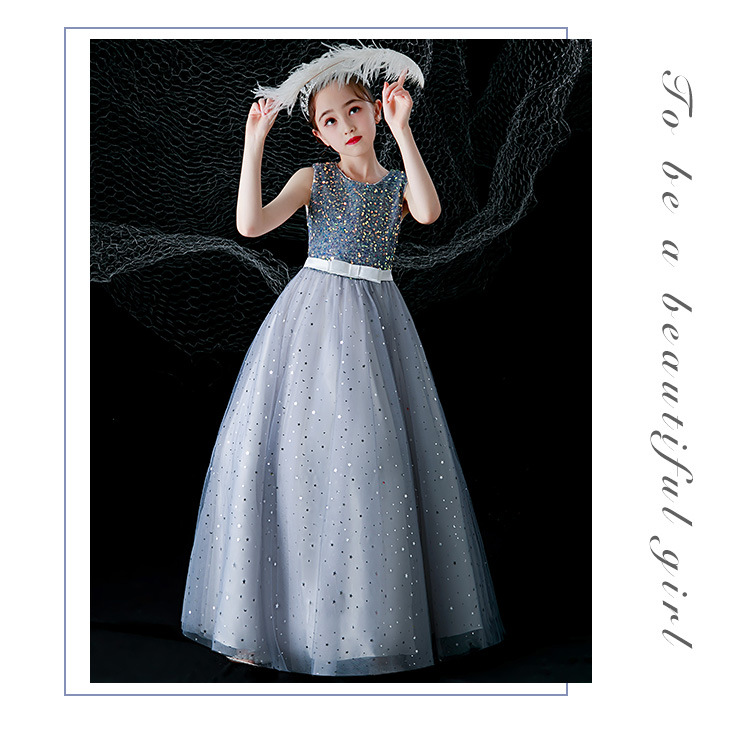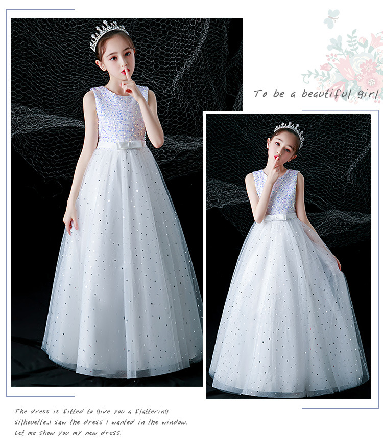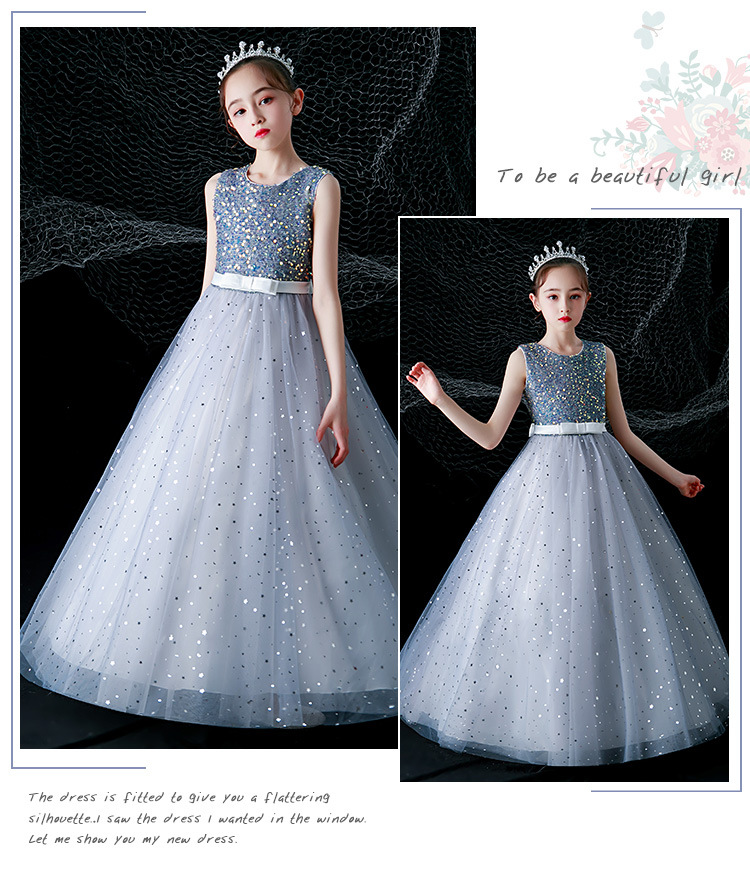 Платье принцессы для детей среднего и большого возраста, Новое Детское свадебное платье, платье для выступлений на фортепиано для девочек-цветочниц, пушистое Марлевое Платье