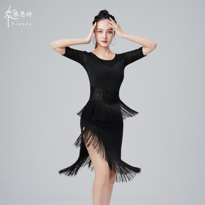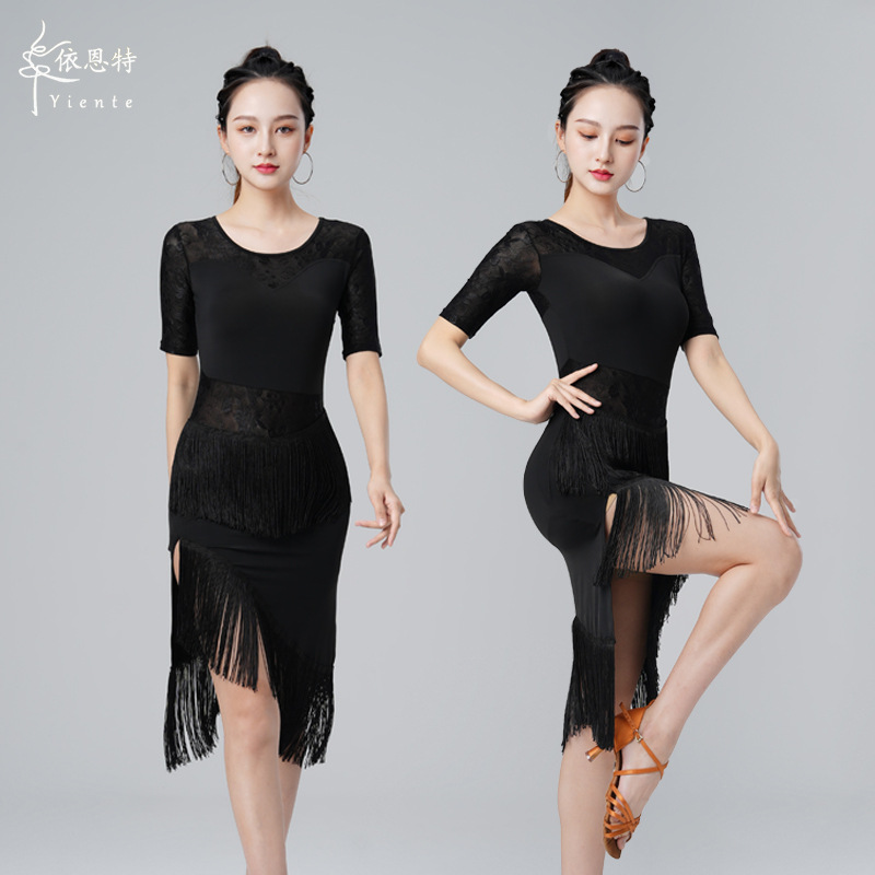 Платье с юбкой для латинских танцев, сексуальная взрослая женская летняя новая одежда для выступлений, художественный экзамен, тренировочная одежда для румбы, одежда для соревнований