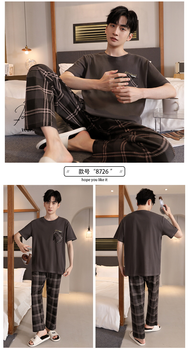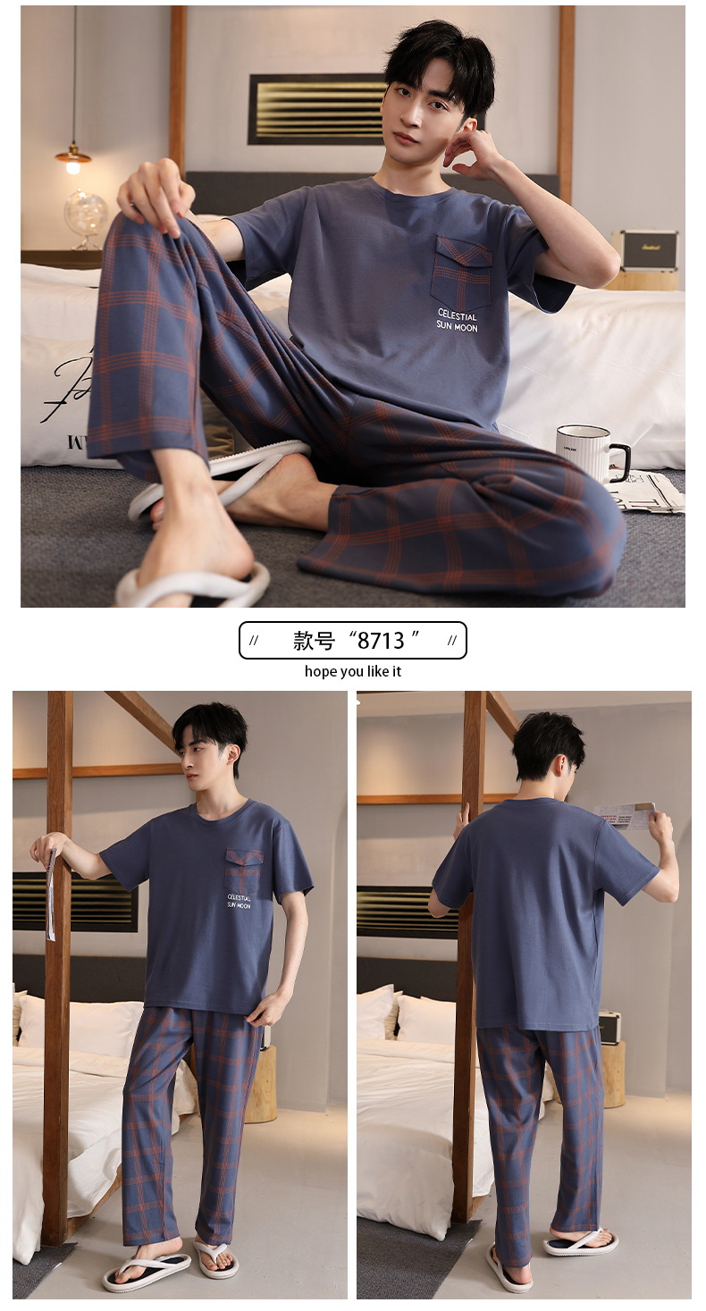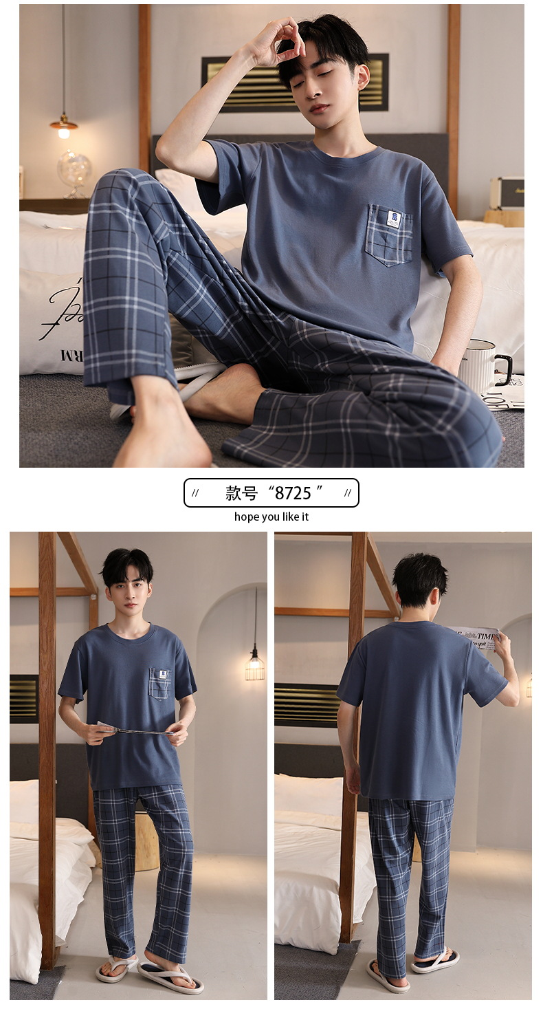 Пижама мужской летний хлопок тонкий рукав с короткими рукавами на улице