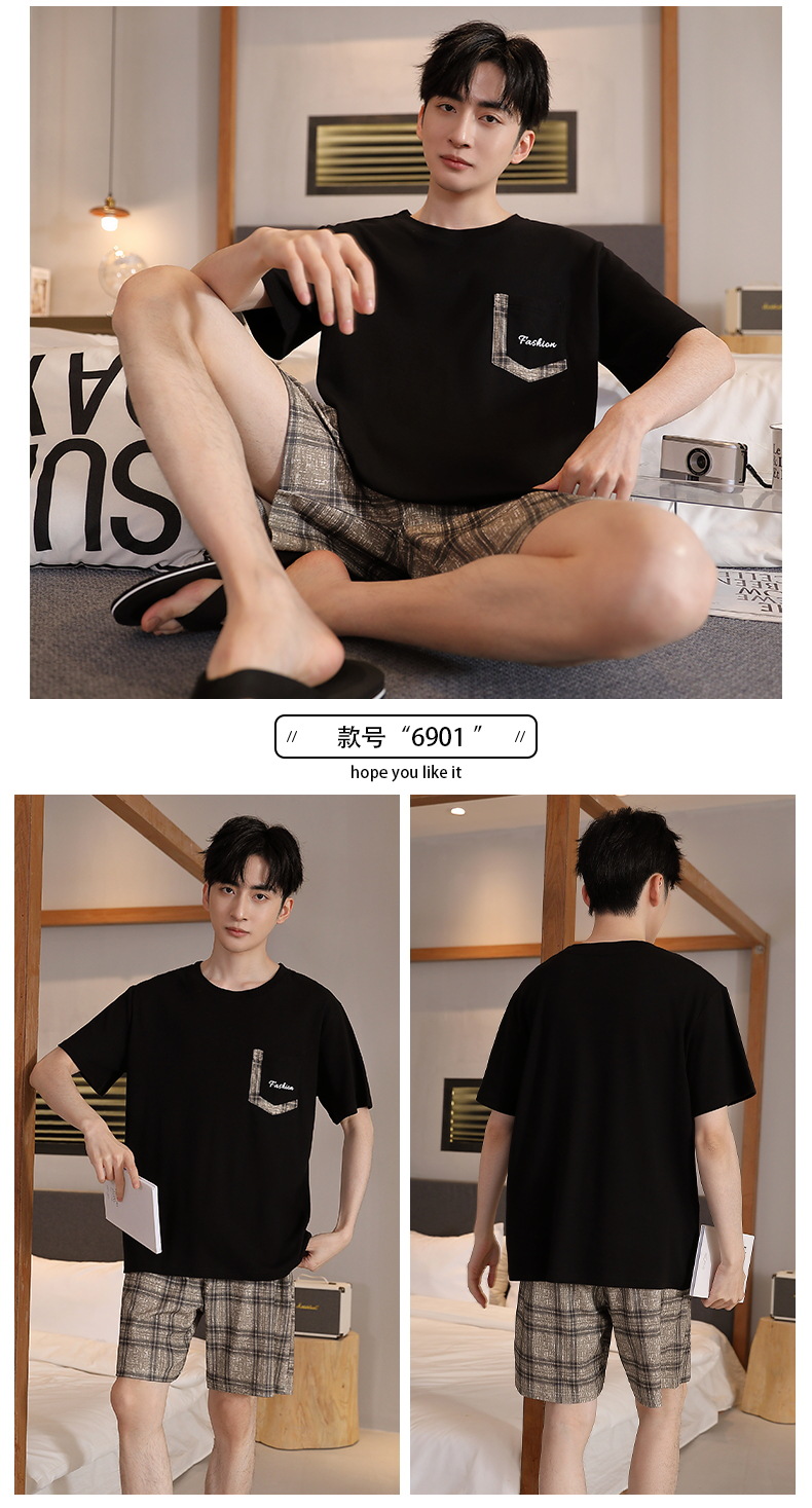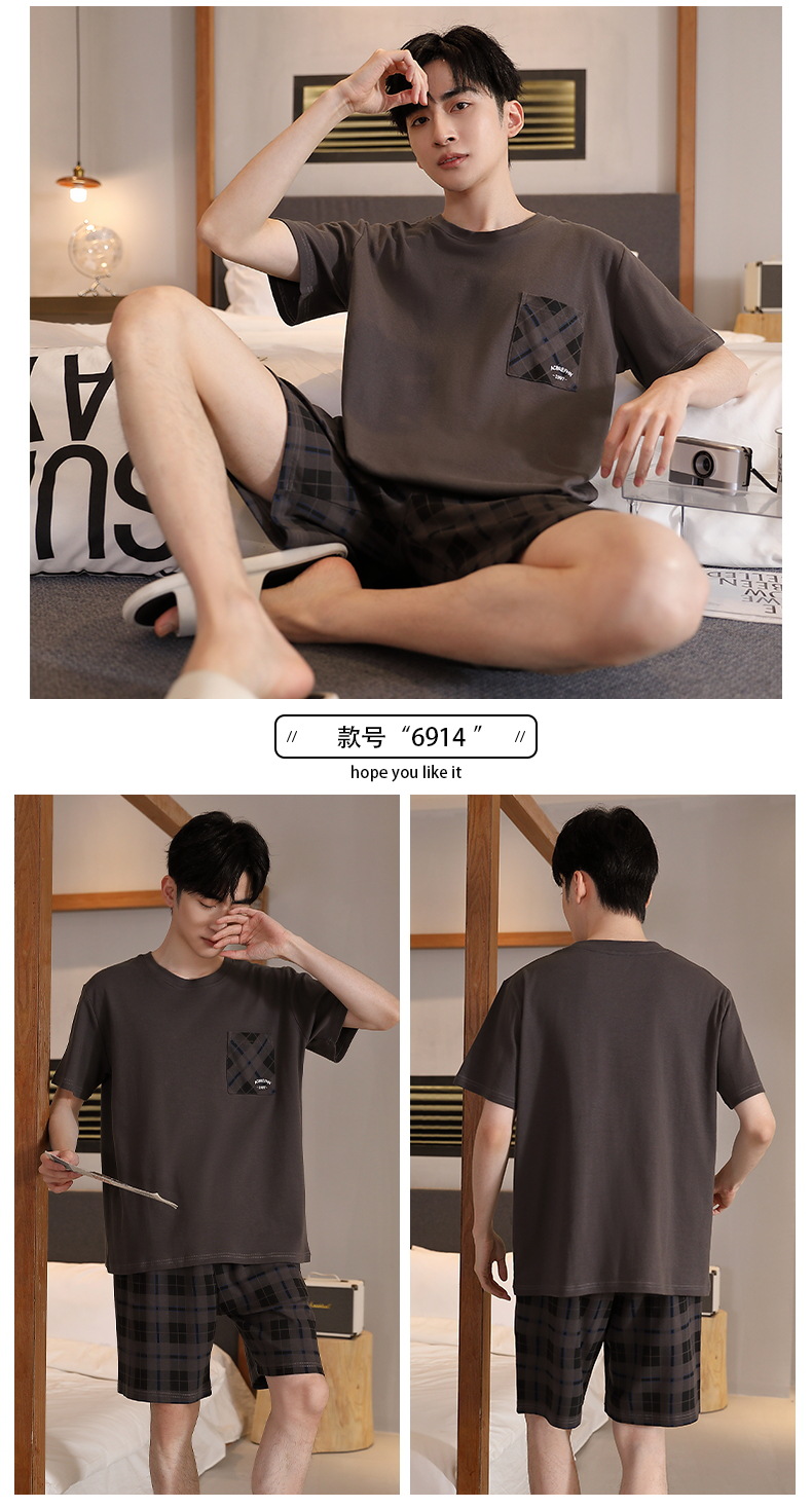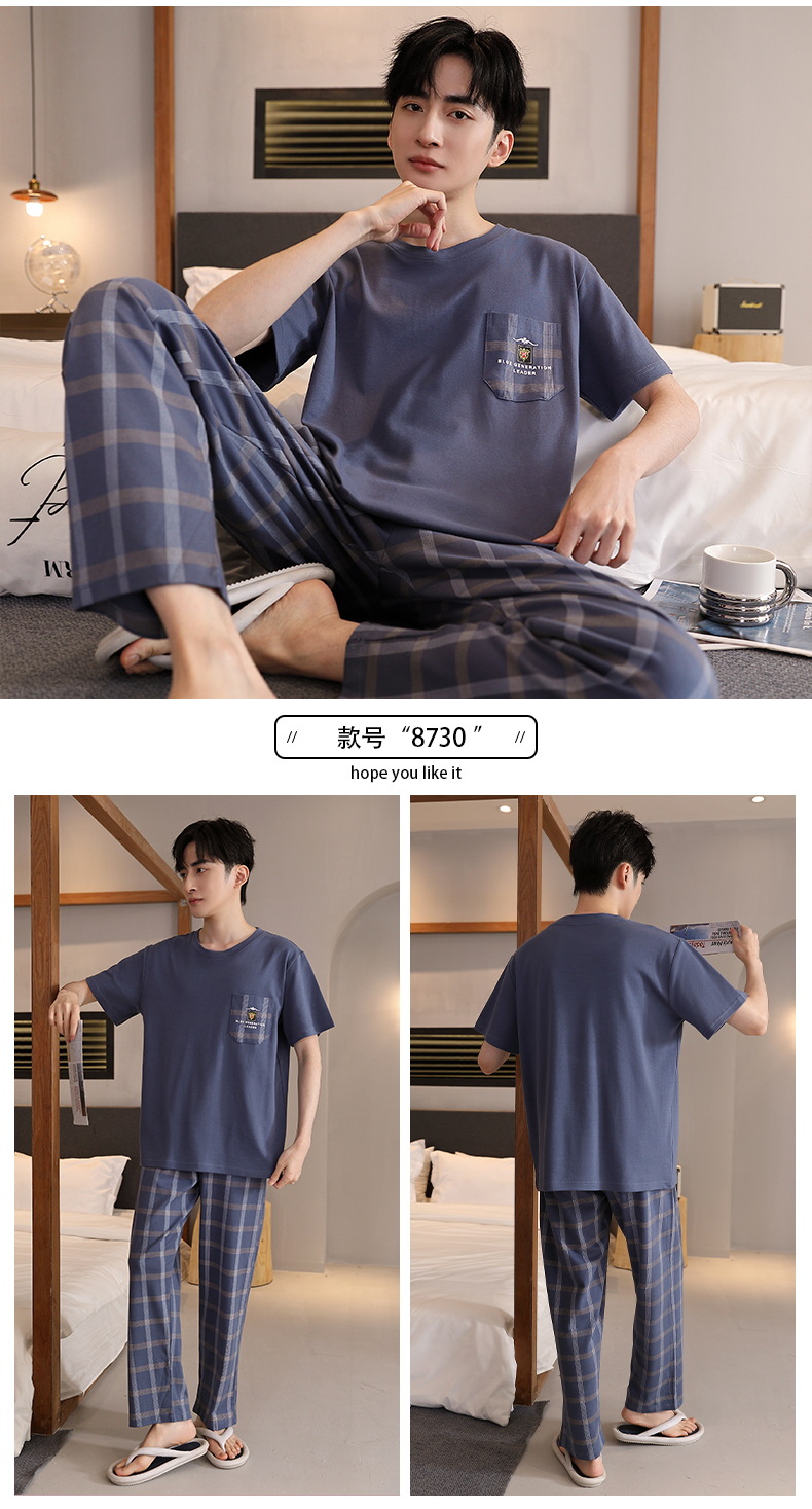 Пижама мужской летний хлопок тонкий рукав с короткими рукавами на улице