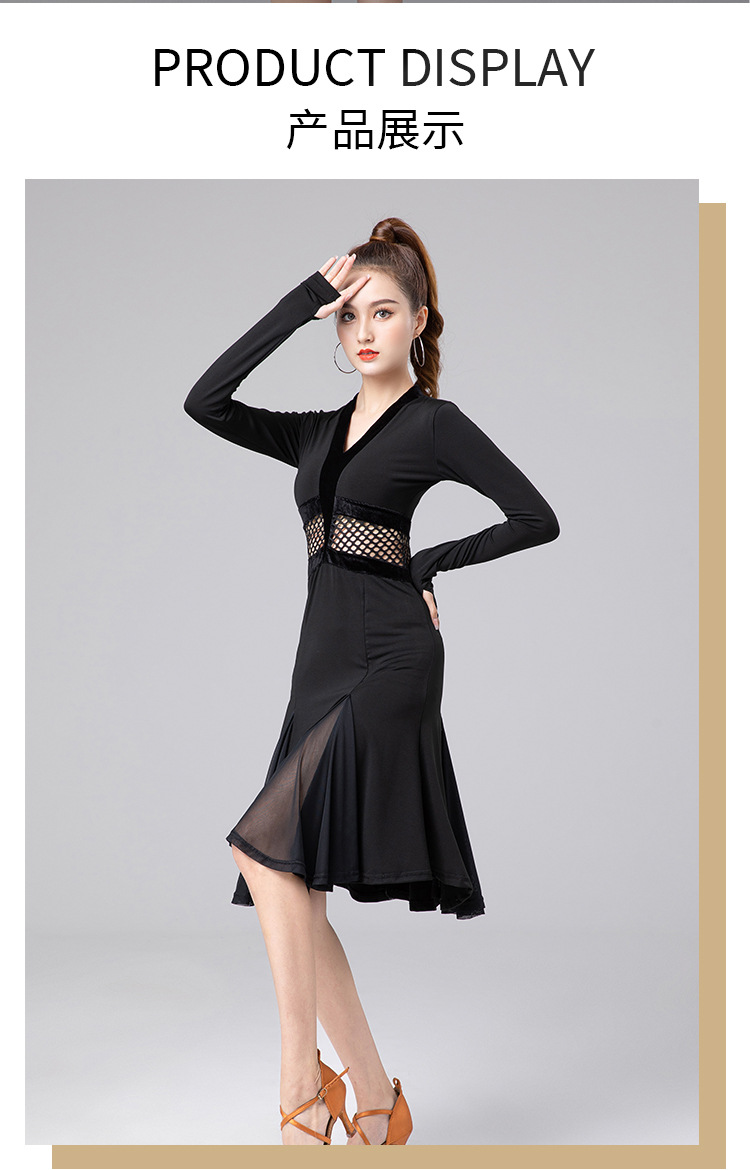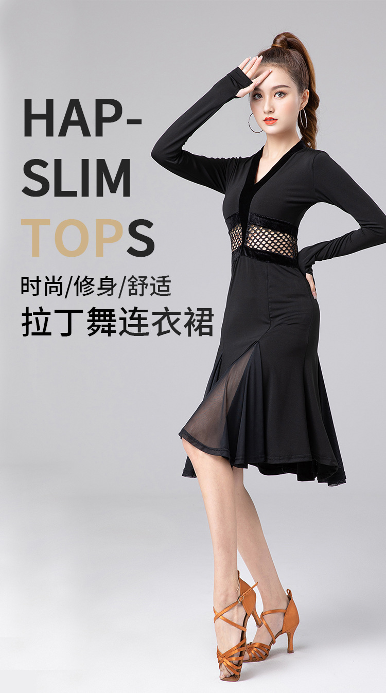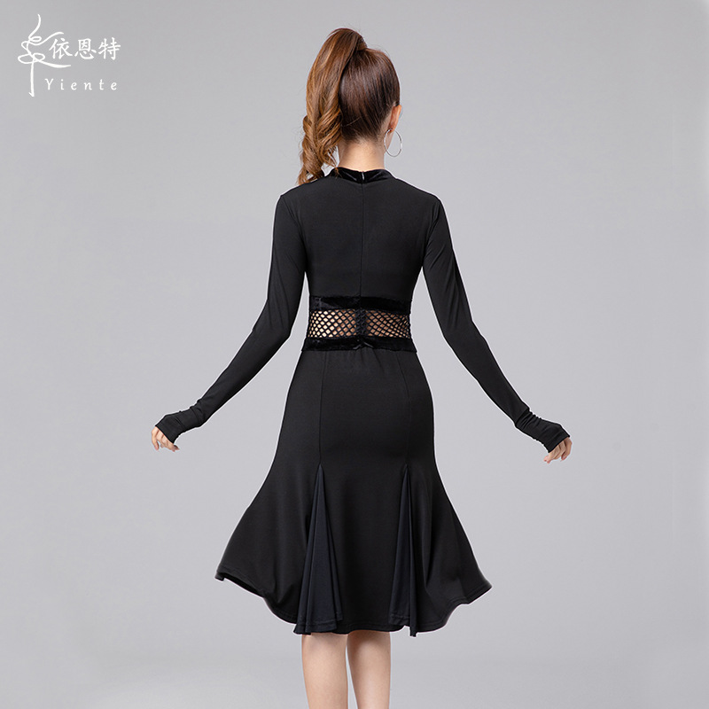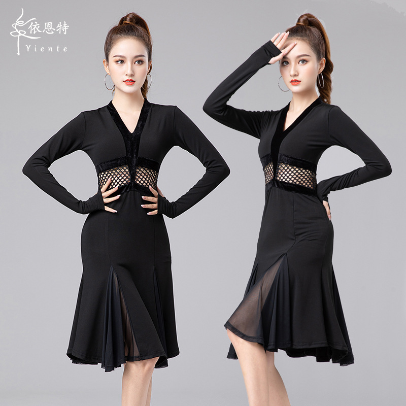 Одежда для латиноамериканских танцев для взрослых женщин, новинка 2025 года, платье с длинным рукавом, элитная одежда для выступлений, одежда для художественных экзаменов, тренировочная одежда, профессиональная одежда для соревнований