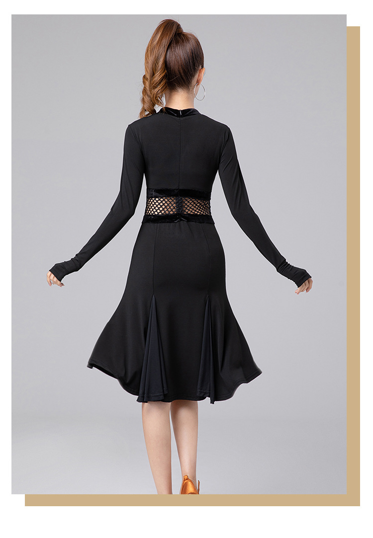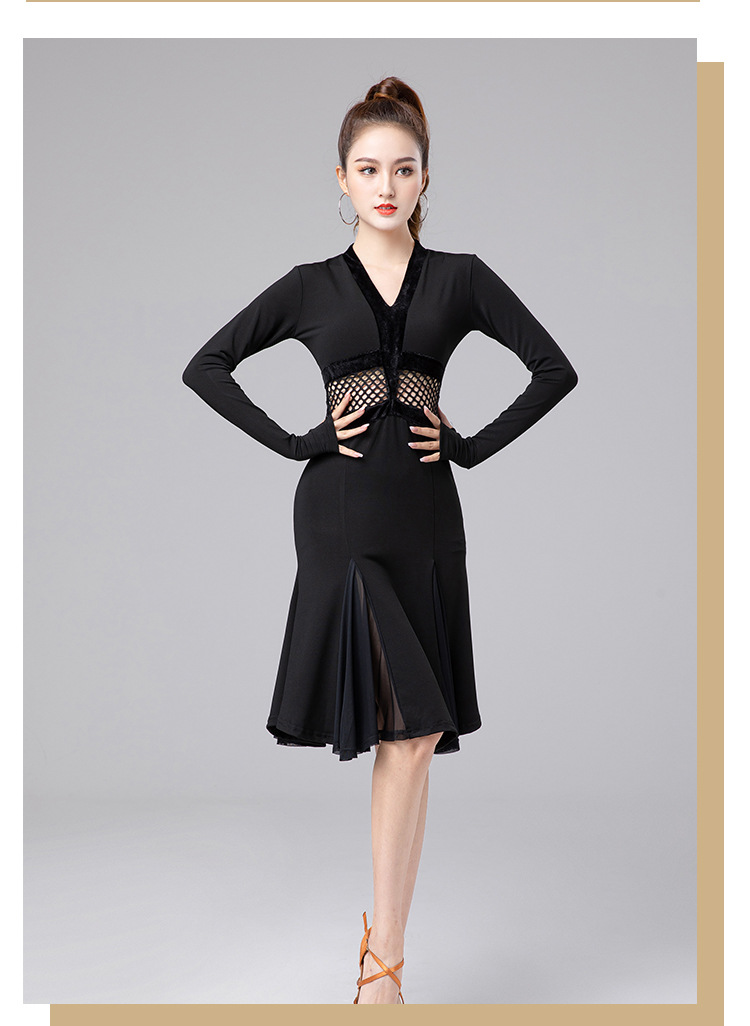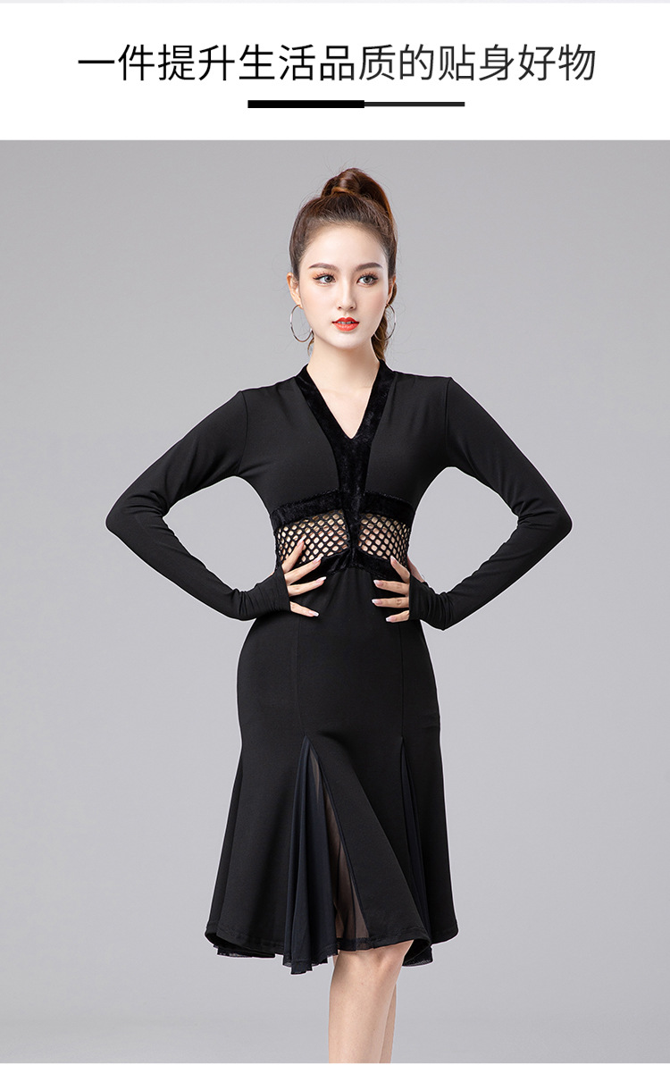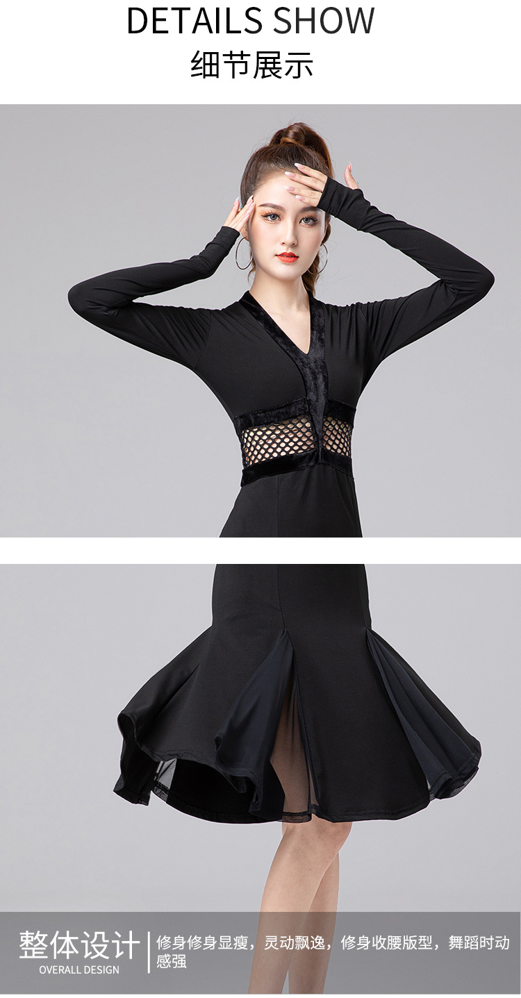 Одежда для латиноамериканских танцев для взрослых женщин, новинка 2025 года, платье с длинным рукавом, элитная одежда для выступлений, одежда для художественных экзаменов, тренировочная одежда, профессиональная одежда для соревнований