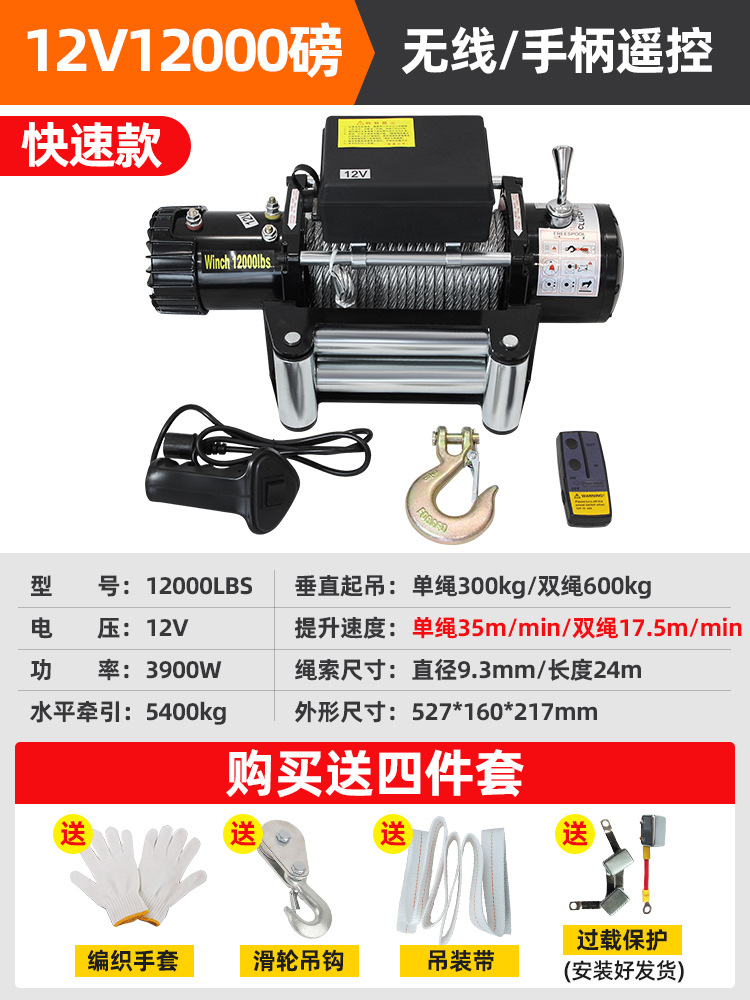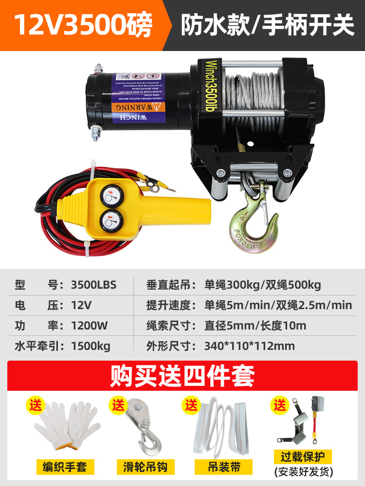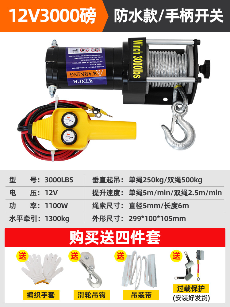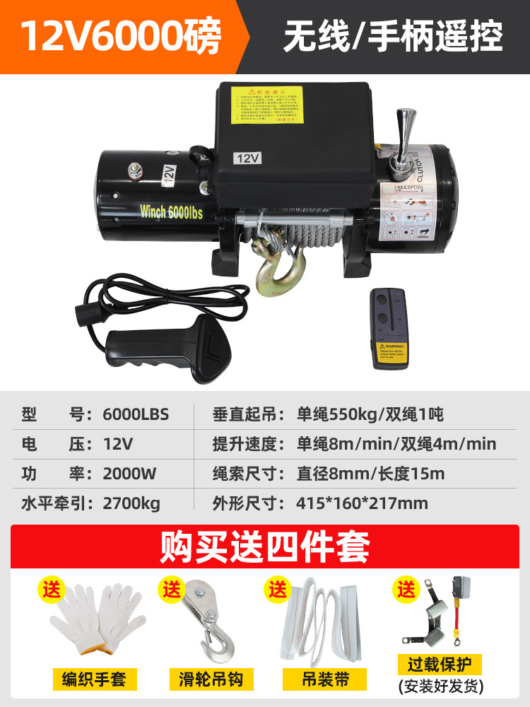 Электрическая лебедка для внедорожного автомобиля, тяговая лебедка для самоспасения, электрическая лебедка с подъемником, небольшой кран, бытовая лебедка