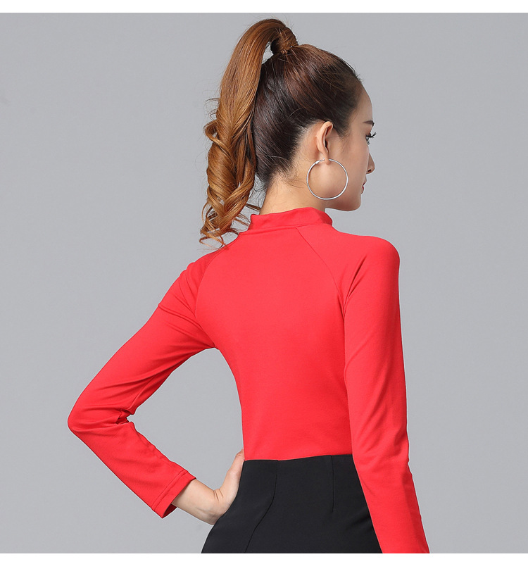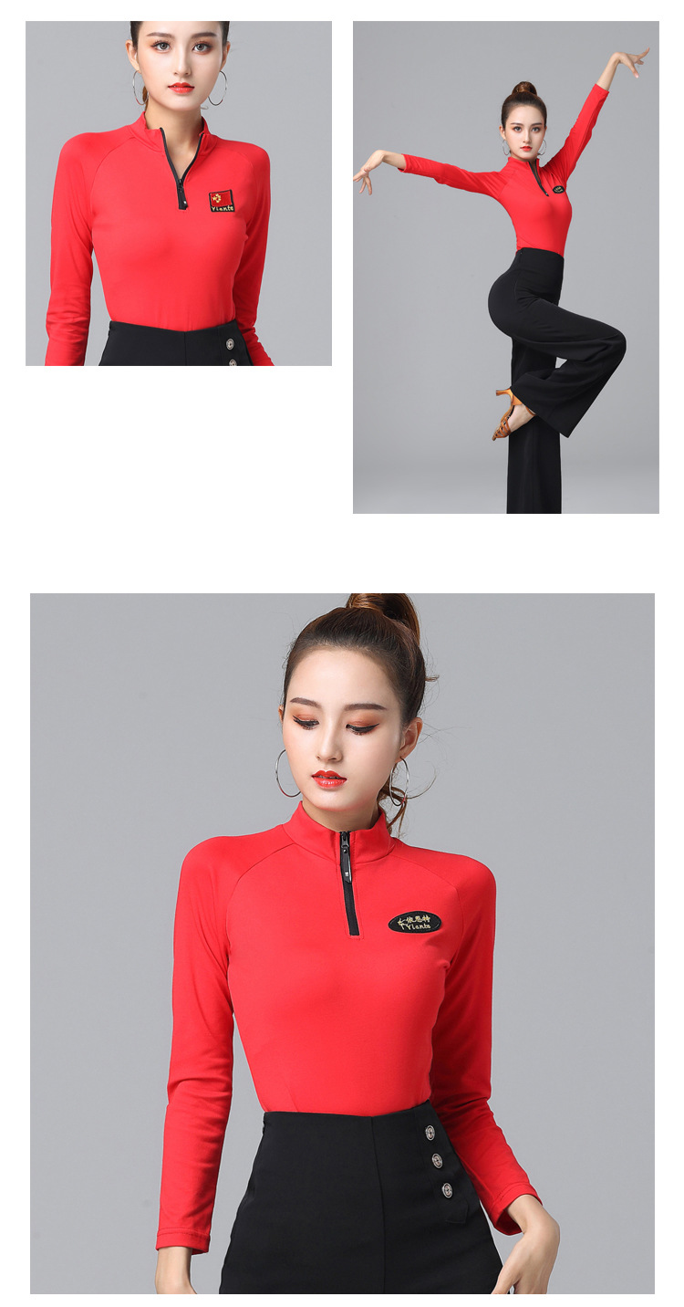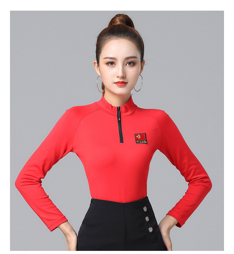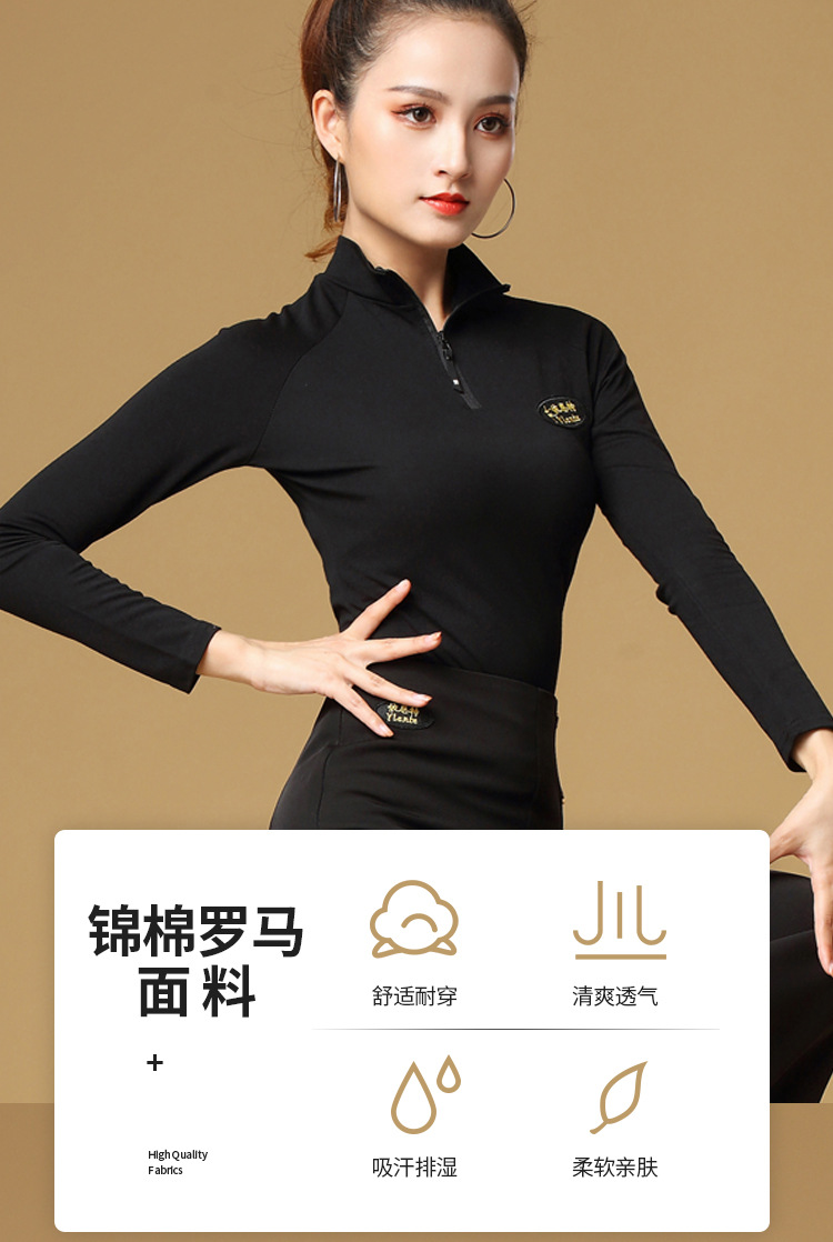 Топ для латинских танцев Женский взрослый с длинными рукавами осенне-зимняя танцевальная одежда на флисовой подкладке танцевальная одежда профессиональная национальная стандартная танцевальная одежда для занятий современным танцем
