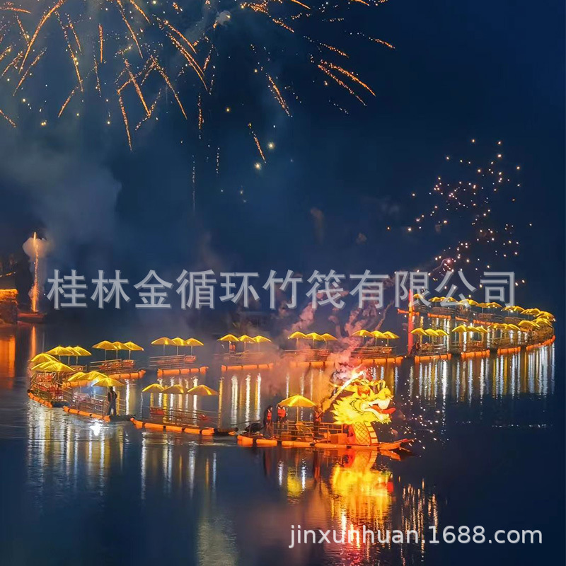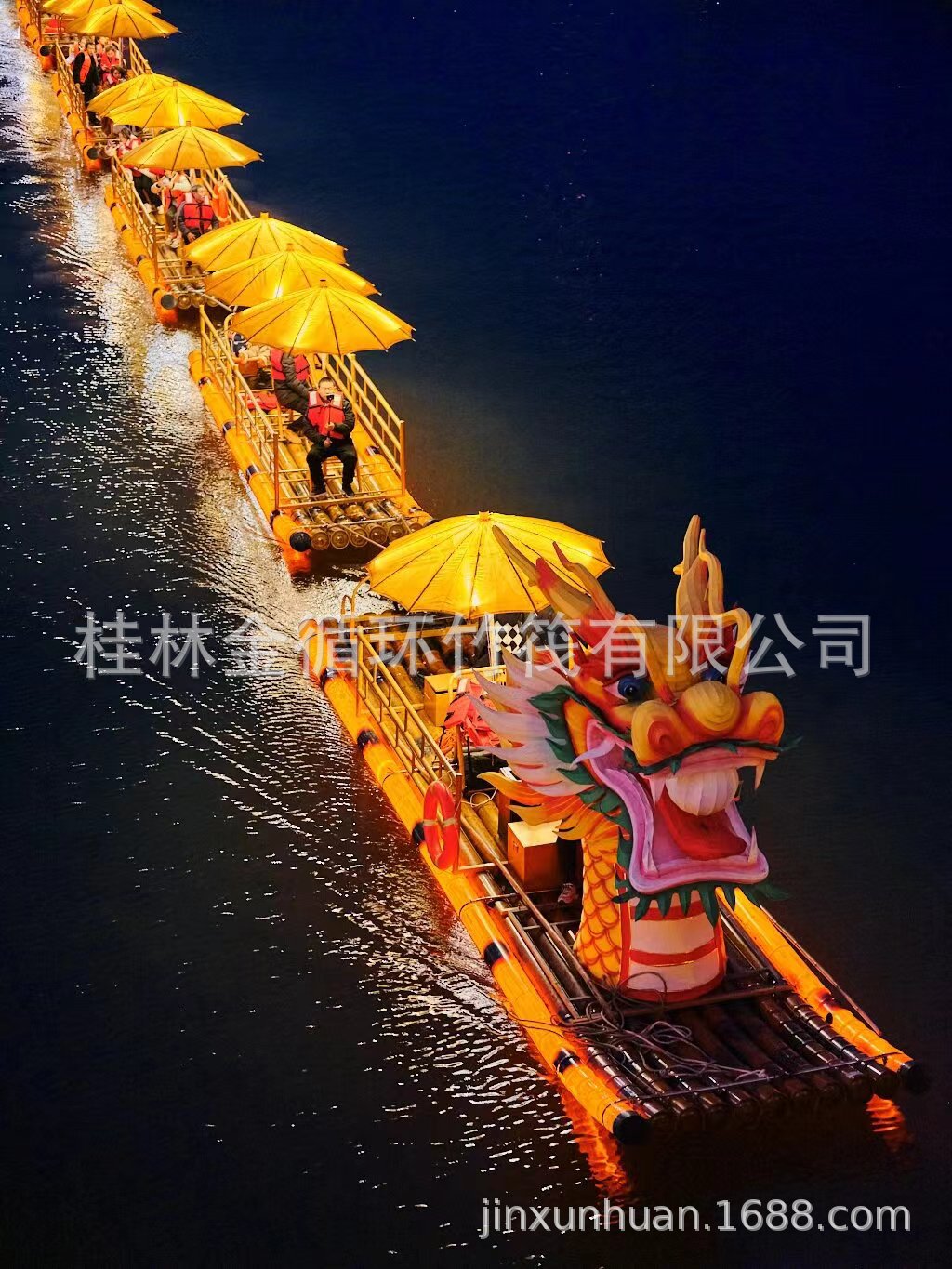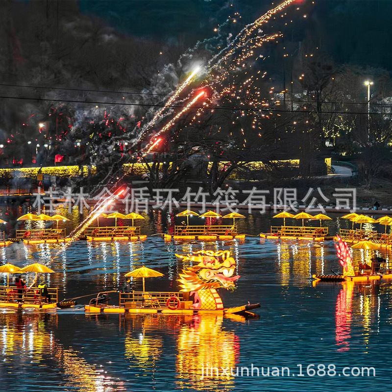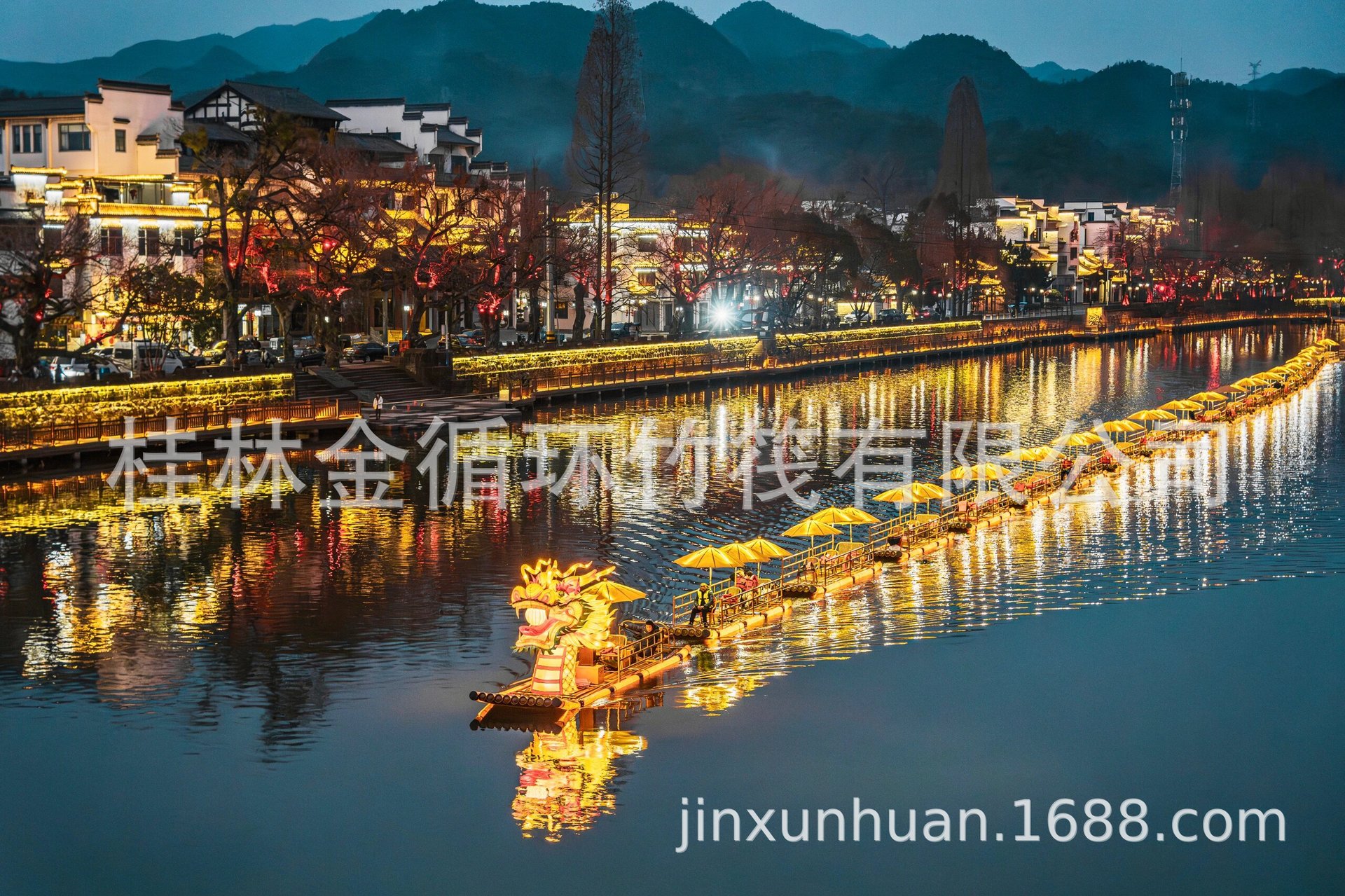Qiyunshan Dragon Parade Scenic Spot Performance Лодка-дракон Золотой дракон Тур Река Отображение Бамбуковый плот ПВХ Бамбуковый плот Рядный плот