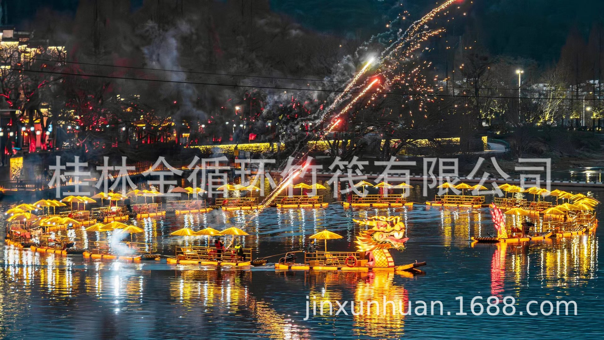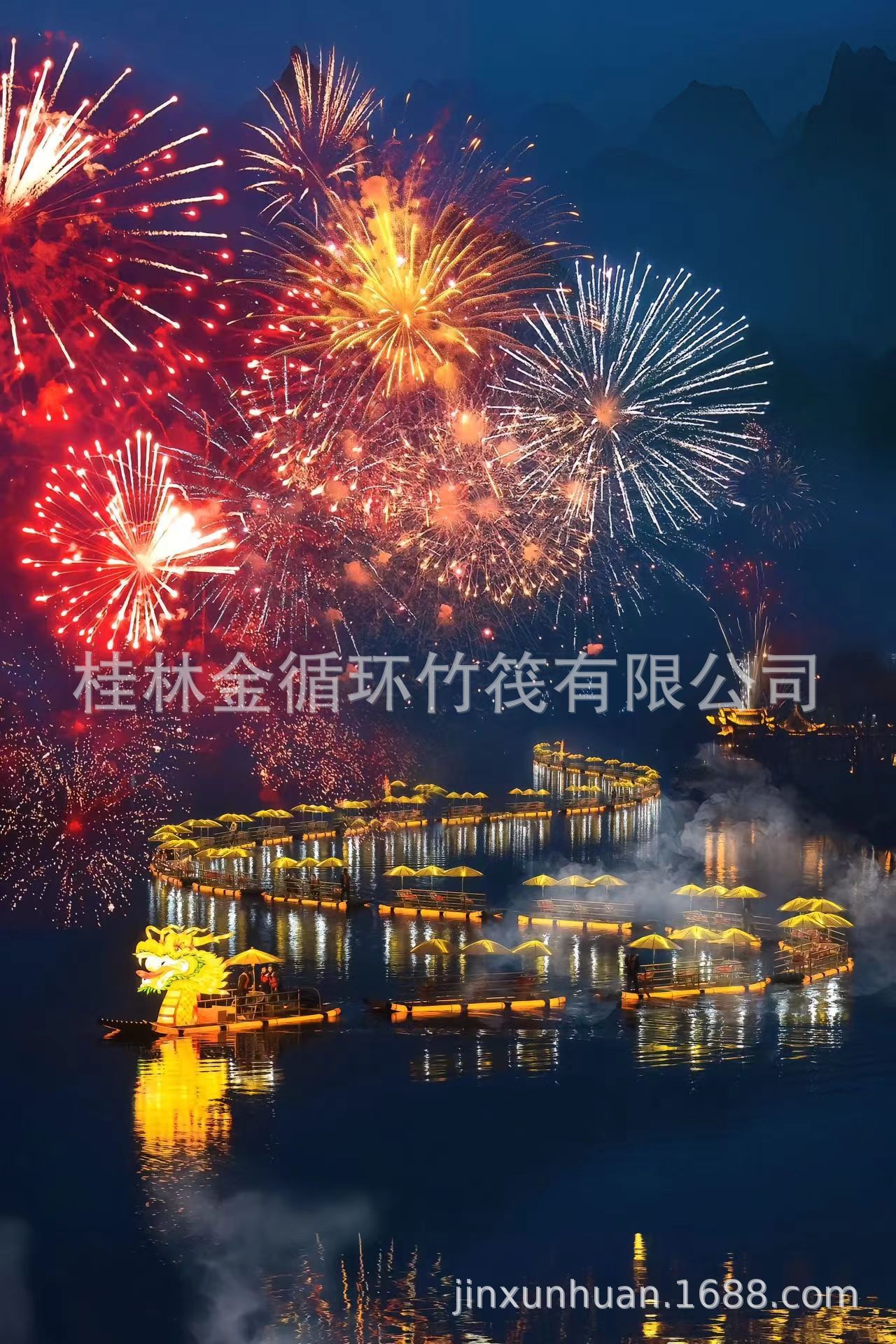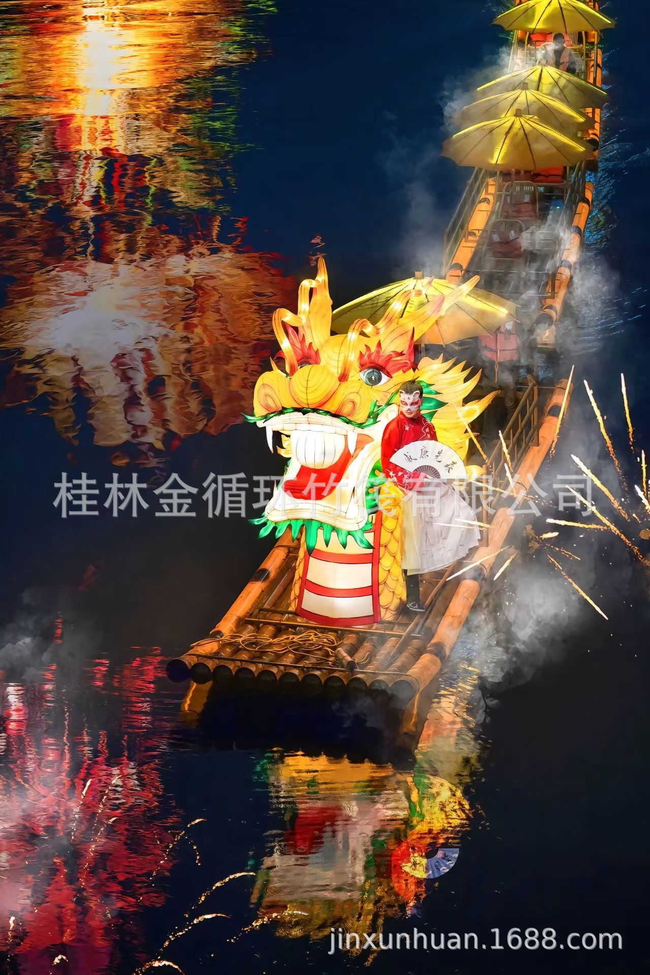 Qiyunshan Dragon Parade Scenic Spot Performance Лодка-дракон Золотой дракон Тур Река Отображение Бамбуковый плот ПВХ Бамбуковый плот Рядный плот