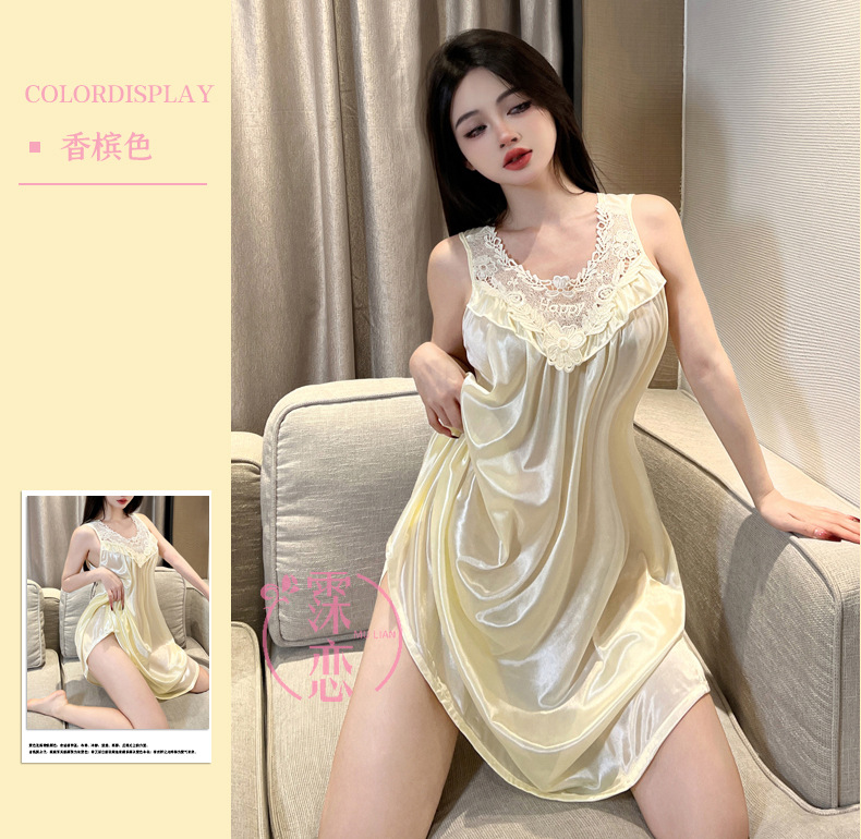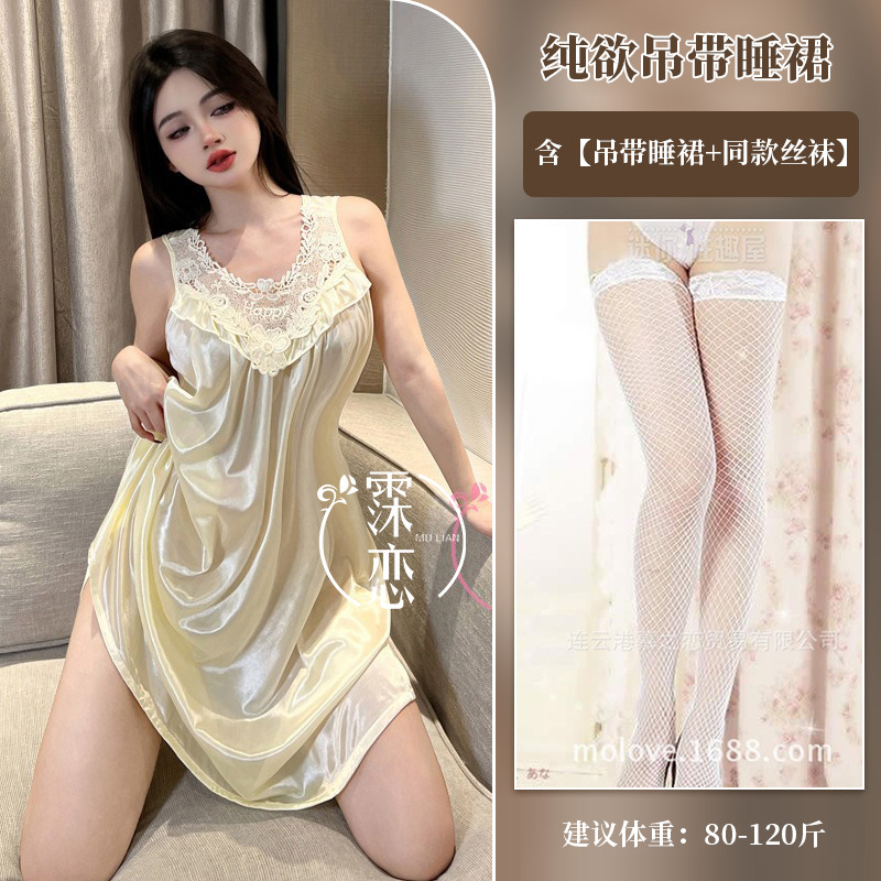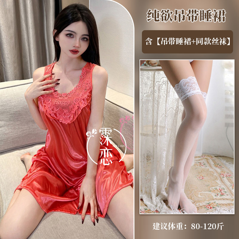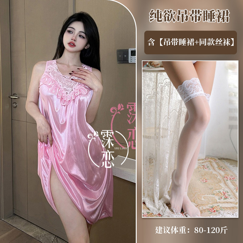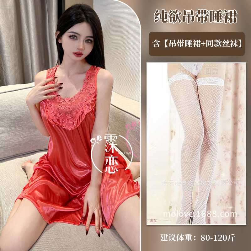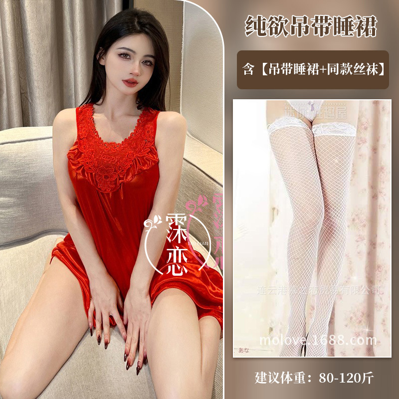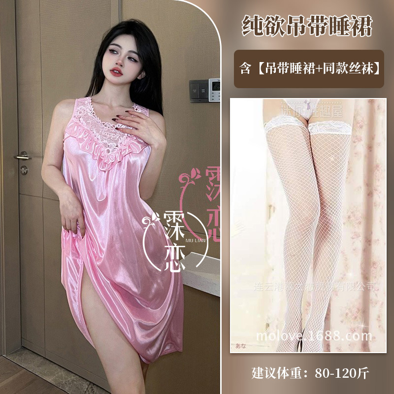 Pleusing Эротическое нижнее белье сексуальный плюс толстая ночная юбка без рукавов Корейская версия домашней одежды с кружевным кружевным эротическим костюмом