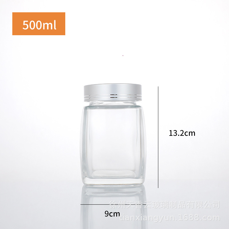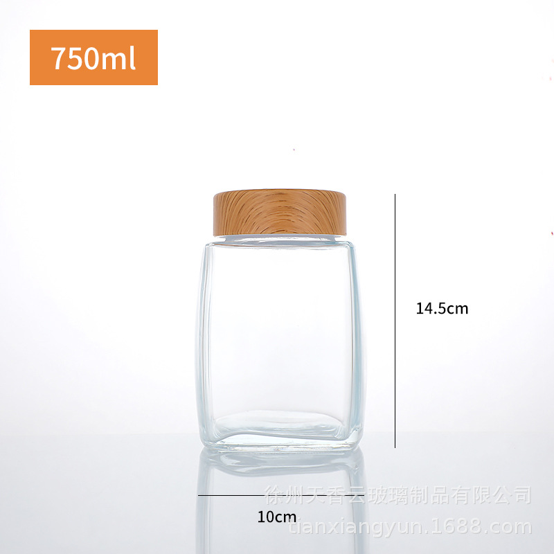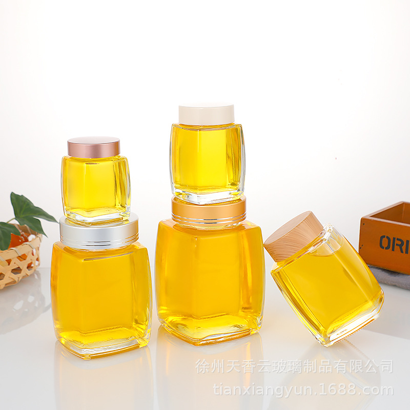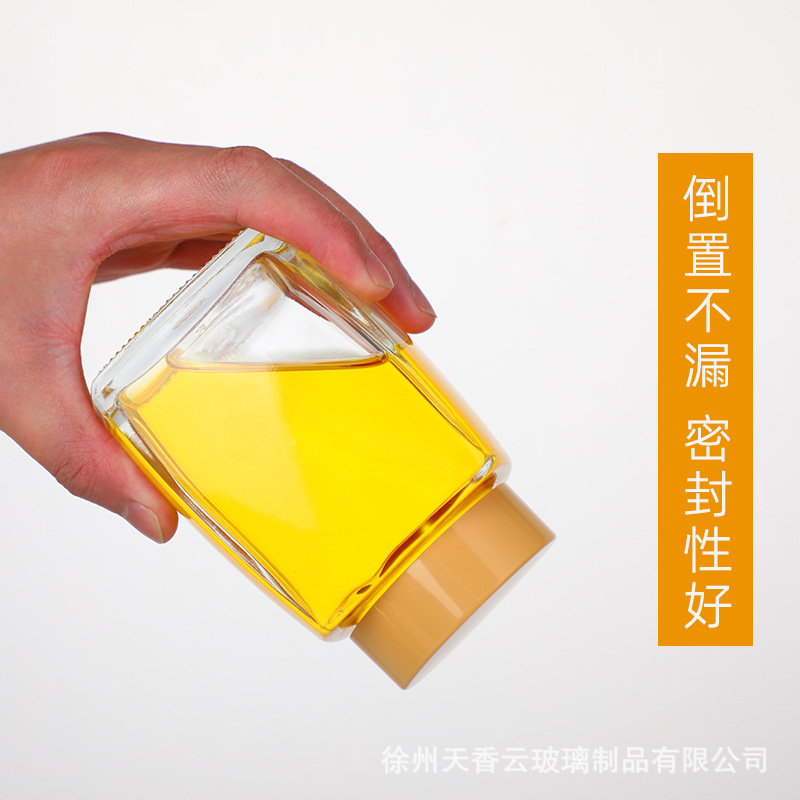 Четырехсторонняя бутылка для меда с большим горлышком, стеклянная бутылка большой емкости, бутылка для меда, банка для хранения с герметичной крышкой, банка для хранения меда