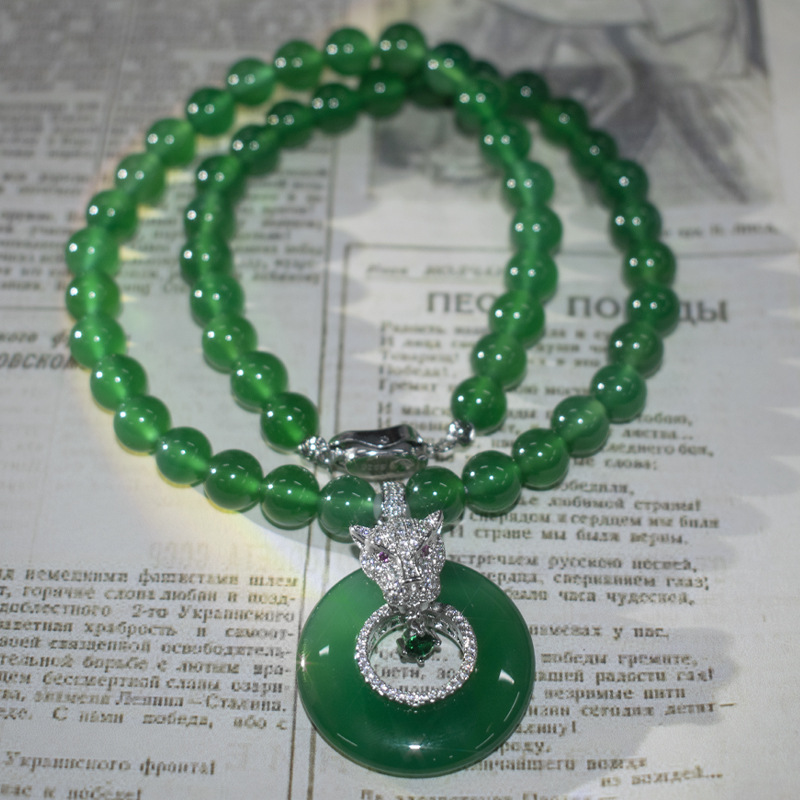 Leopard Ping высокое качество натуральный зеленый халцедон бисер шейный цепи новый дикий нефритовый агат бусиновая цепочка завод оптом