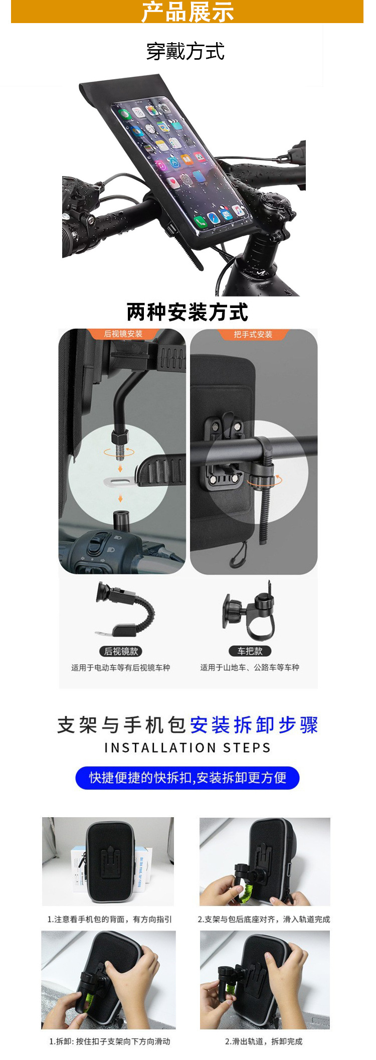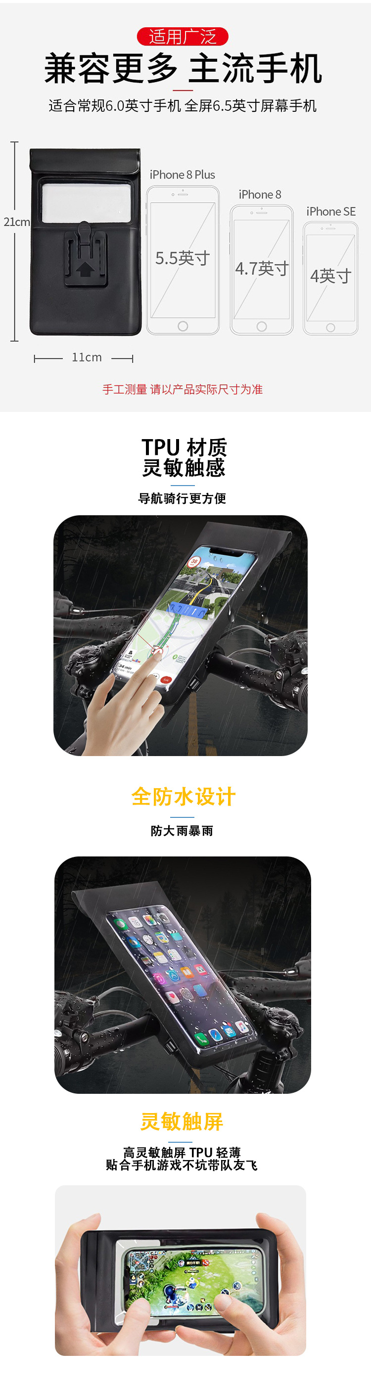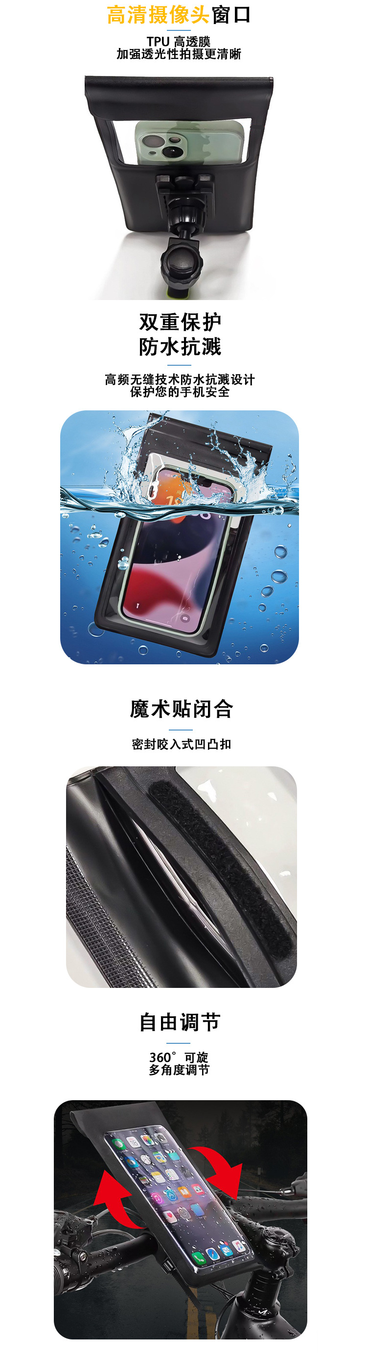 Новый велосипед велосипедная сумка TPU сенсорный экран мобильный телефон поворотный кронштейн водонепроницаемый мешок заднее окно фото водонепроницаемый мешок